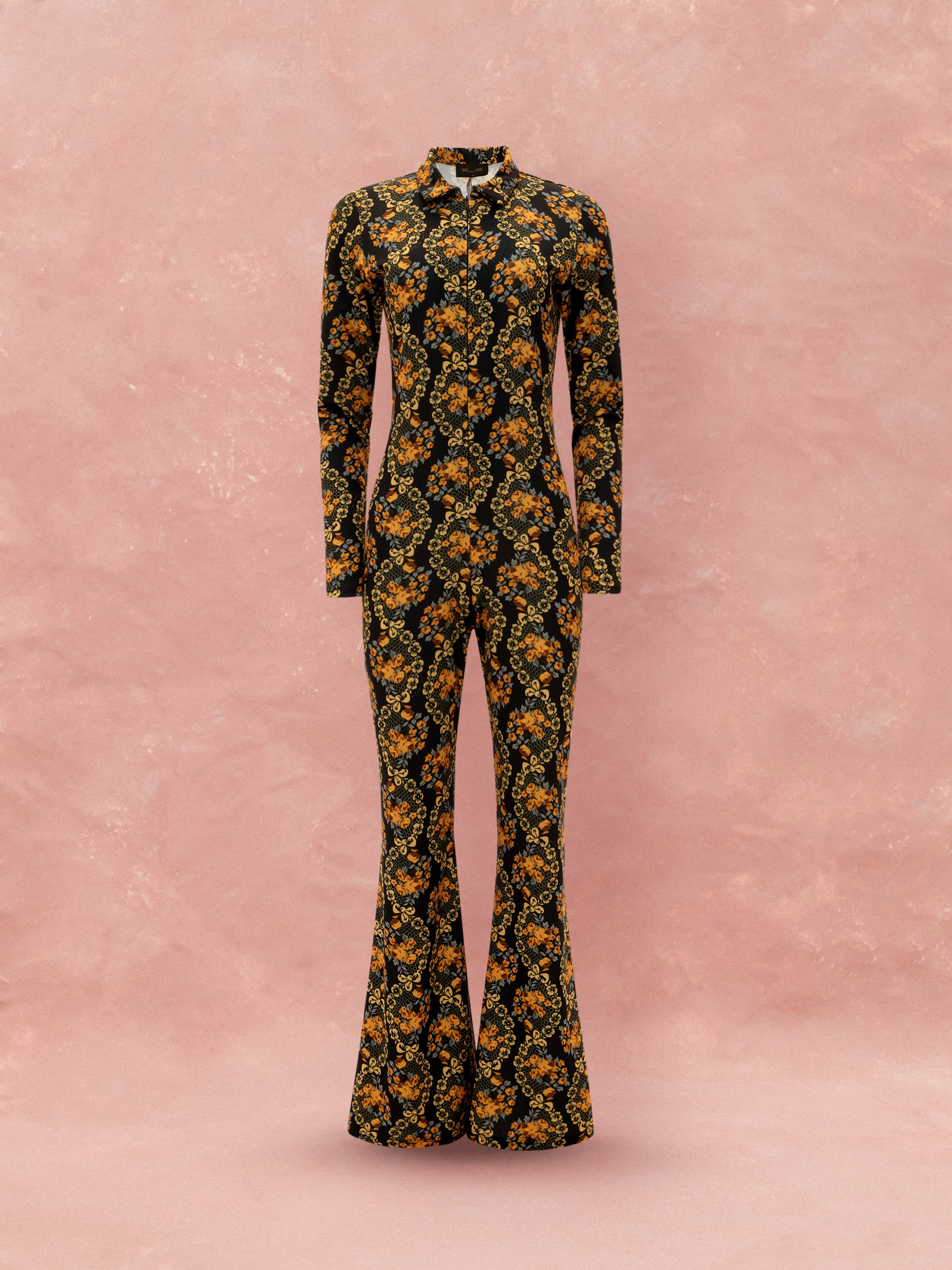 FLARED JUMPSUIT - LACE BOUQUET BLACK