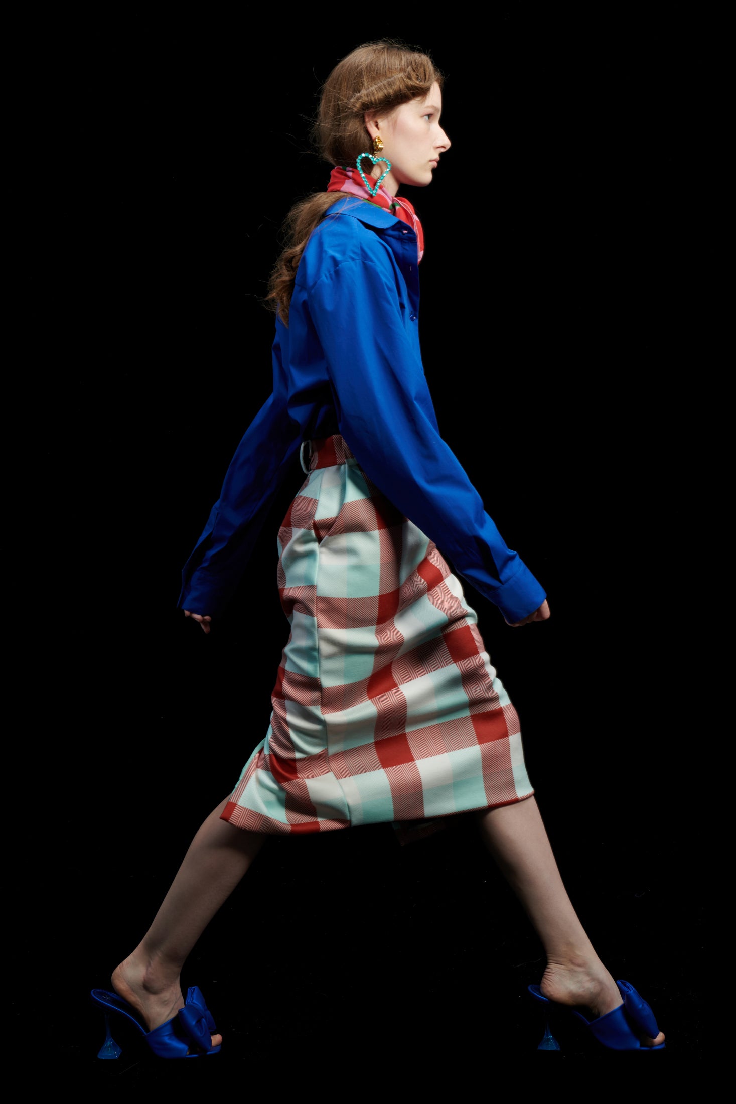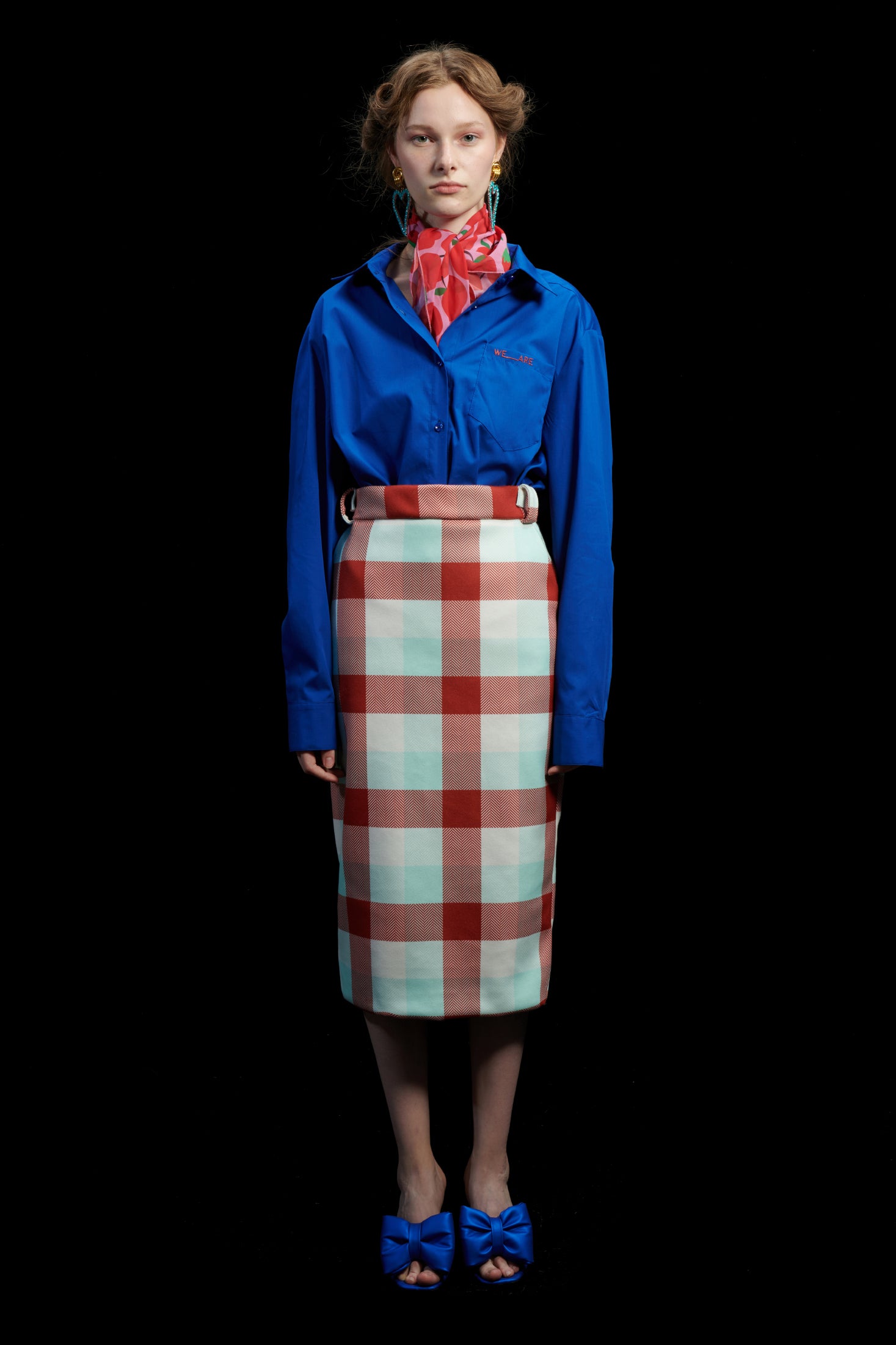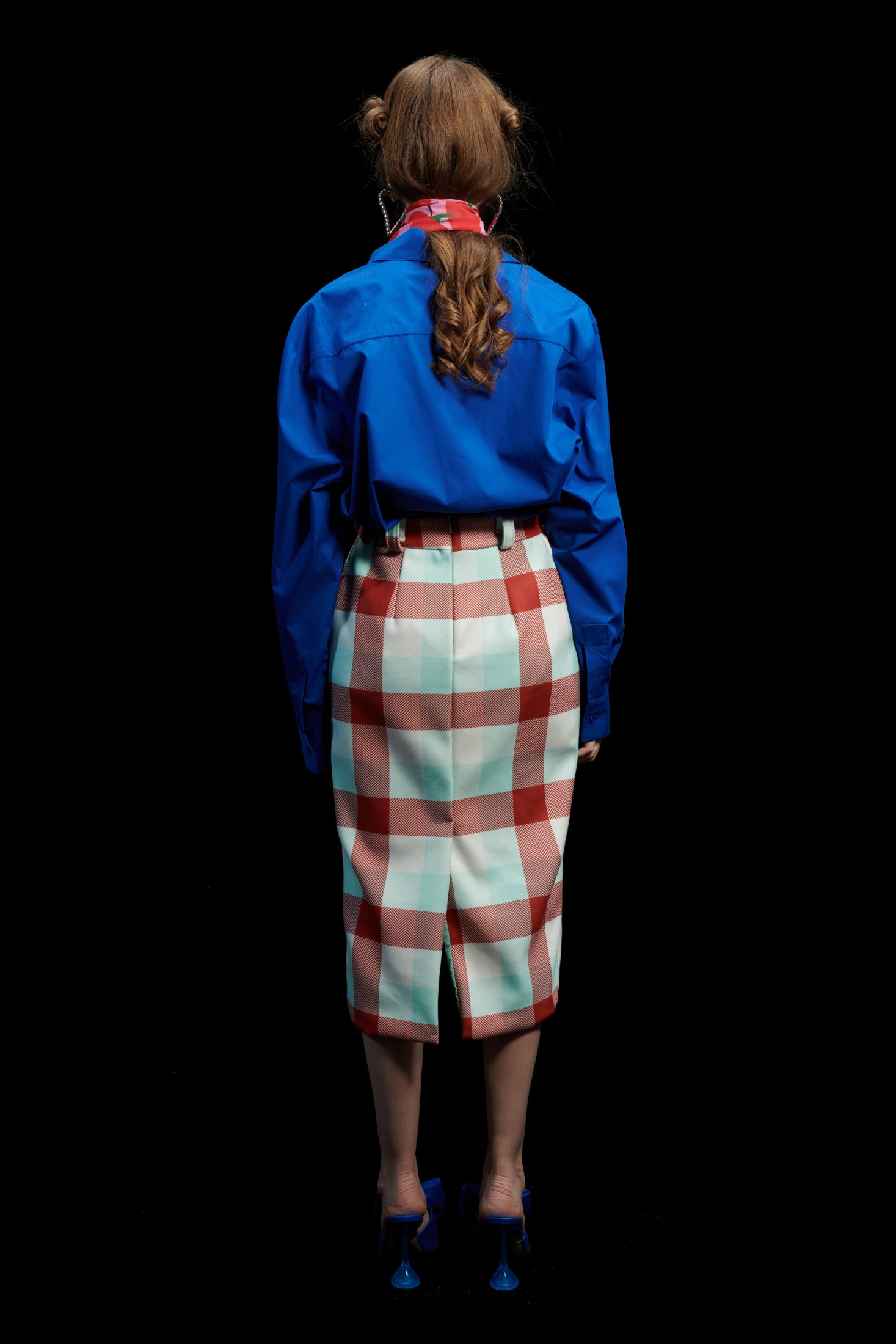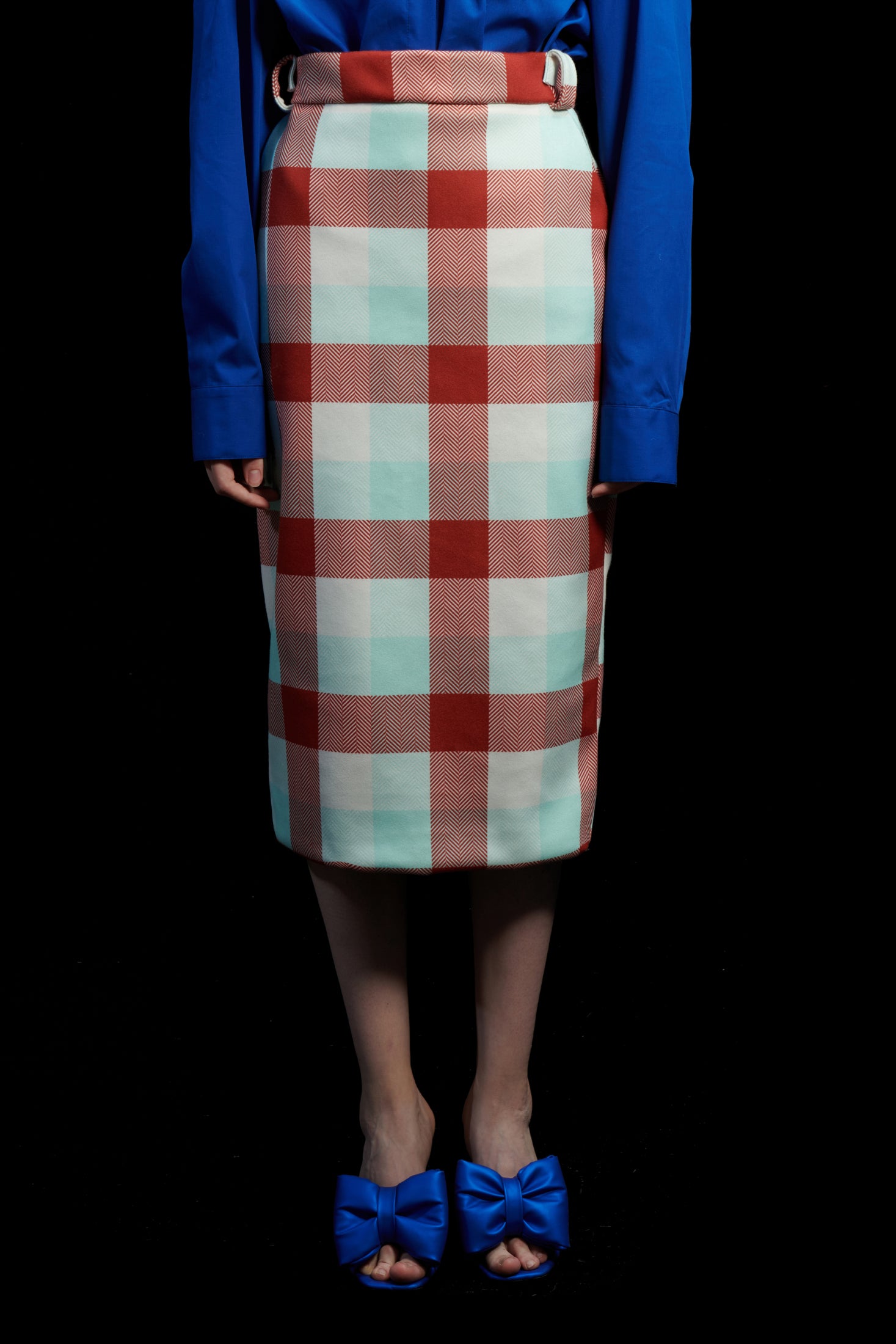 PENCIL SKIRT GINGHAM COGNAC