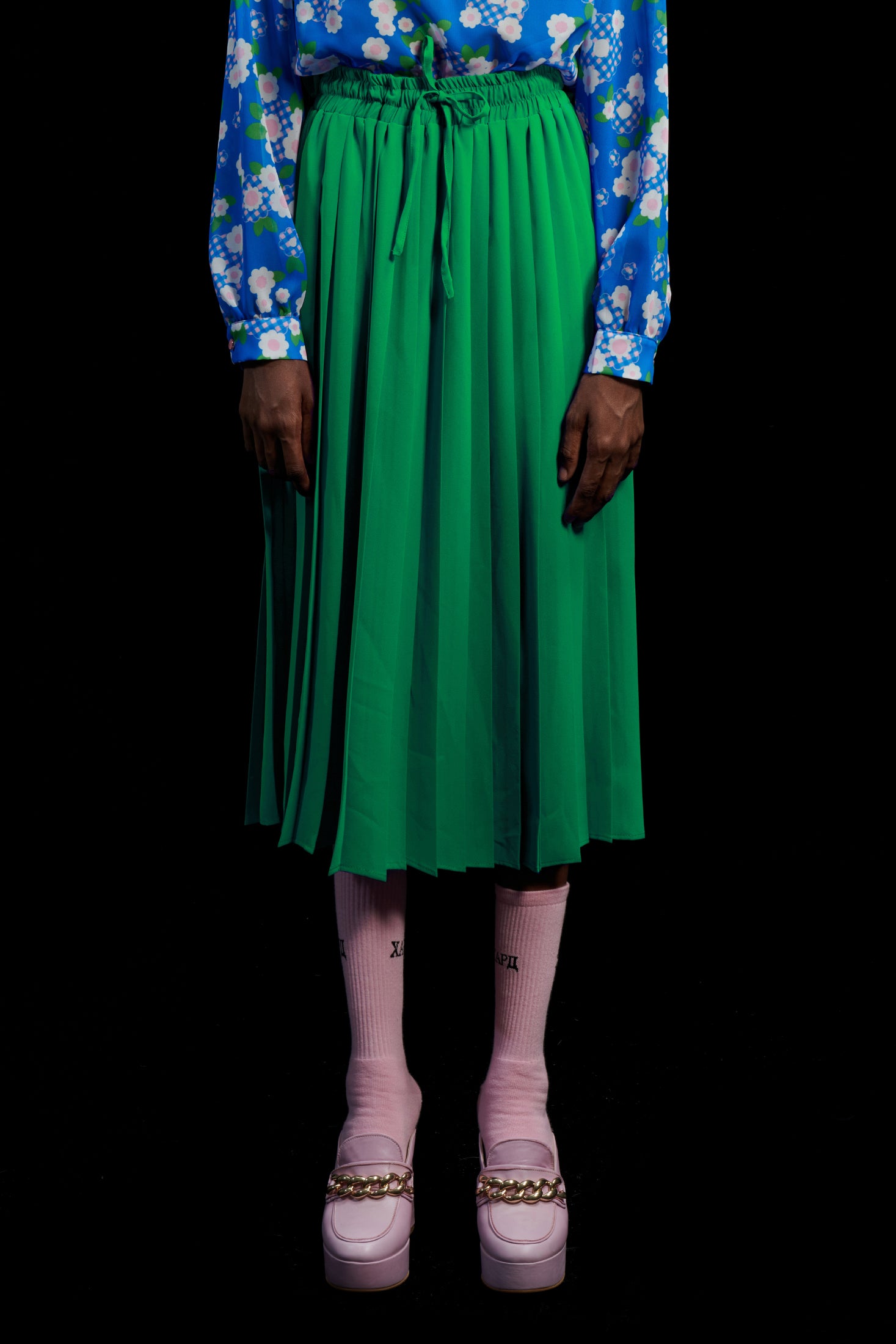 PLEATED MIDI SKIRT GREEN