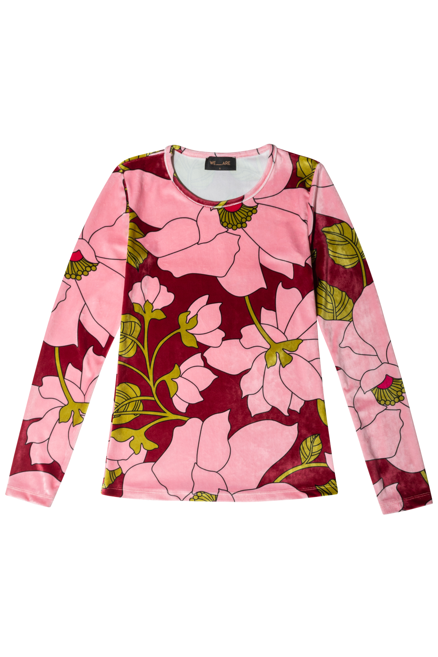 SLIM-FIT VELOUR TOP BIG FLOWER