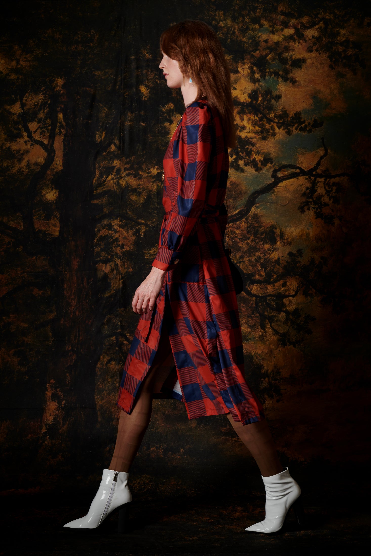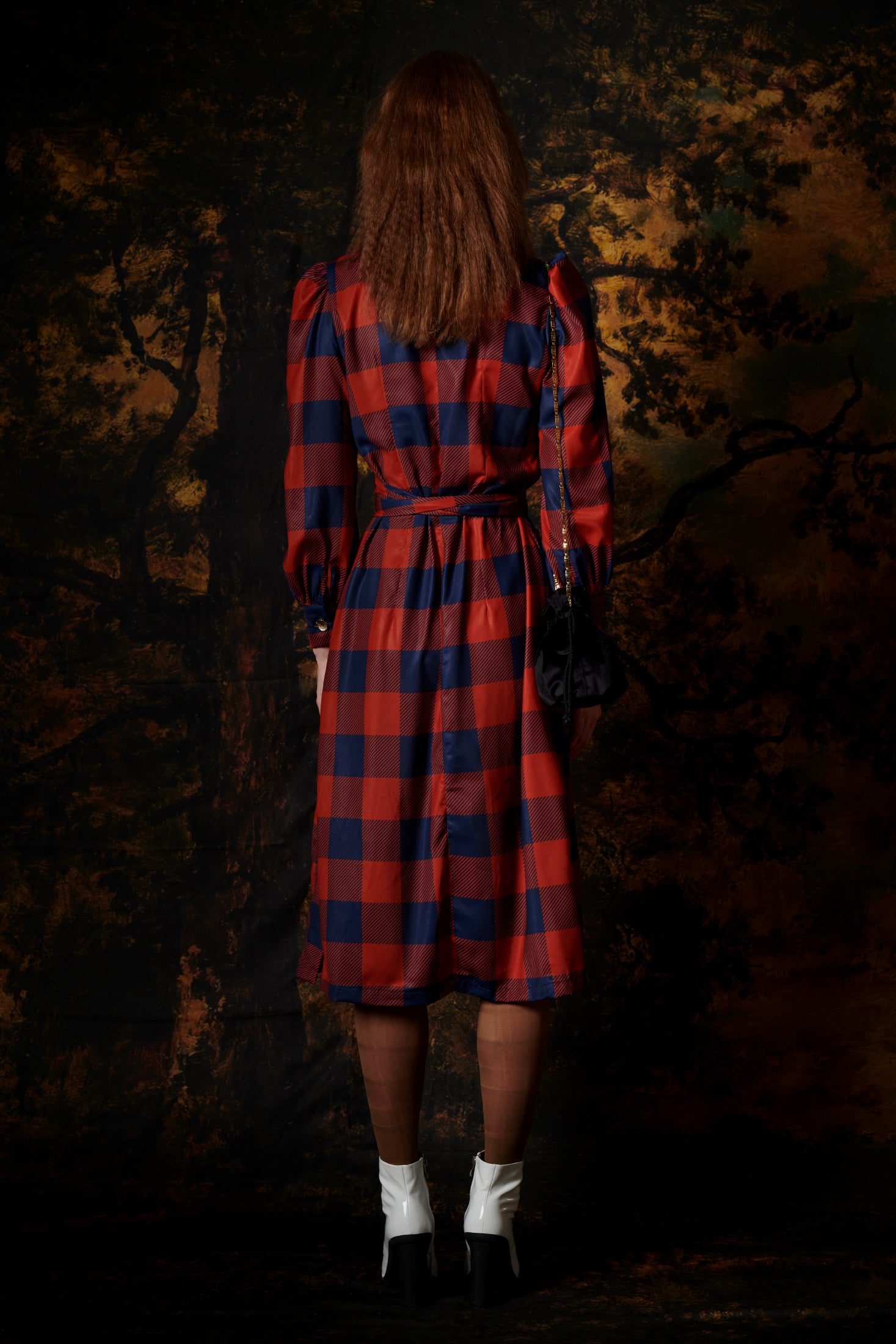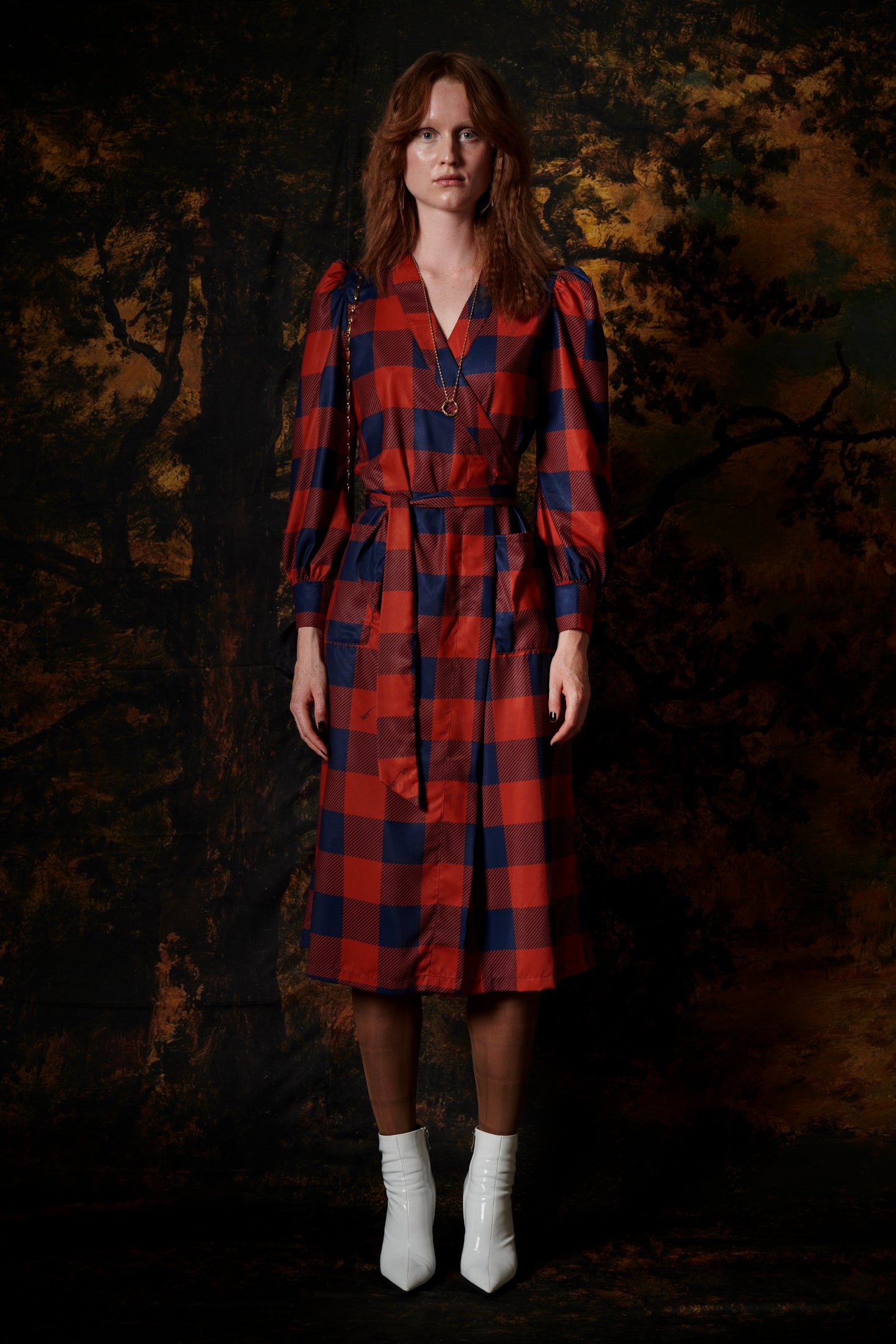 WRAP DRESS GINGHAM COGNAC