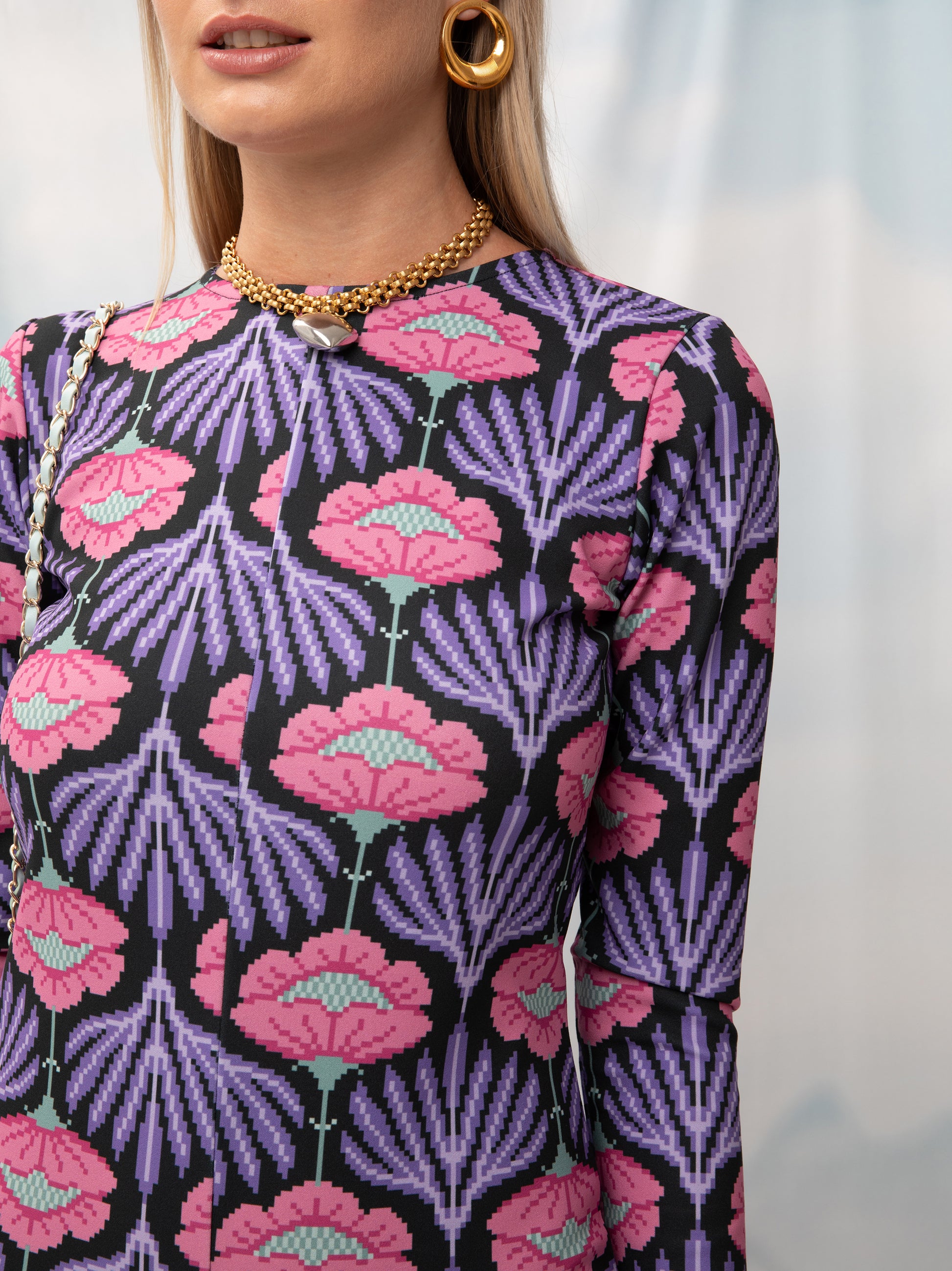 Μακρυμάνικη εμπριμέ ολόσωμη φόρμα τύπου σκι