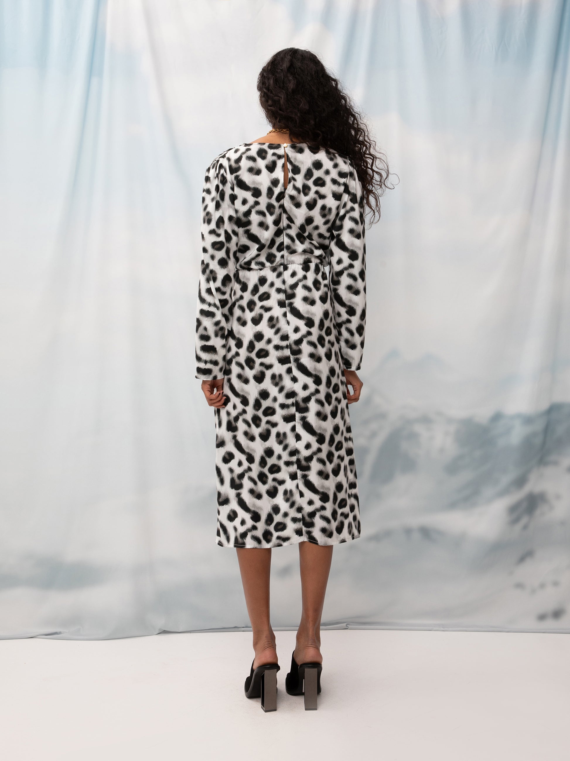 FRONT-SLIT MIDI DRESS LEOPARD WHITE