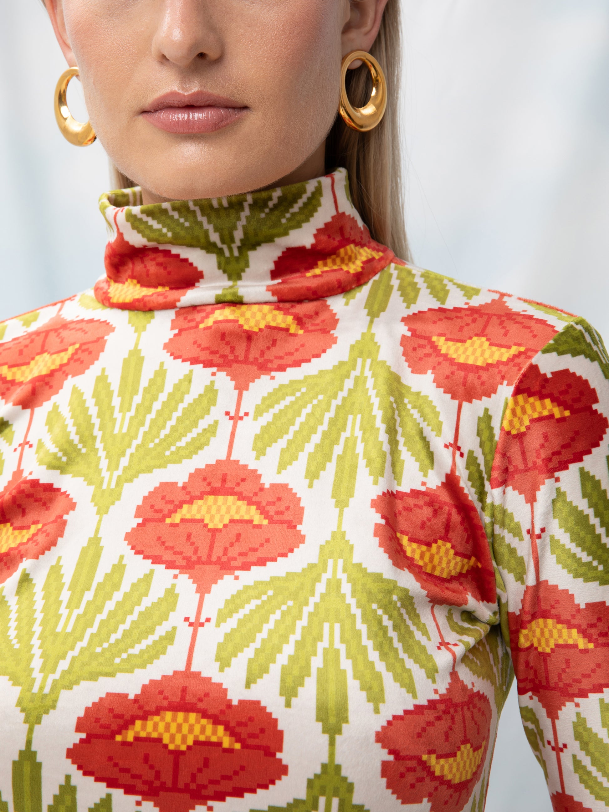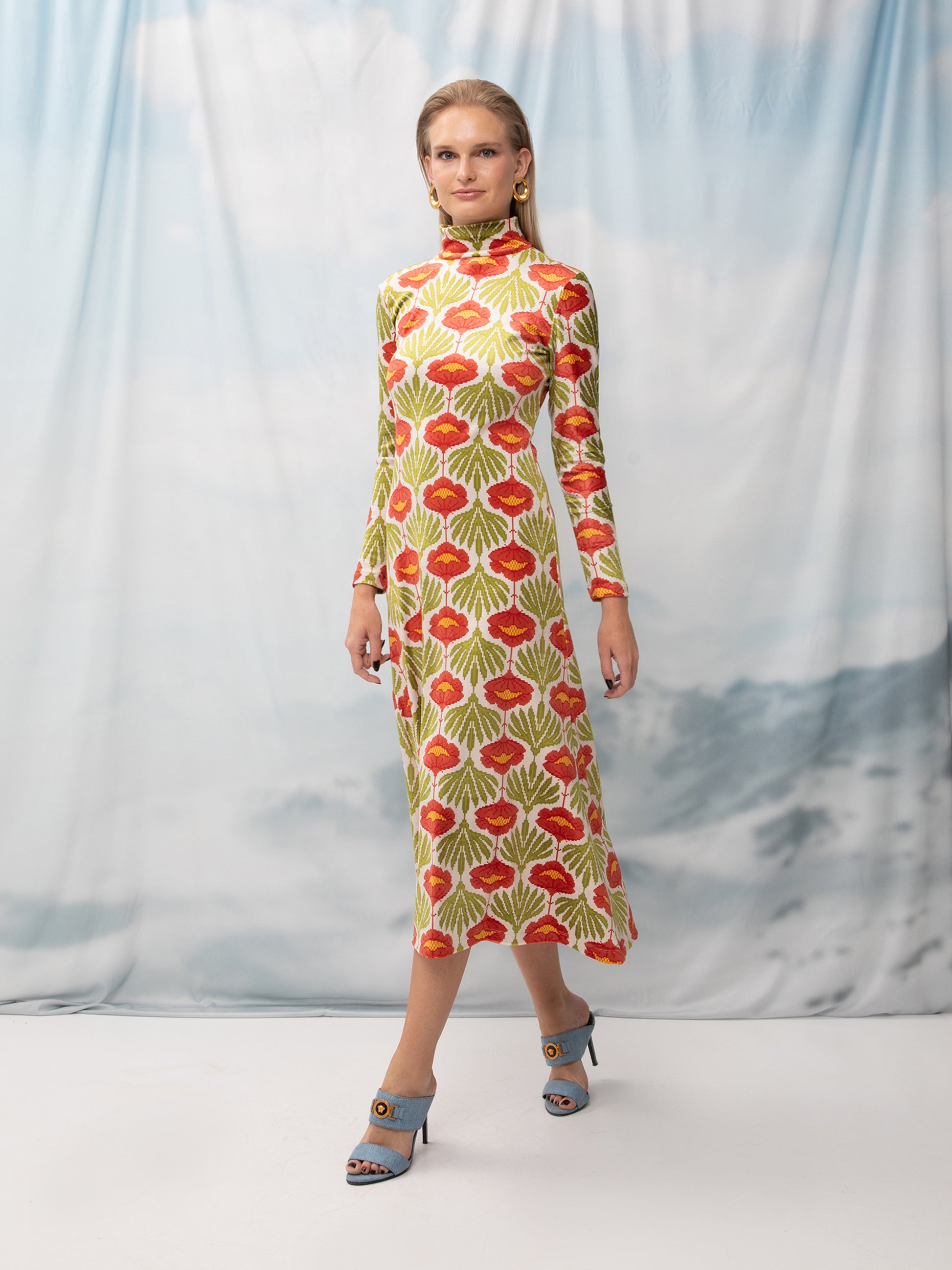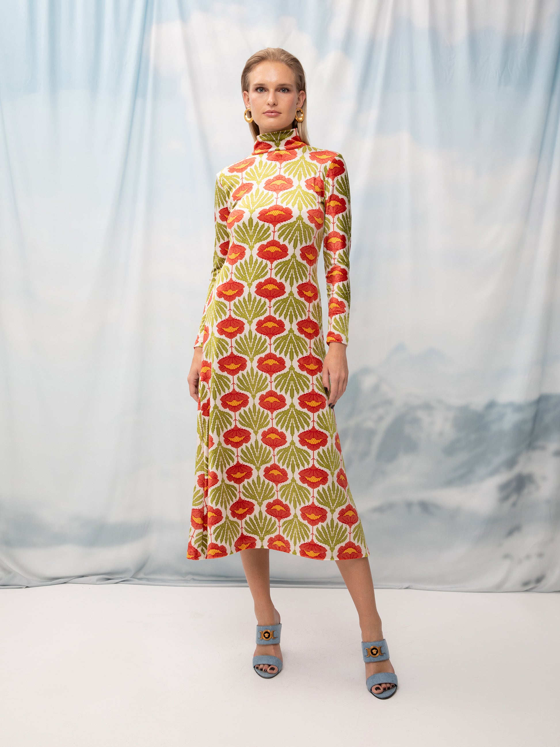HIGH-NECK VELOUR DRESS GARLAND IVORY