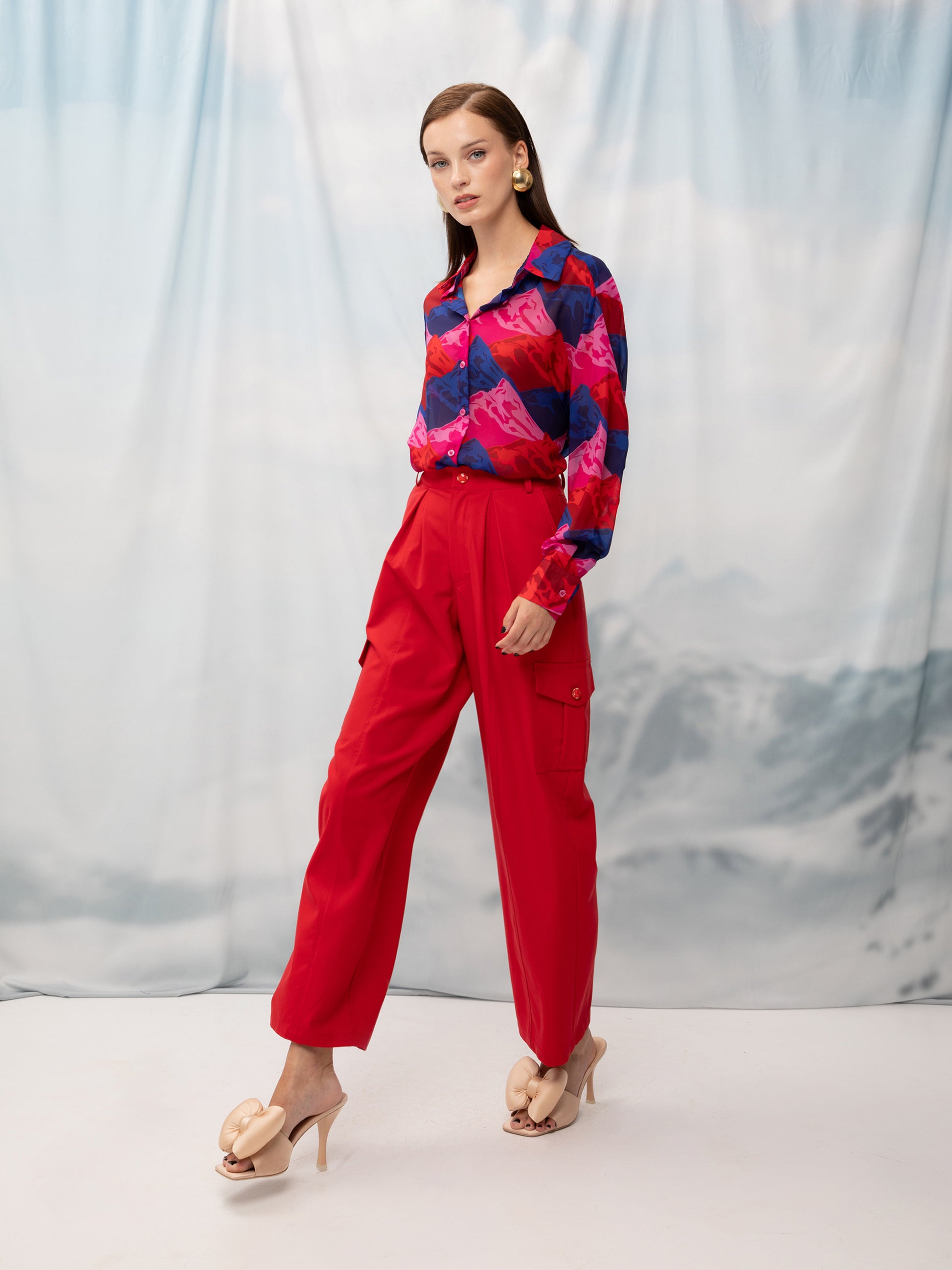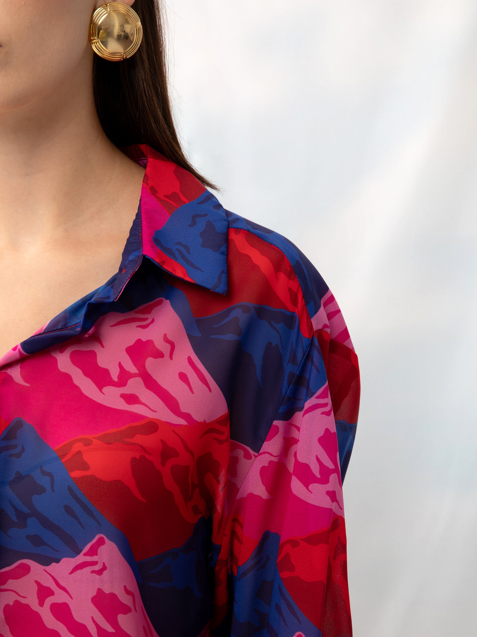 LONG-SLEEVE CHIFON SHIRT MOUNTAINS RED