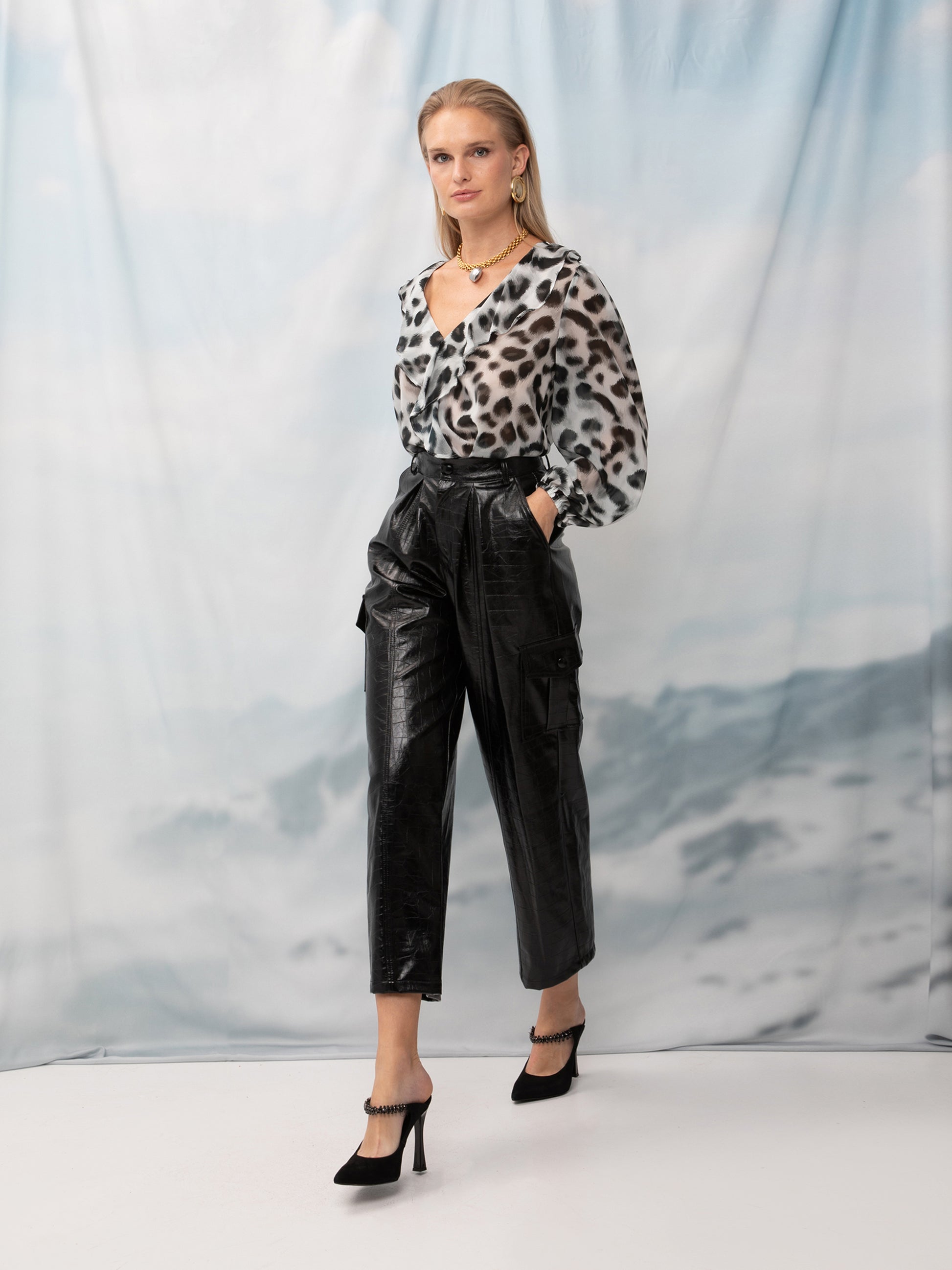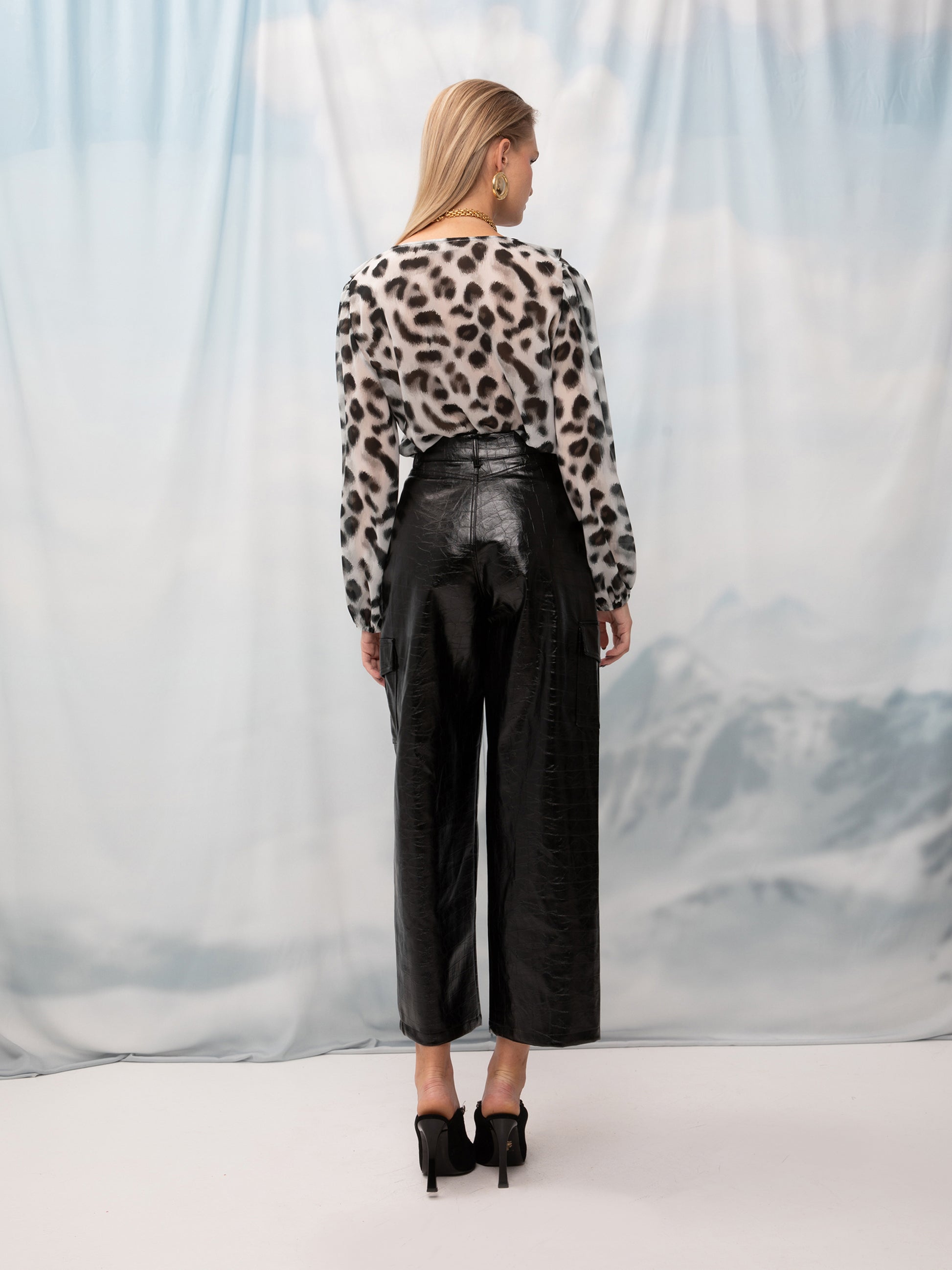 RUFFLED CHIFON BLOUSE LEOPARD WHITE