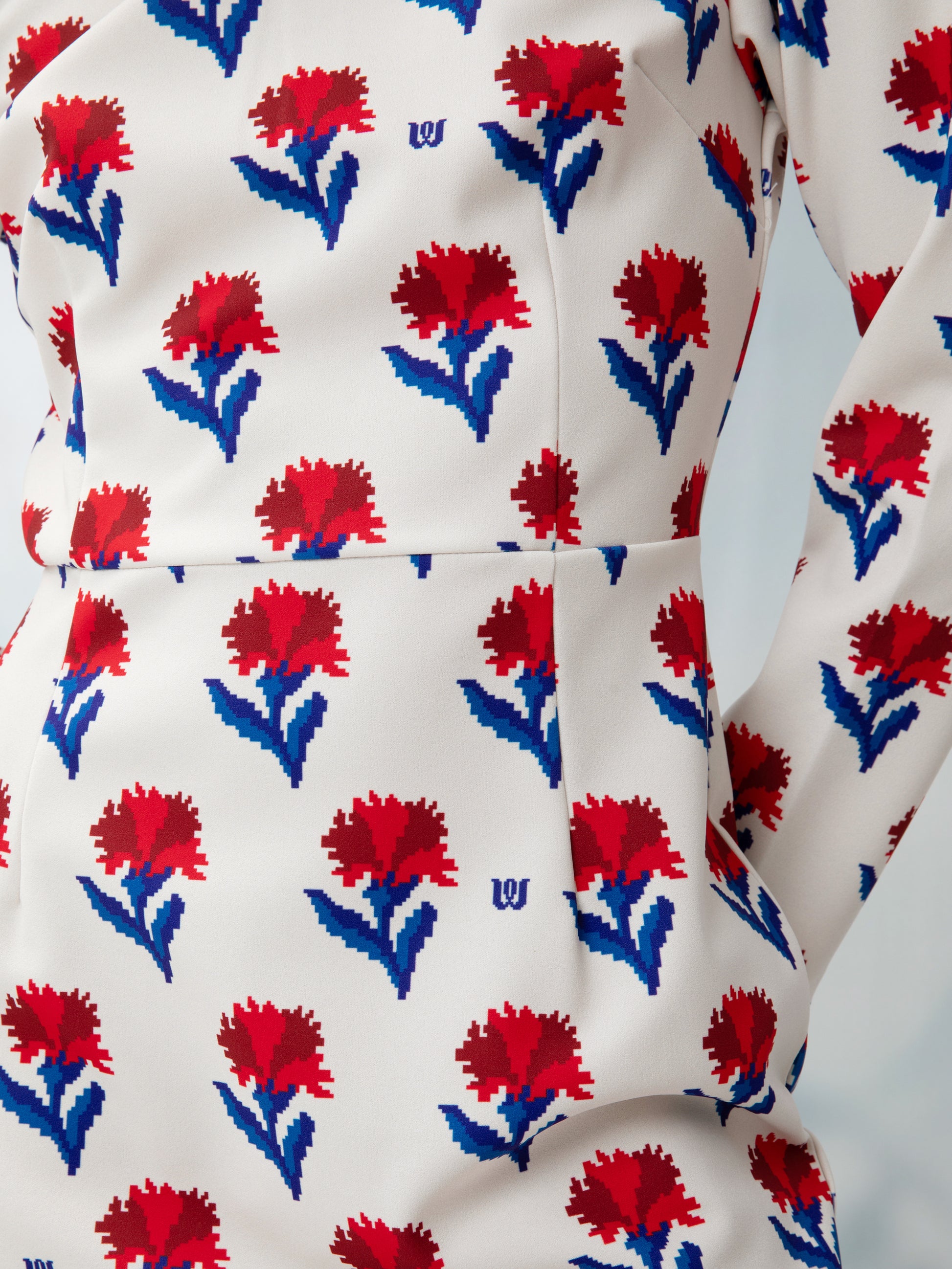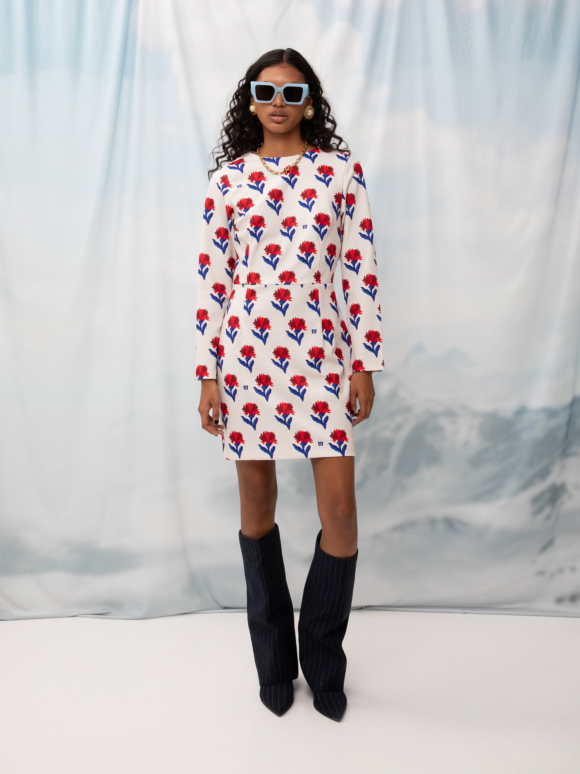 STRAIGHT LINE MINI DRESS CARNATIONS IVORY