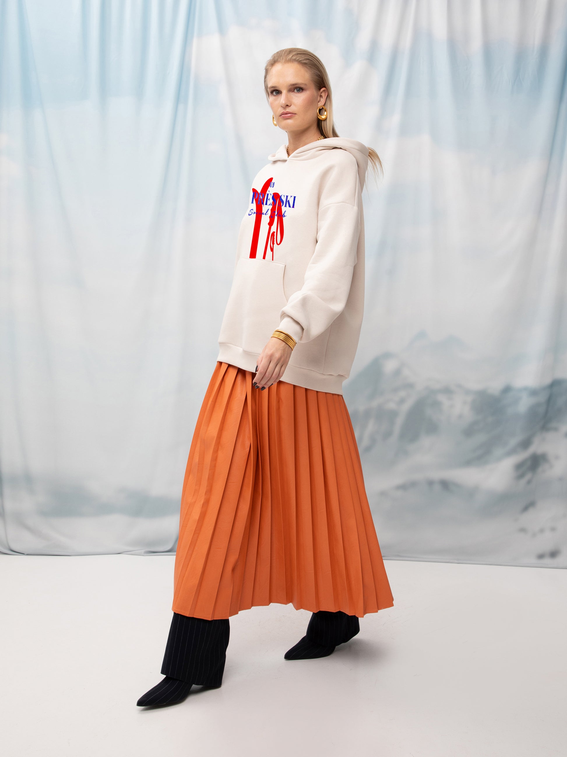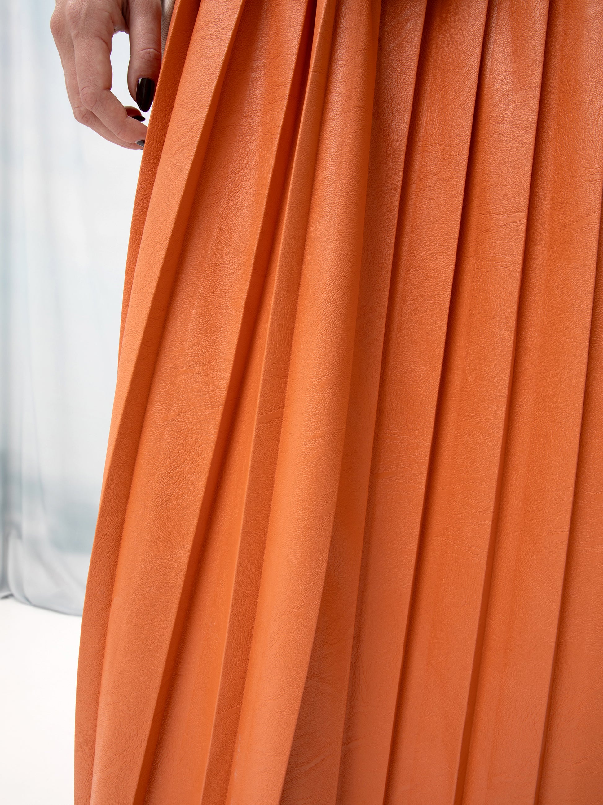 VEGAN-LEATHER PLEATED MAXI SKIRT ORANGE