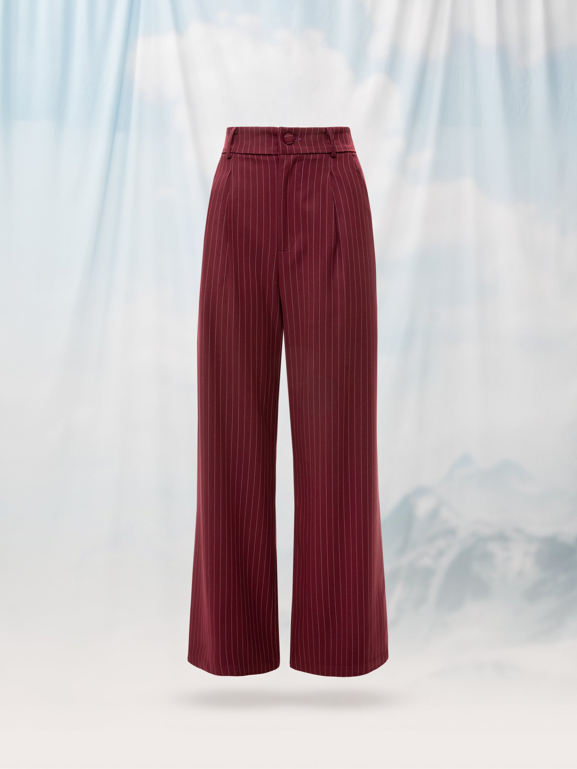 WIDE-LEG PLEATED PANTS BURGUNDY STRIPES