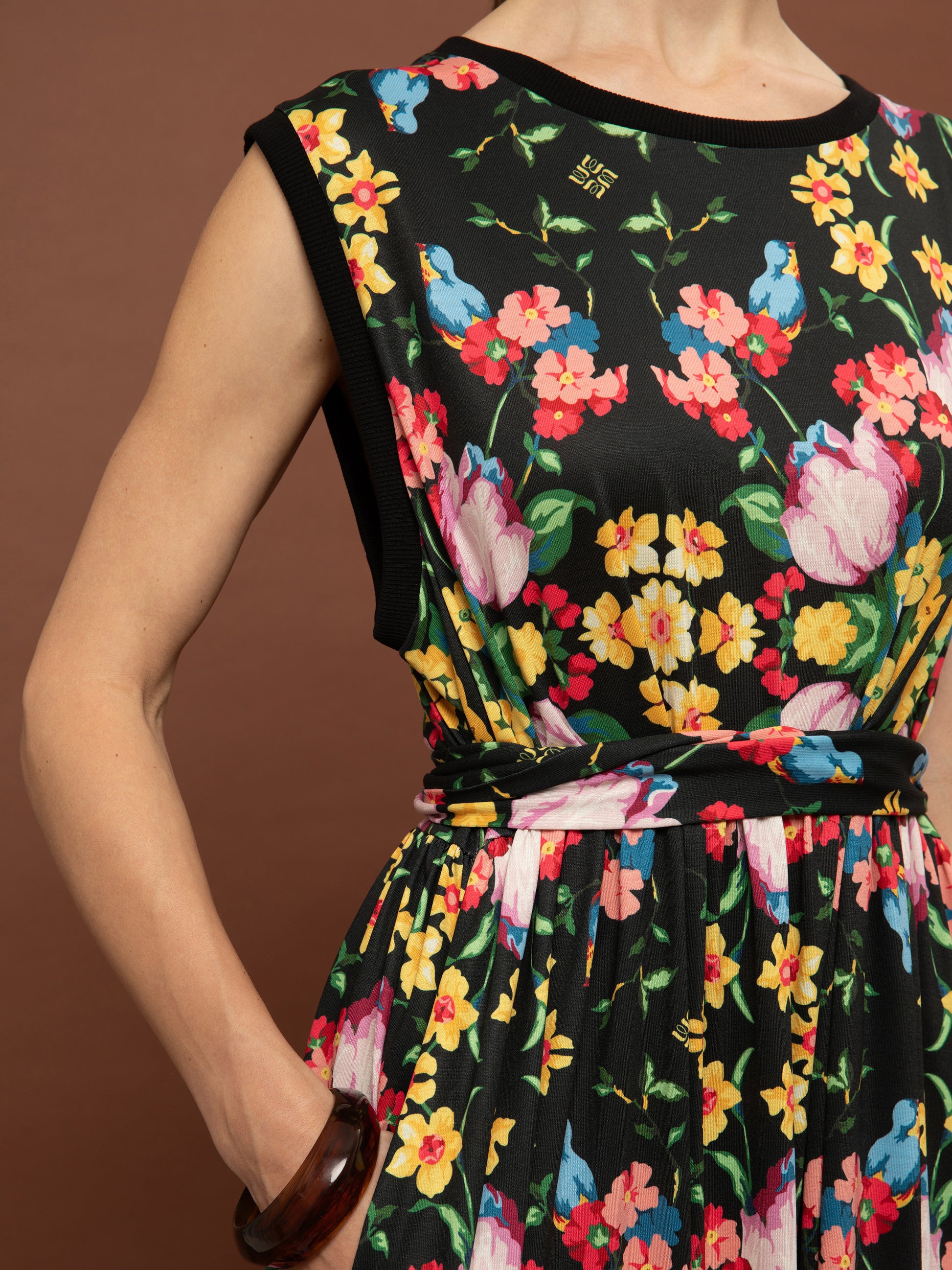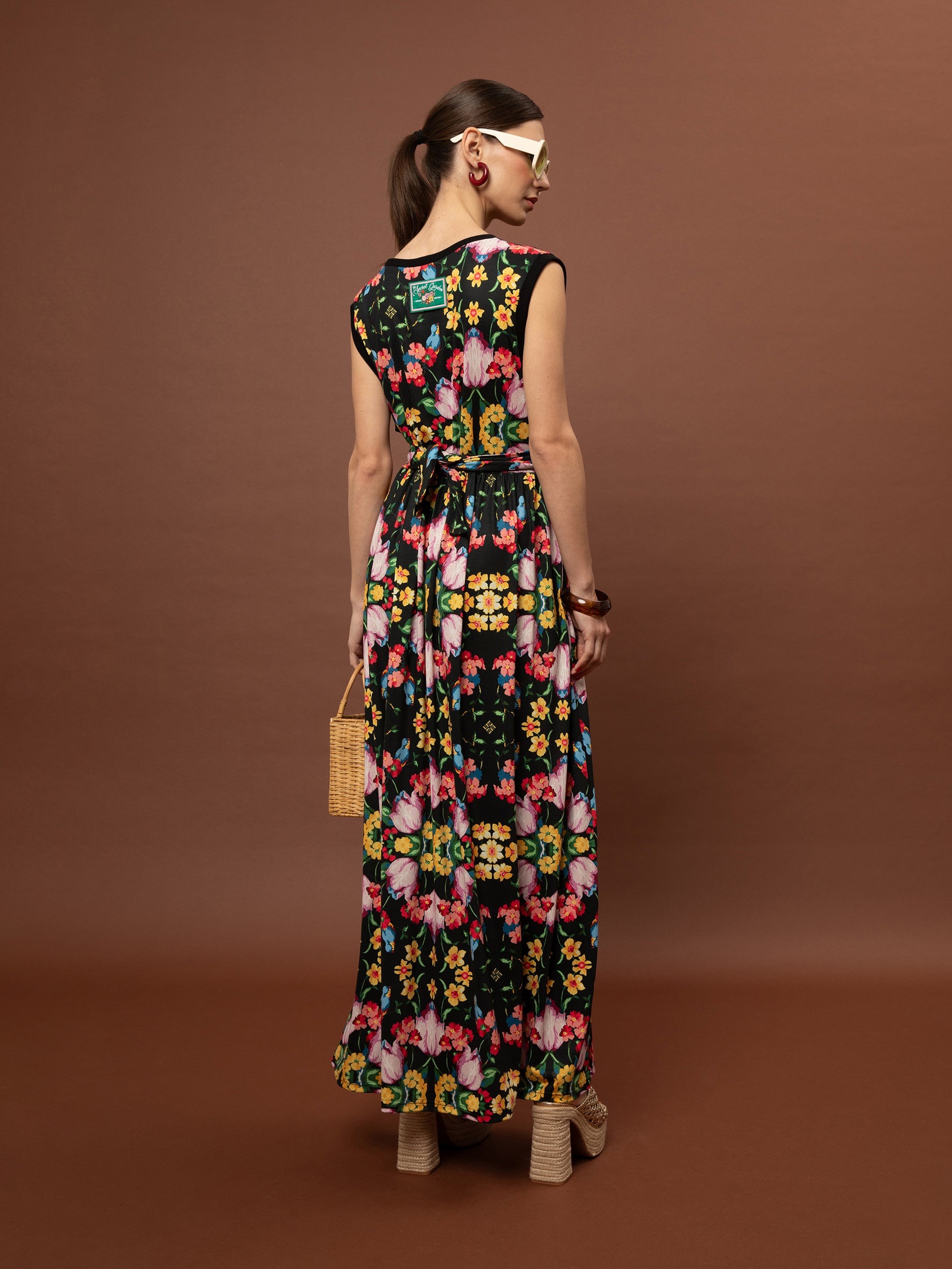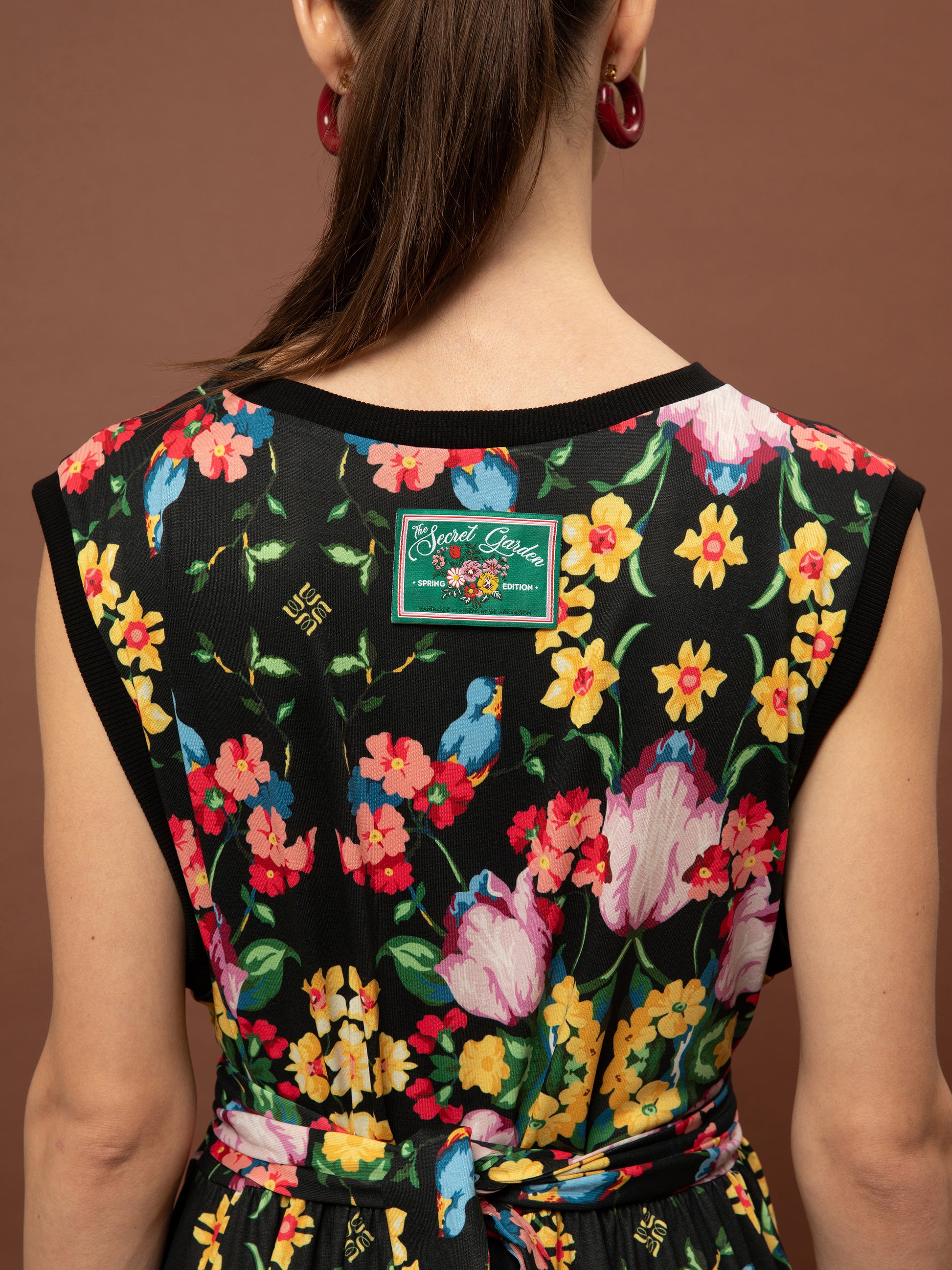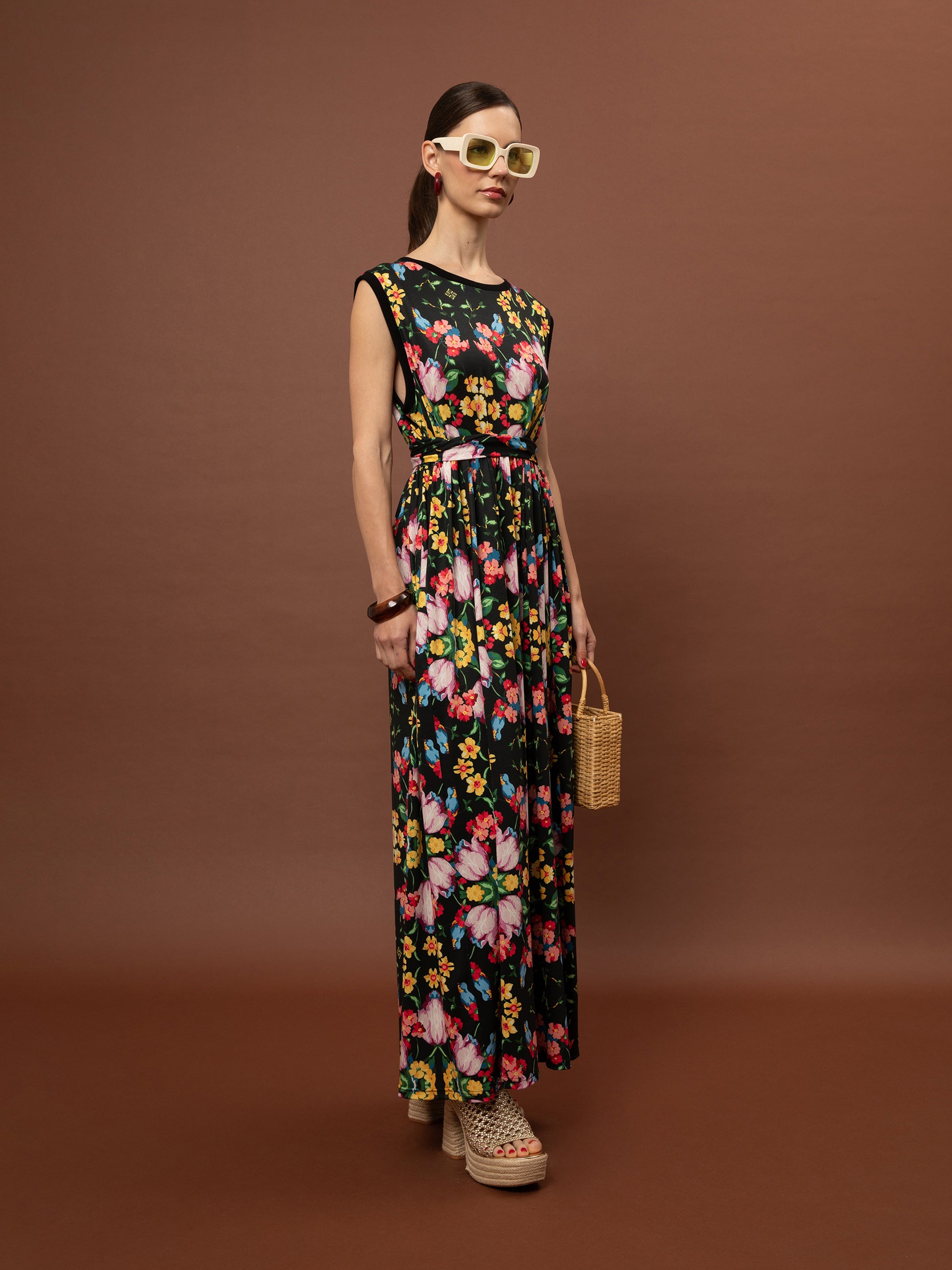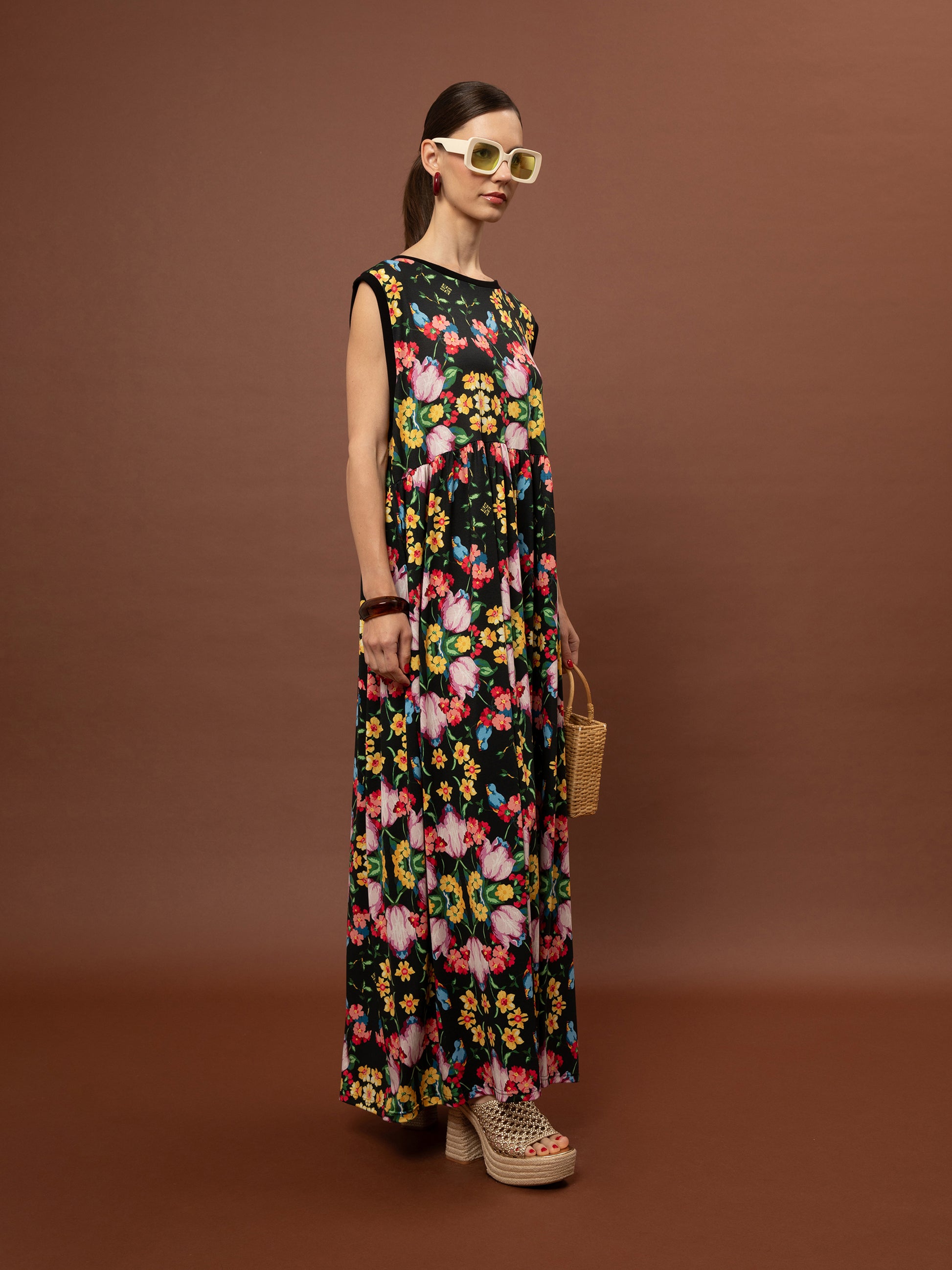 SLEEVELESS COTTON DRESS - BLOSSOMS BLACK
