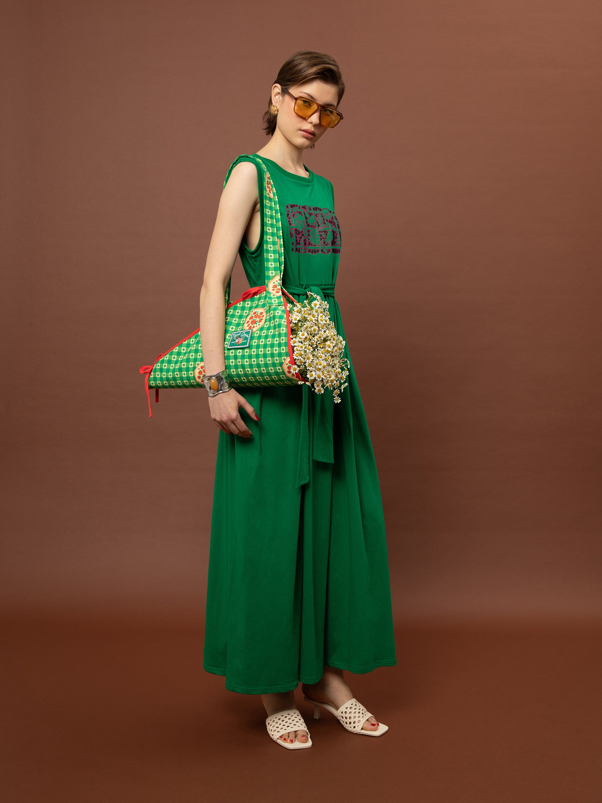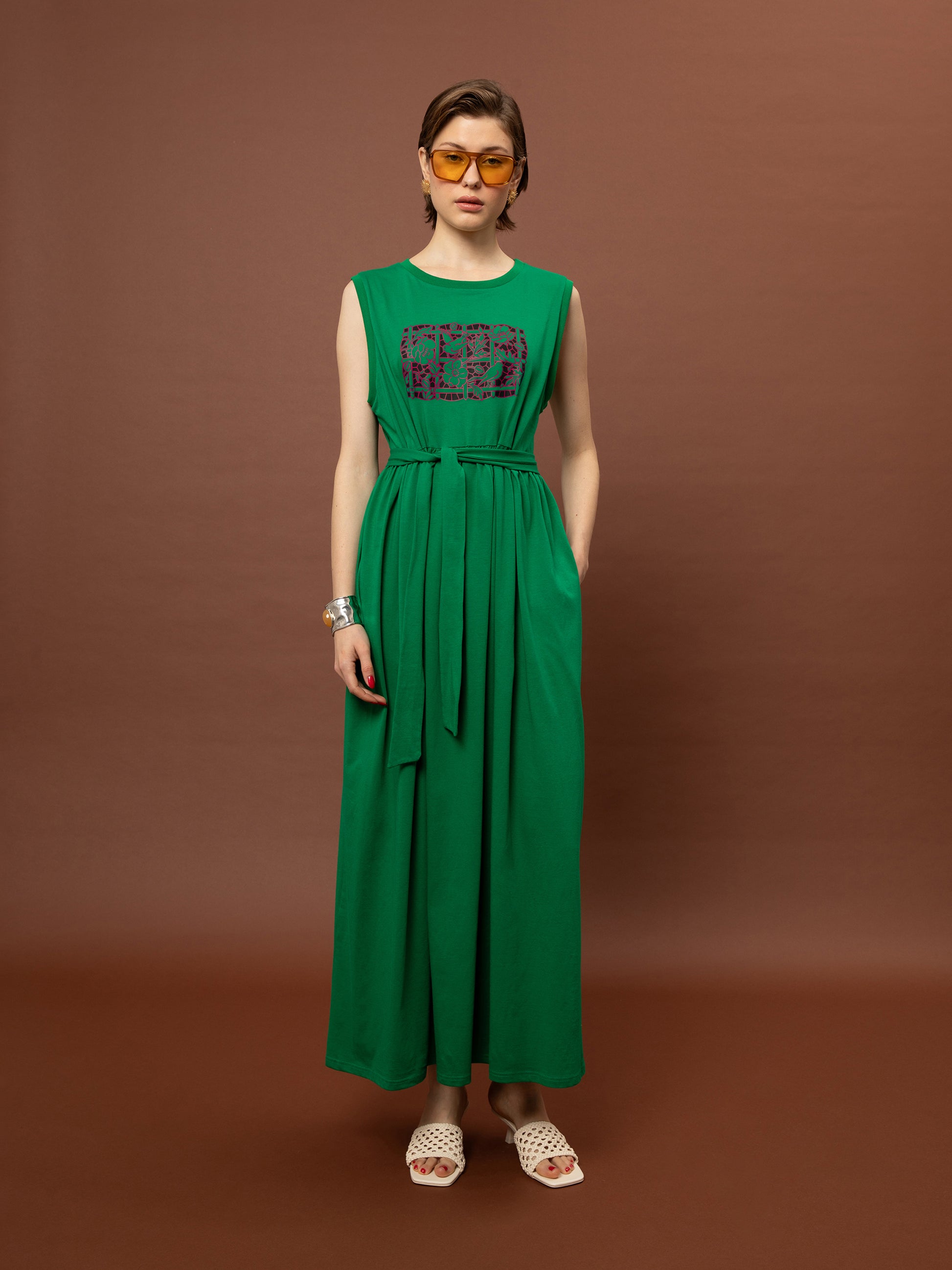 SLEEVELESS COTTON DRESS - GREEN