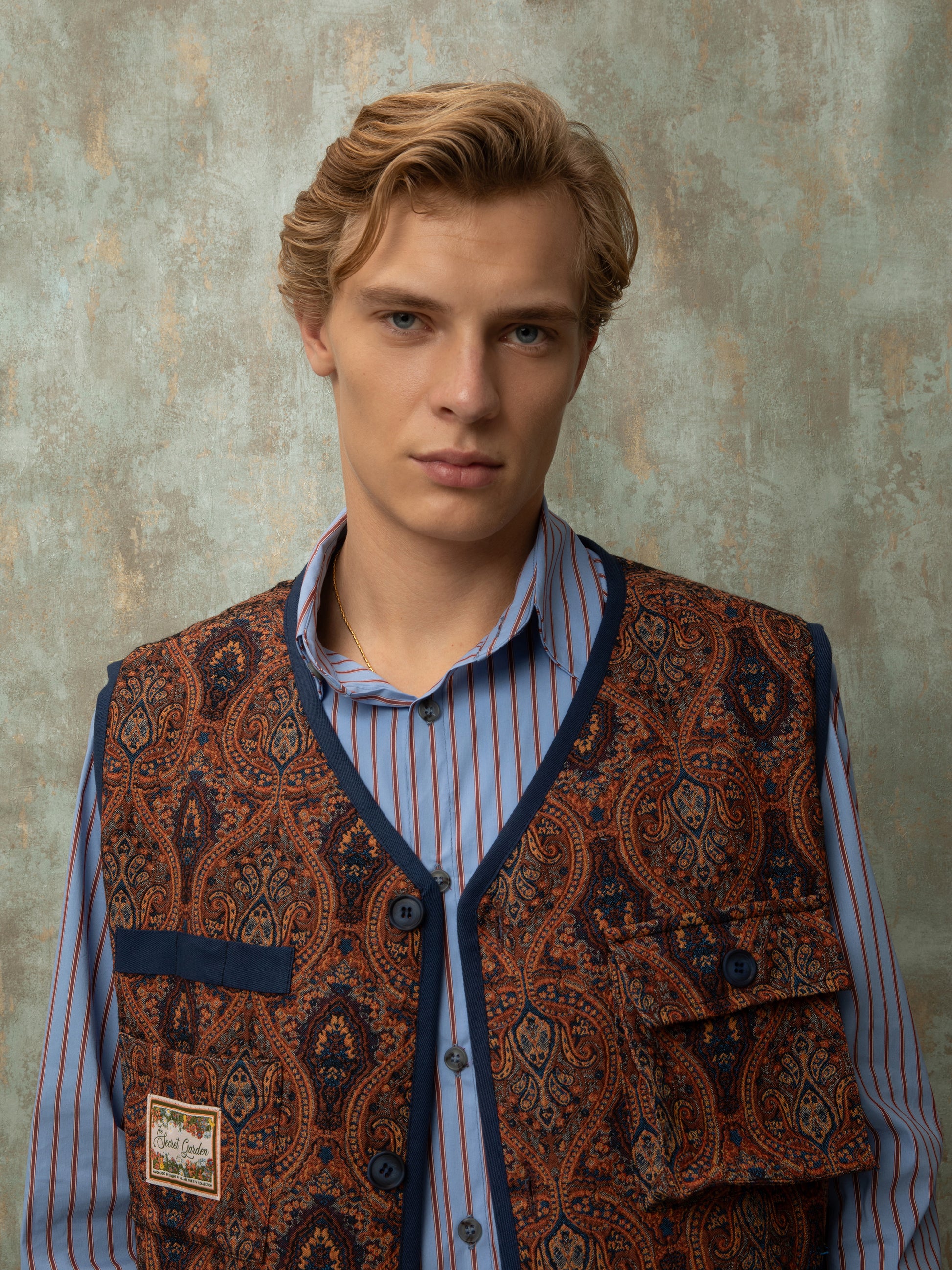 - διακοσμητική υφαντή ετικέτα στο στήθος