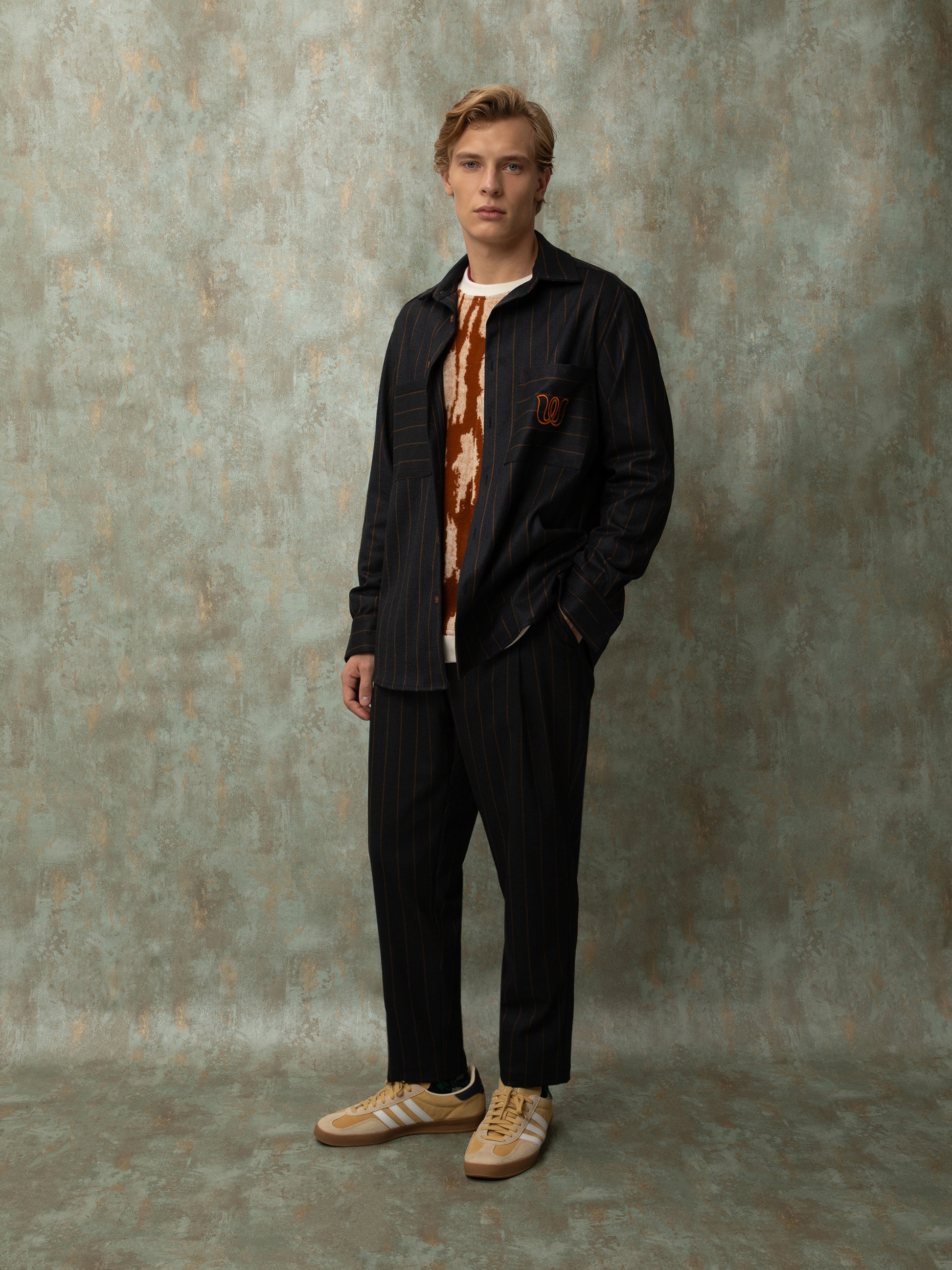 Μπλε σκούρο ριγέ παντελόνι με ελαστική μέση