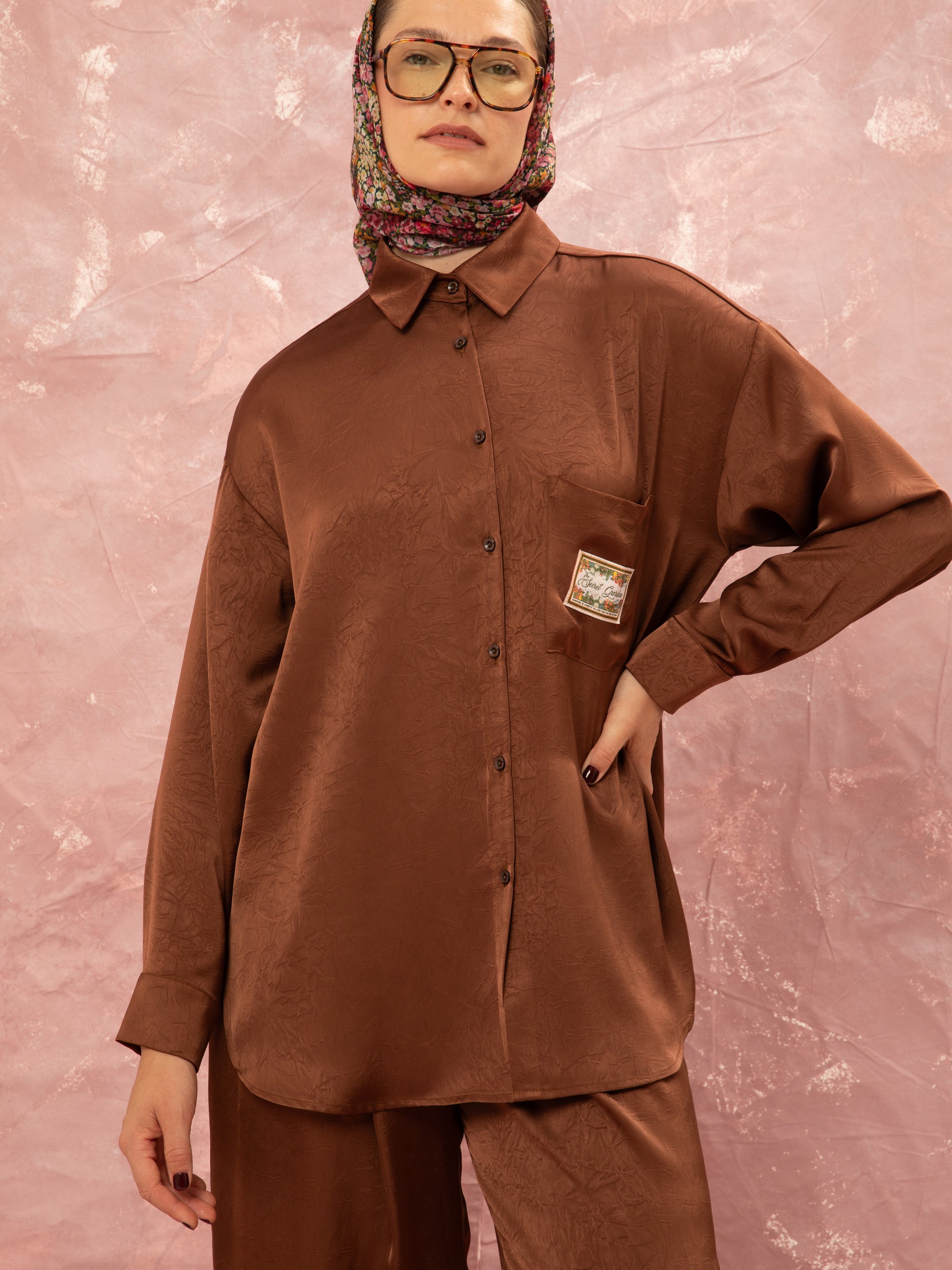 Oversized μακρυμάνικο σατέν πουκάμισο