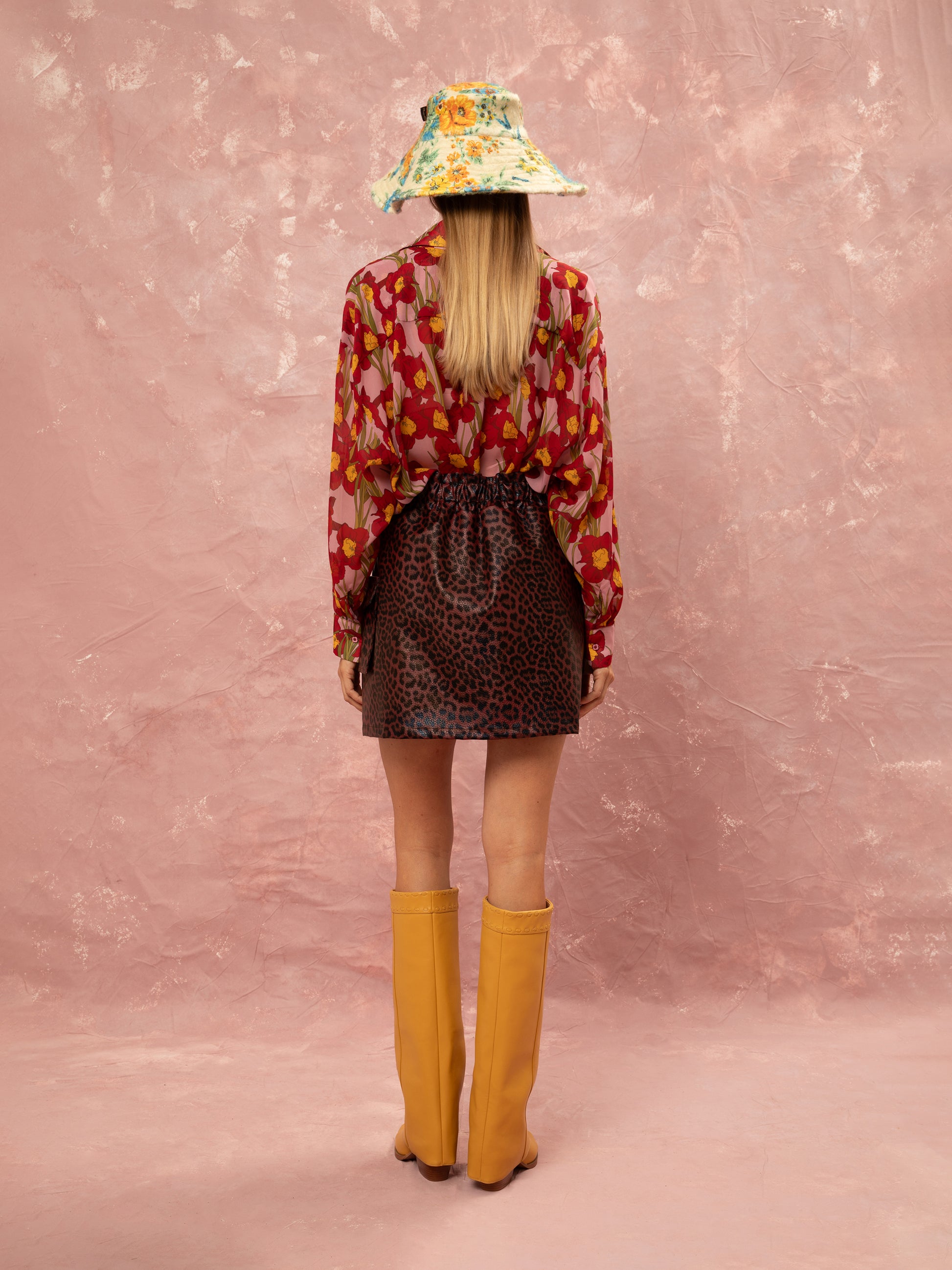 LEOPARD VEGAN-LEATHER MINI SKIRT - BURGUNDY