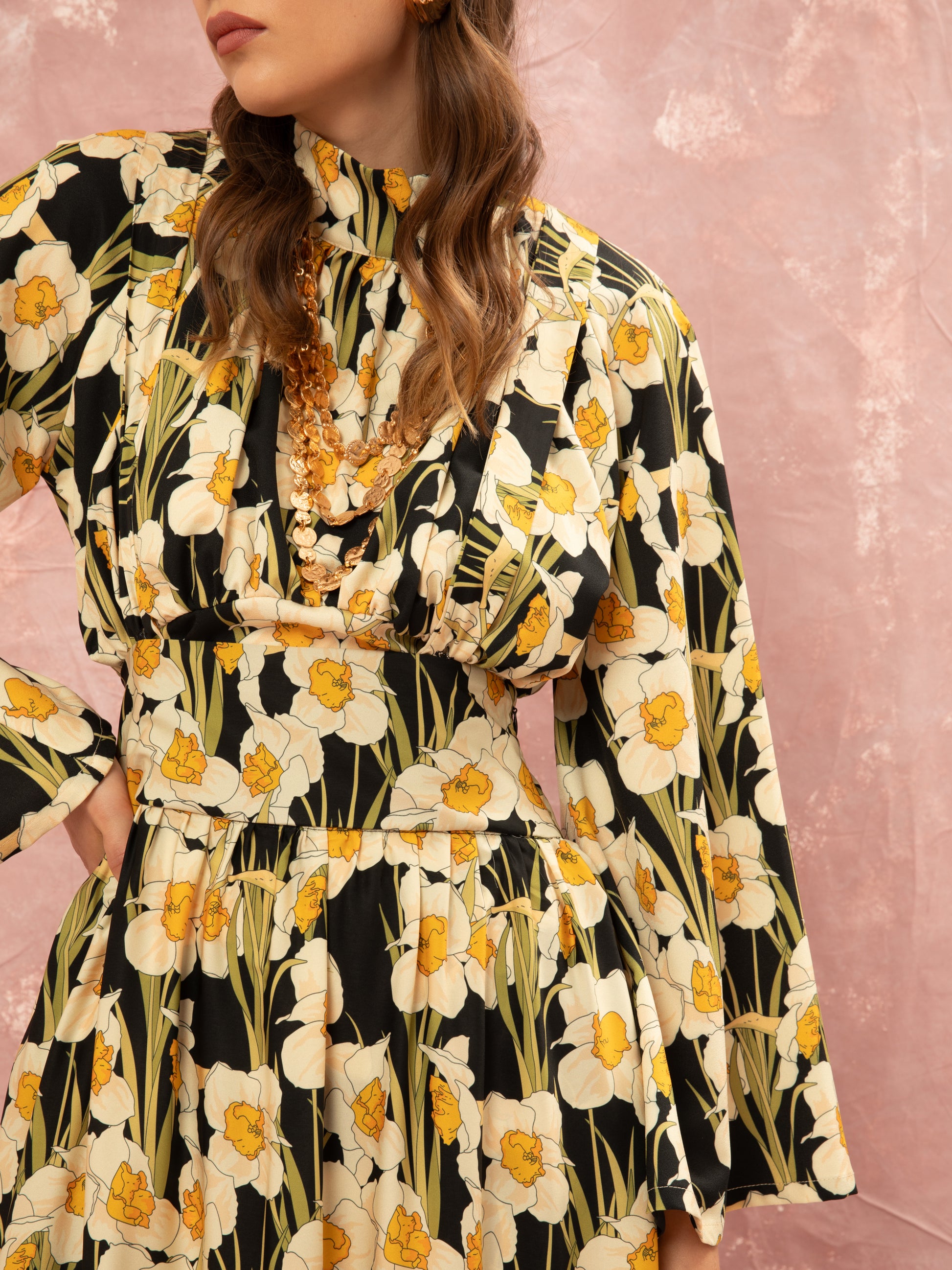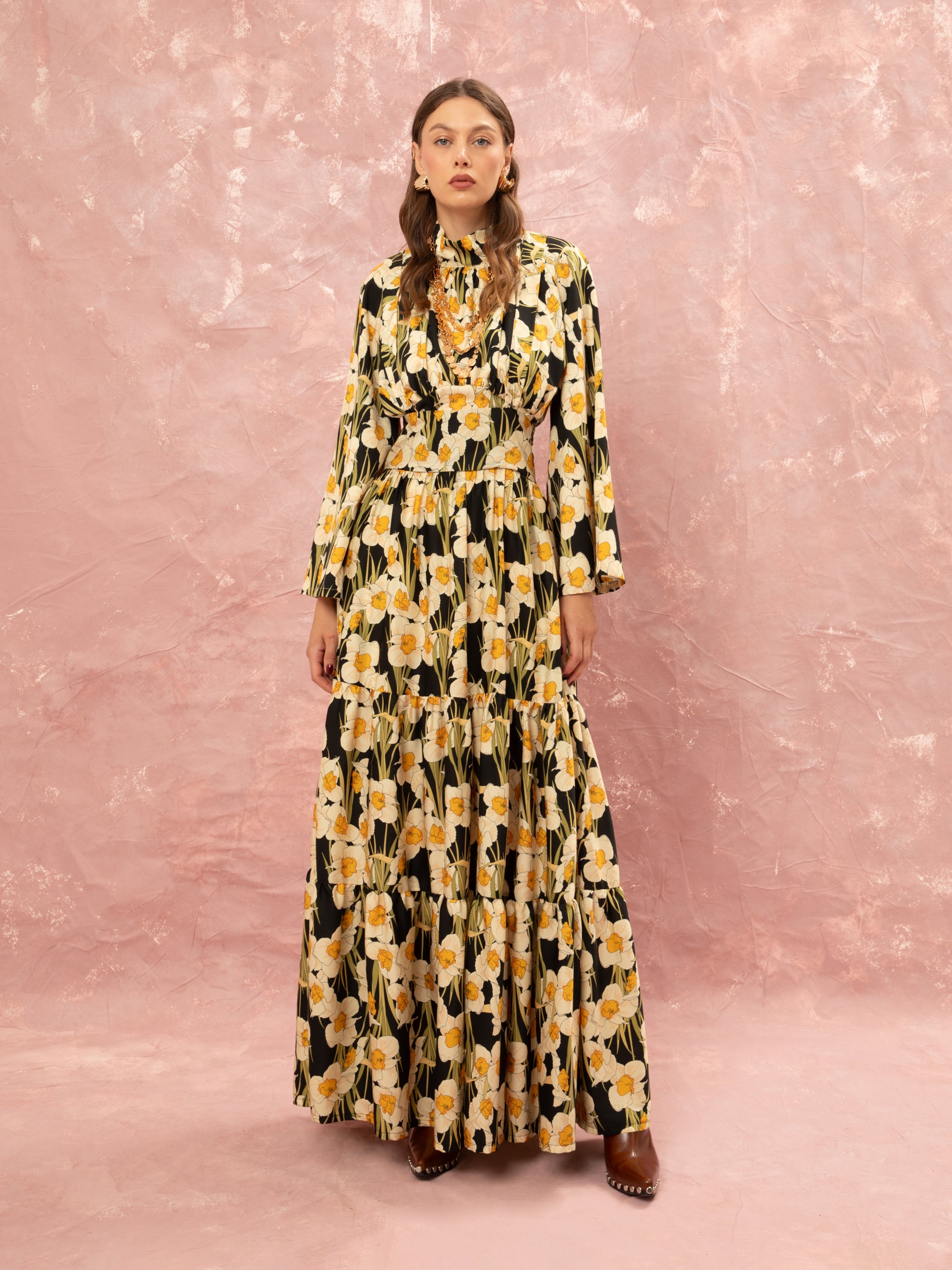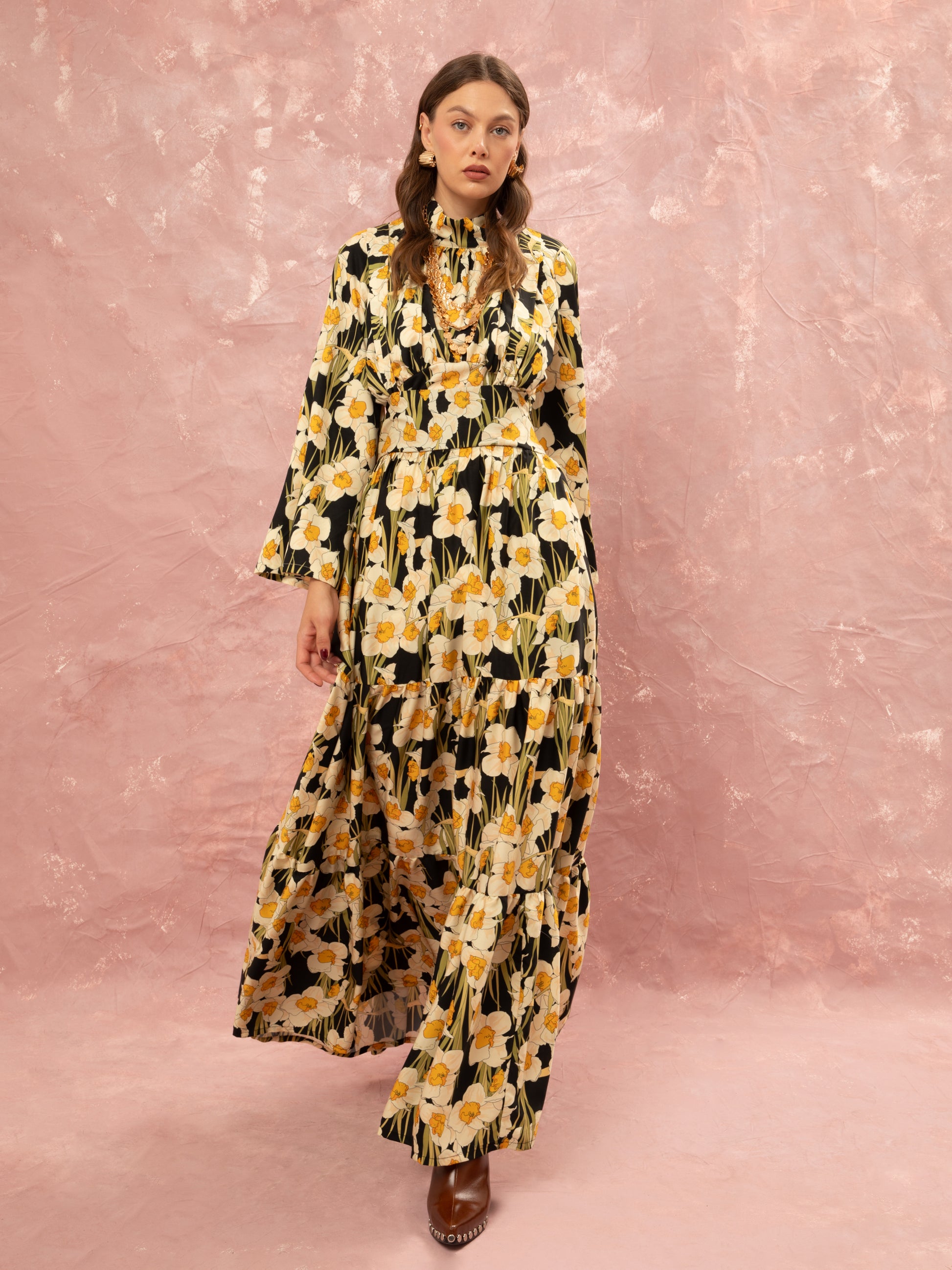 TIERED MAXI SUSPENDER SKIRT - NARCISSUS BLACK
