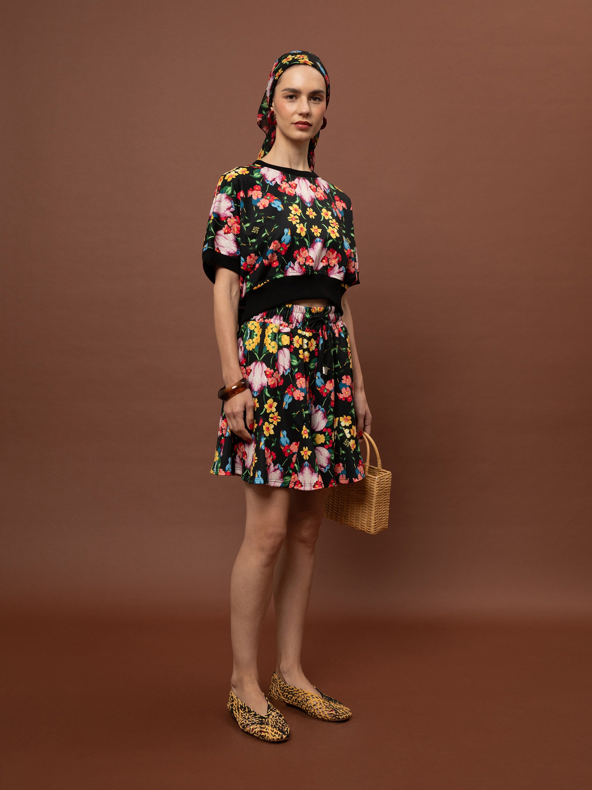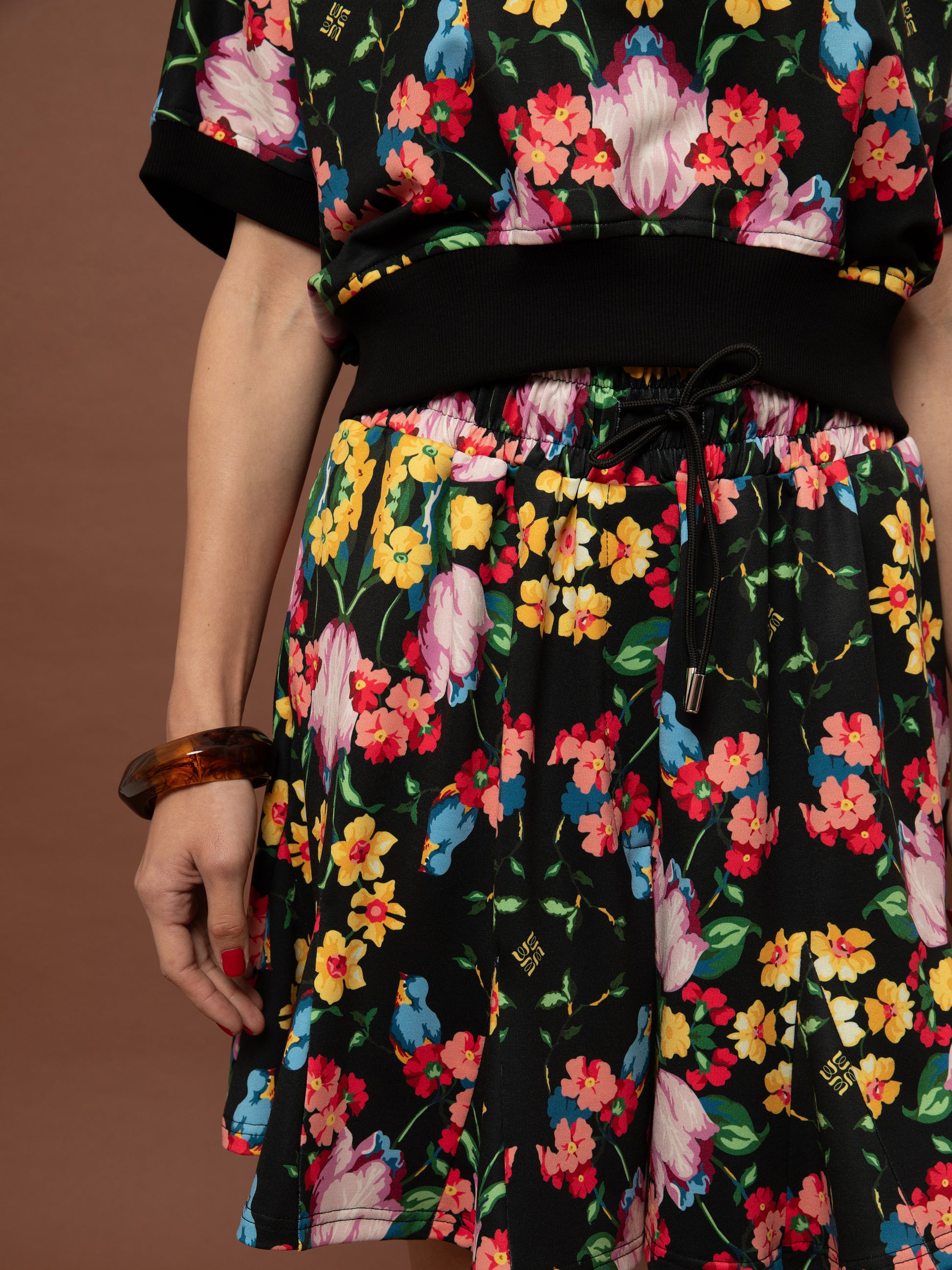 FLARED FUTTER SHORTS - BLOSSOMS BLACK