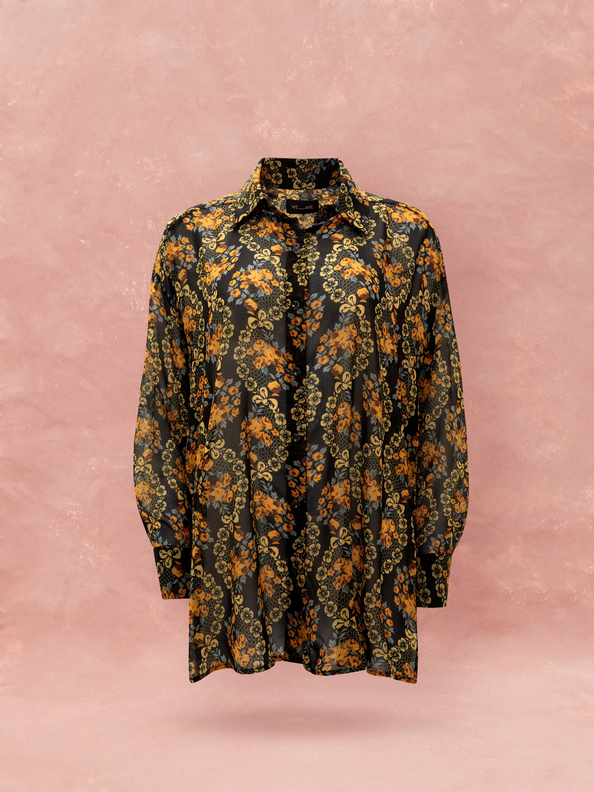 OVERSIZED CHIFFON SHIRT - LACE BOUQUET BLACK