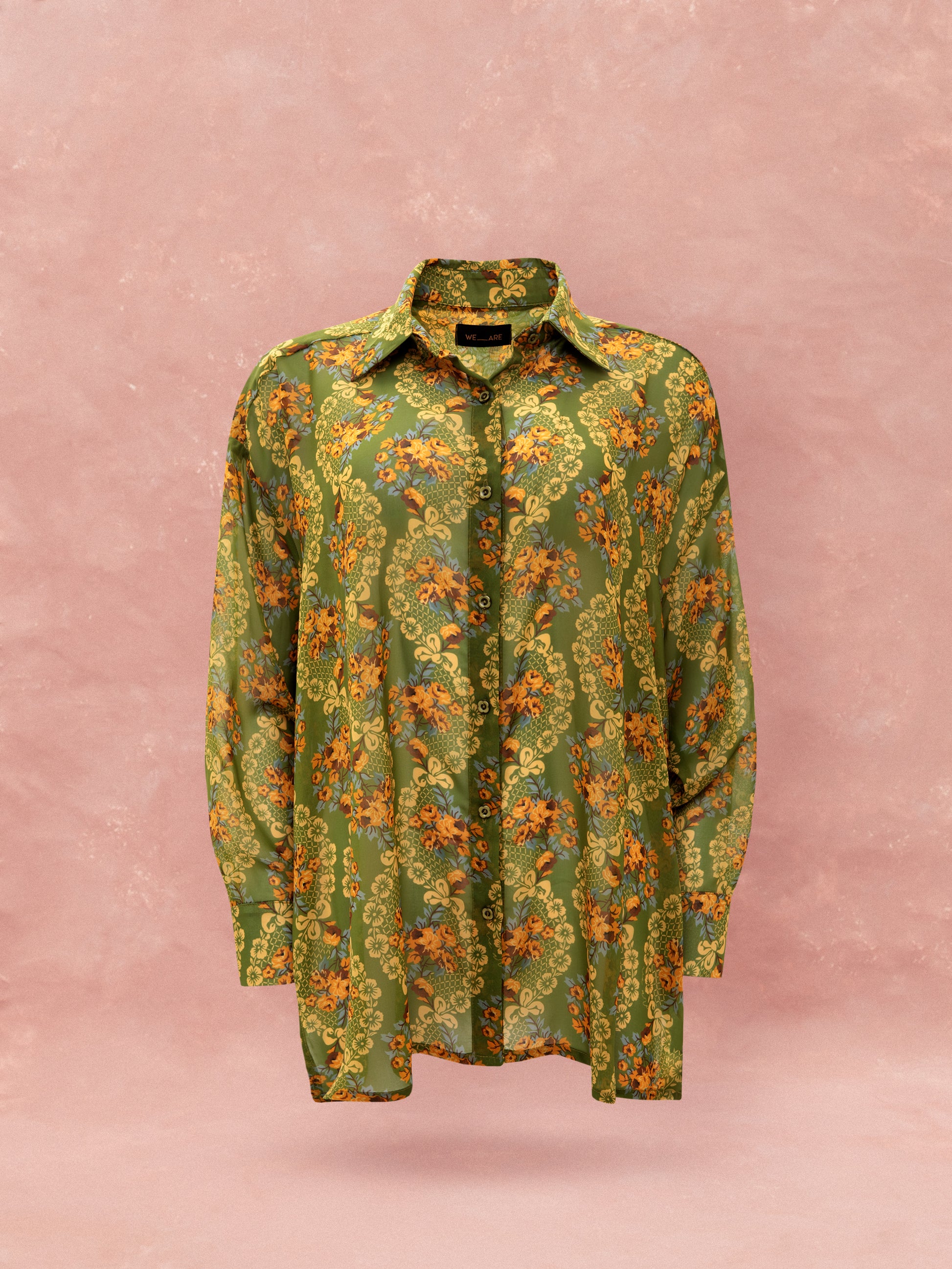 OVERSIZED CHIFFON SHIRT - LACE BOUQUET LIME