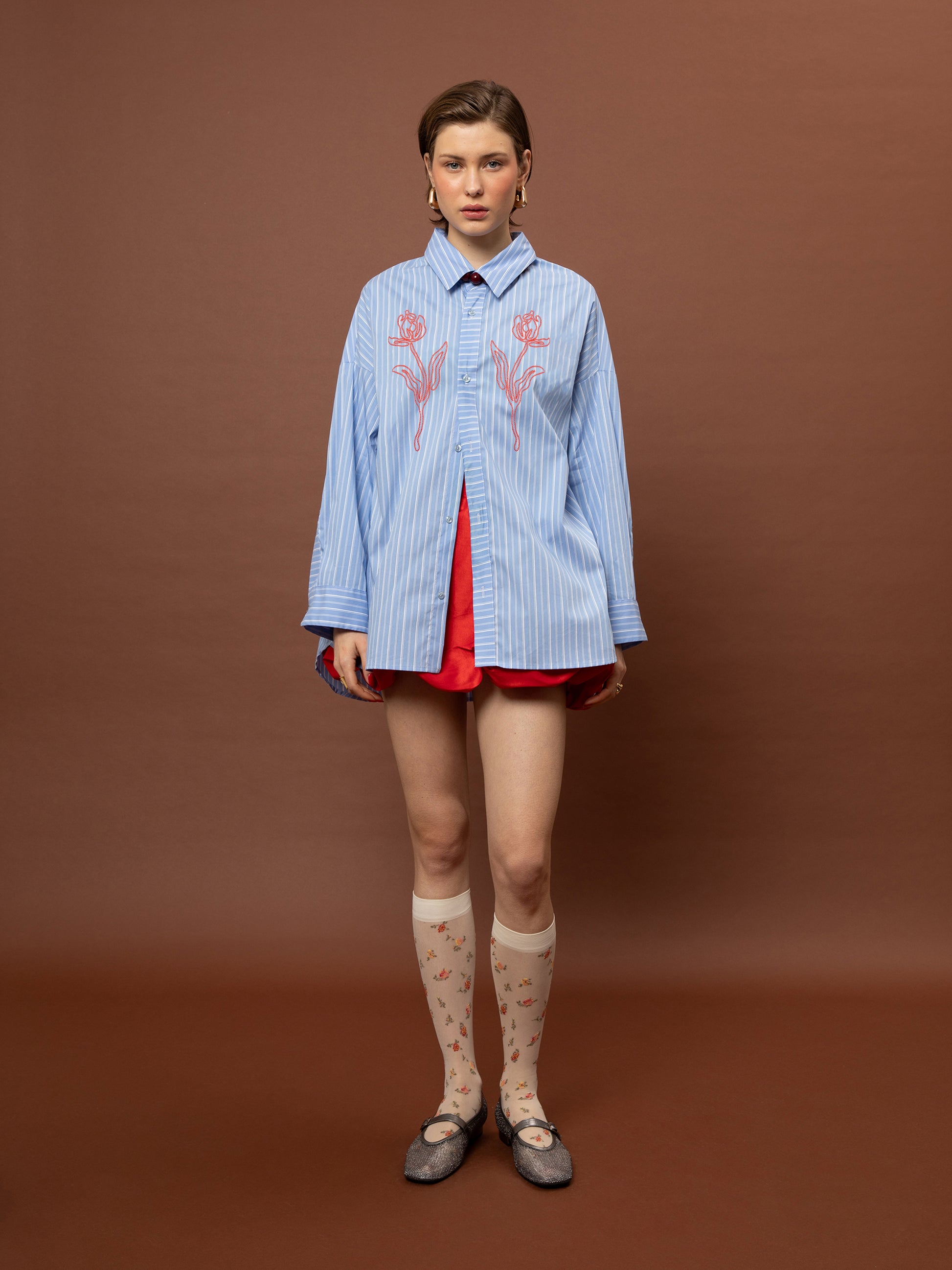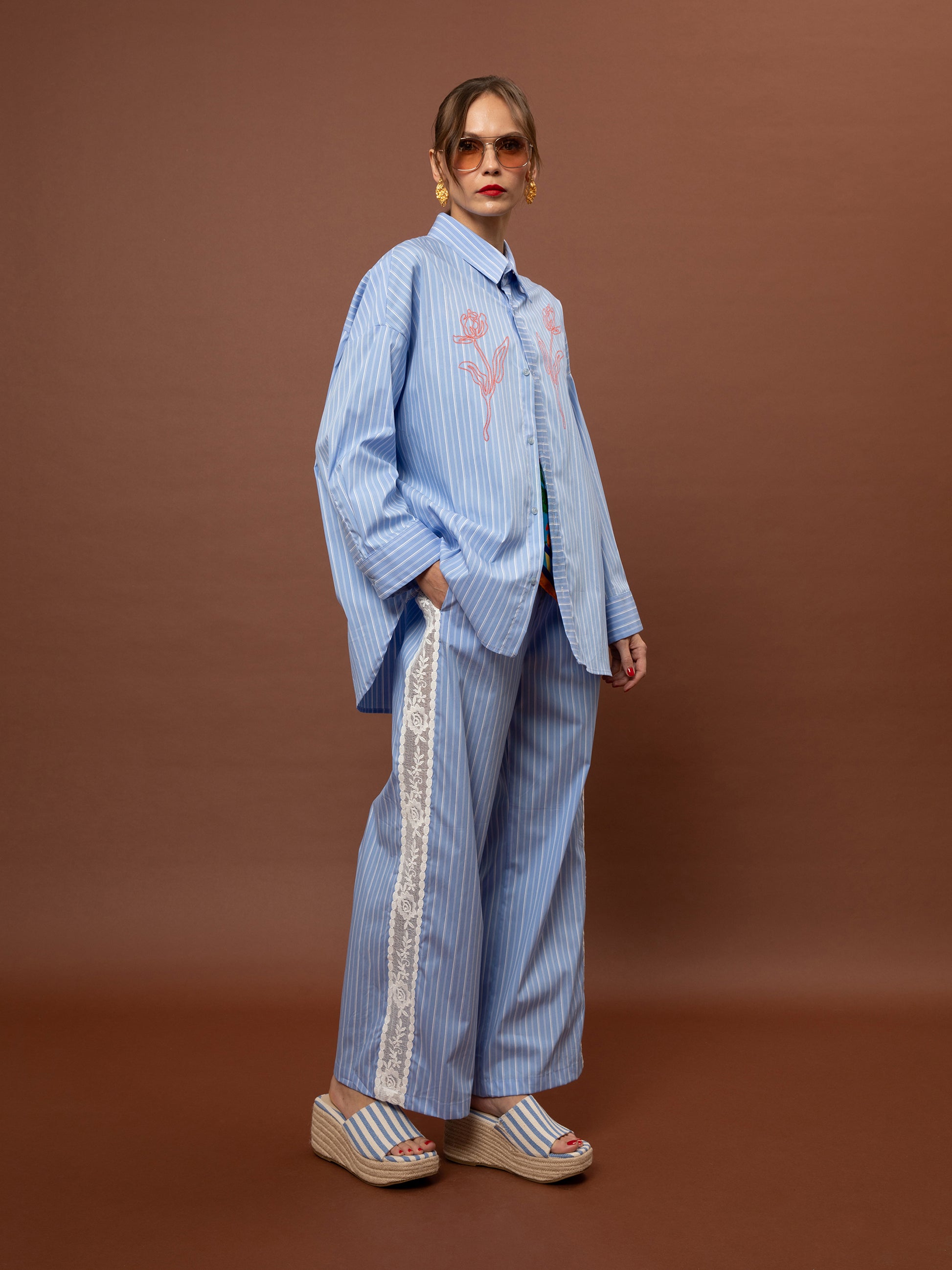 OVERSIZED STRIPED SHIRT - LIGHT BLUE