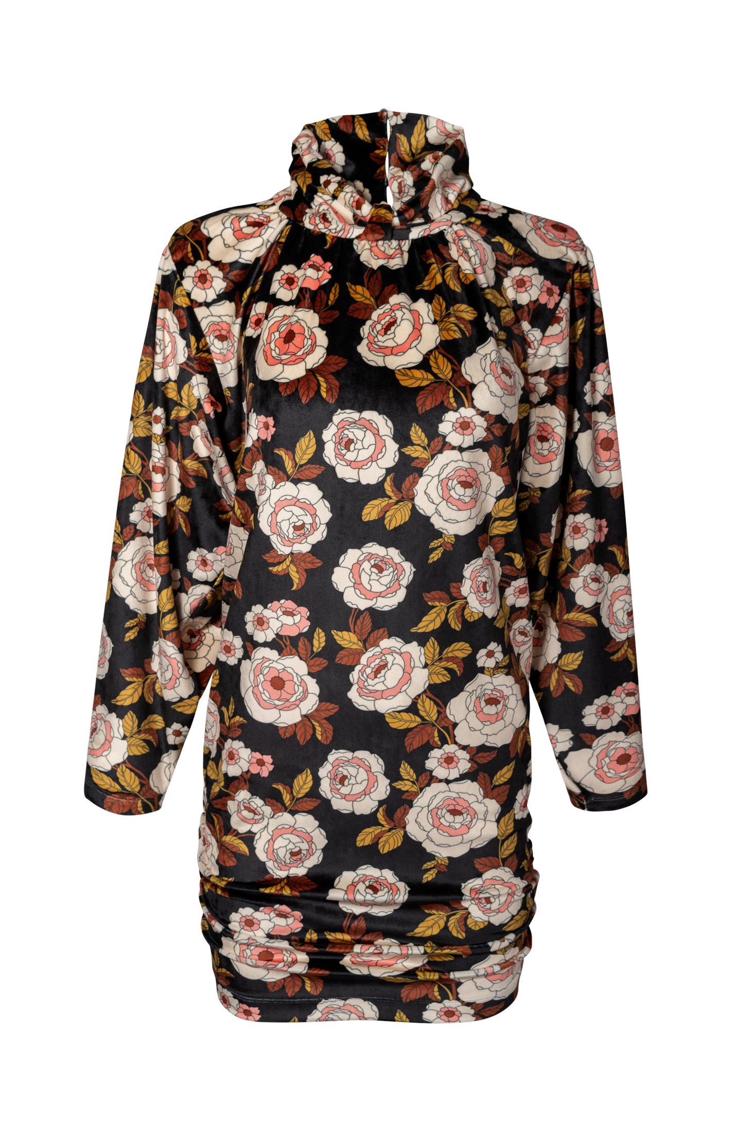 BATWING VELOUR MINI DRESS PEONY BLACK