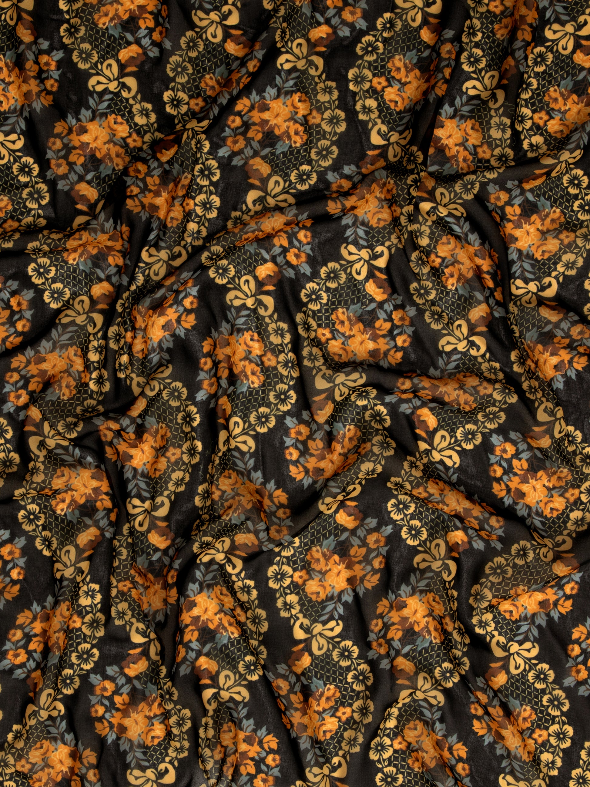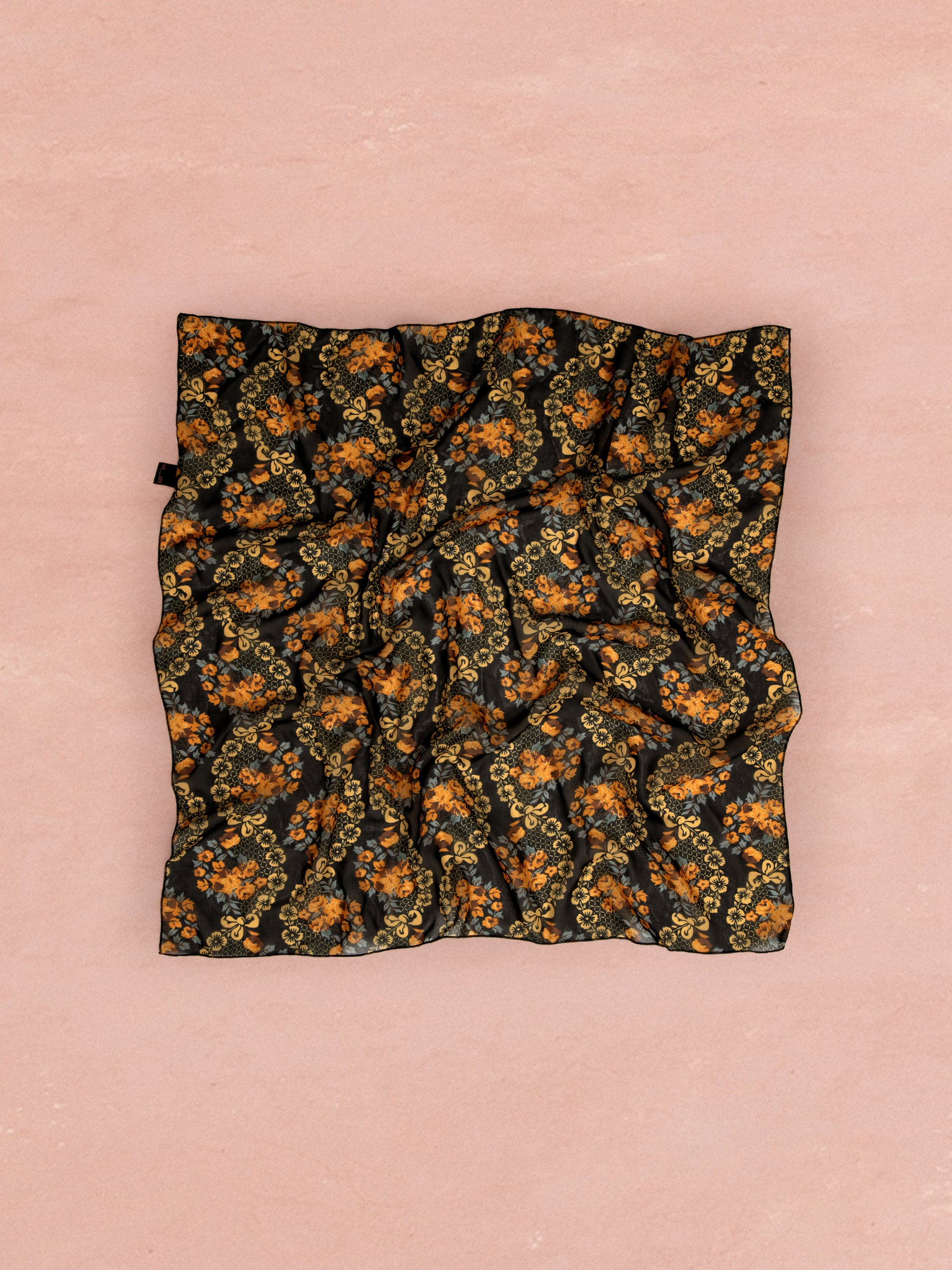 CHIFFON SCARF - LACE BOUQUET BLACK