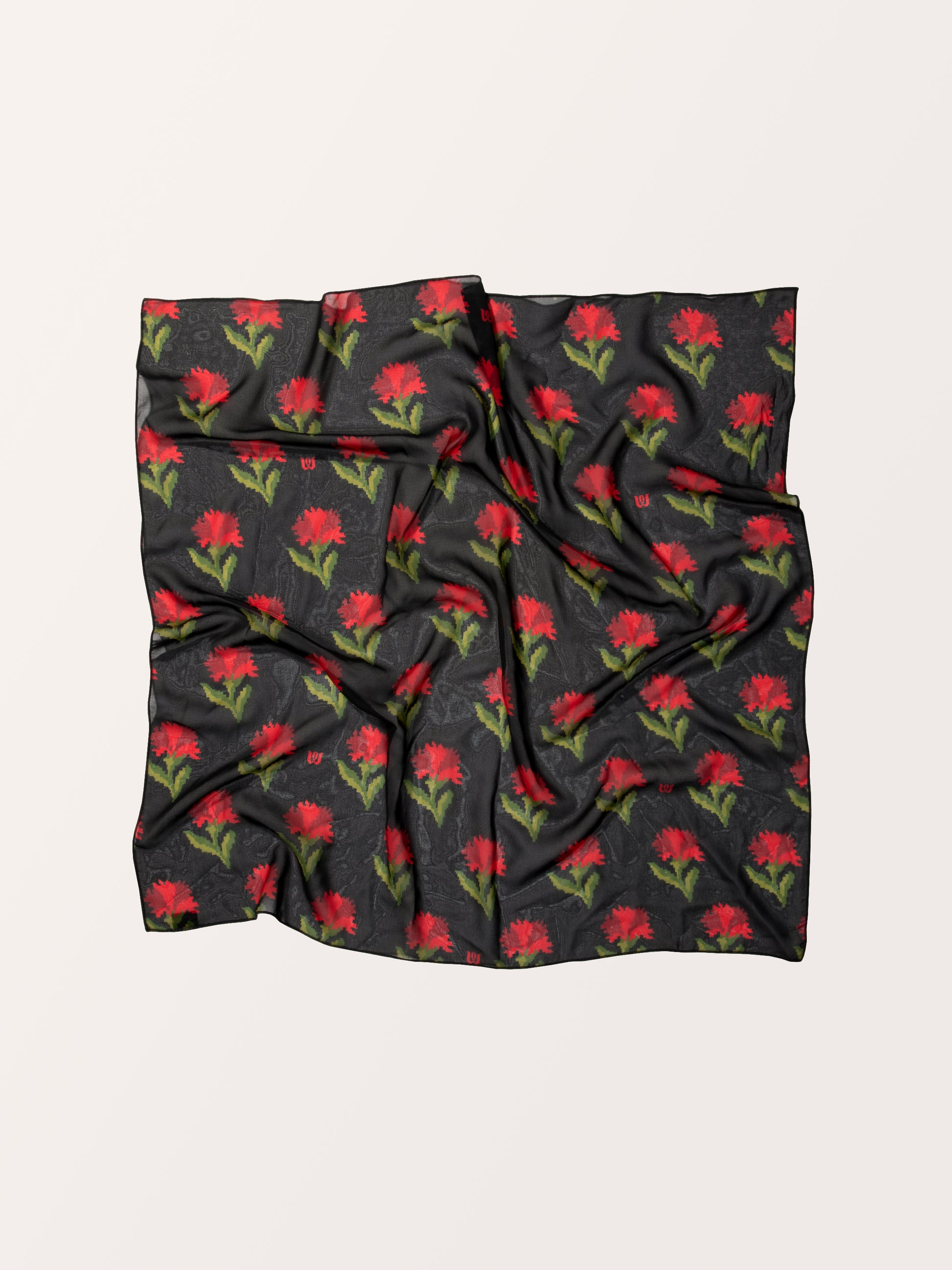 CHIFFON SQUARE SCARF CARNATIONS BLACK