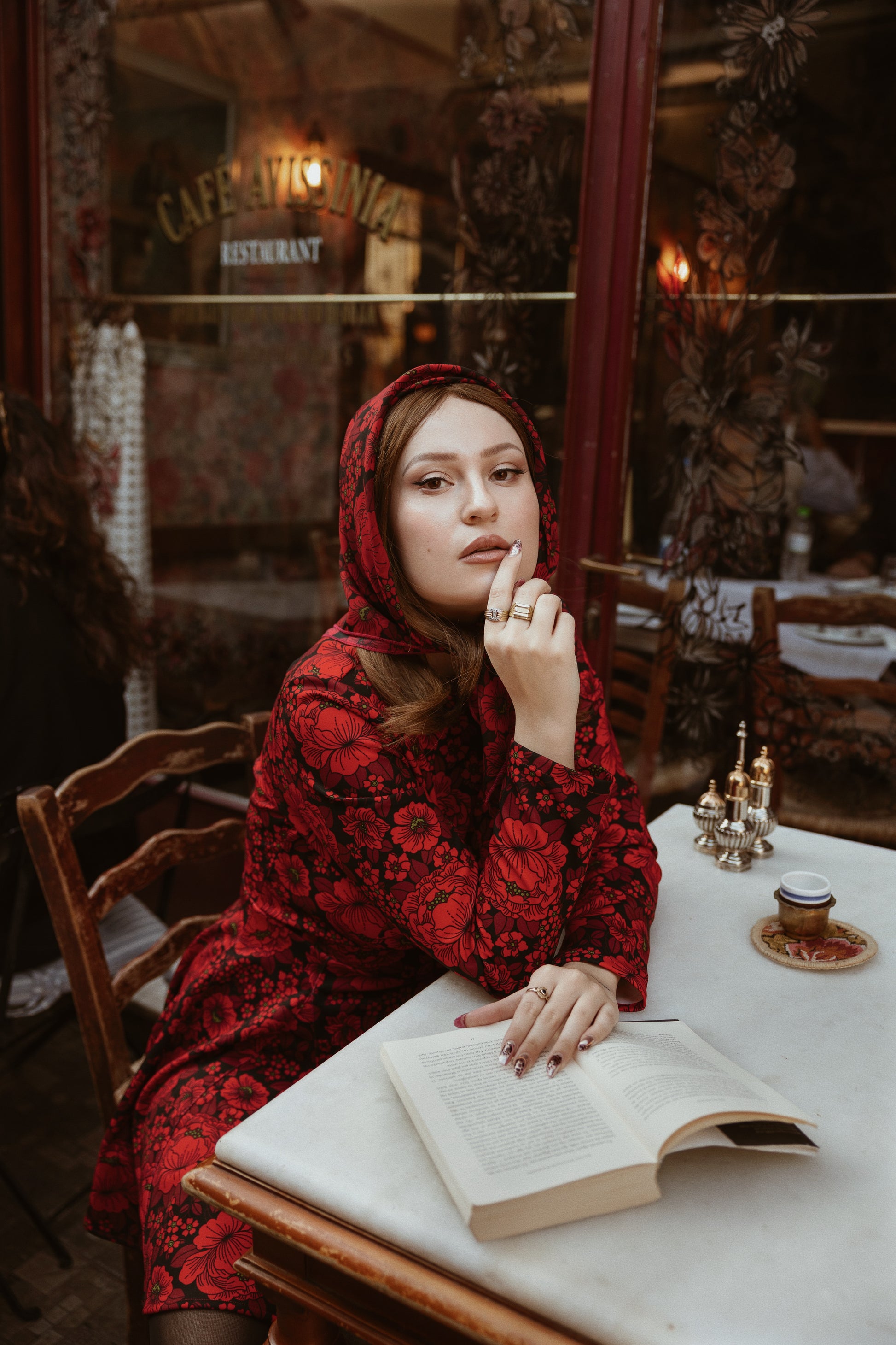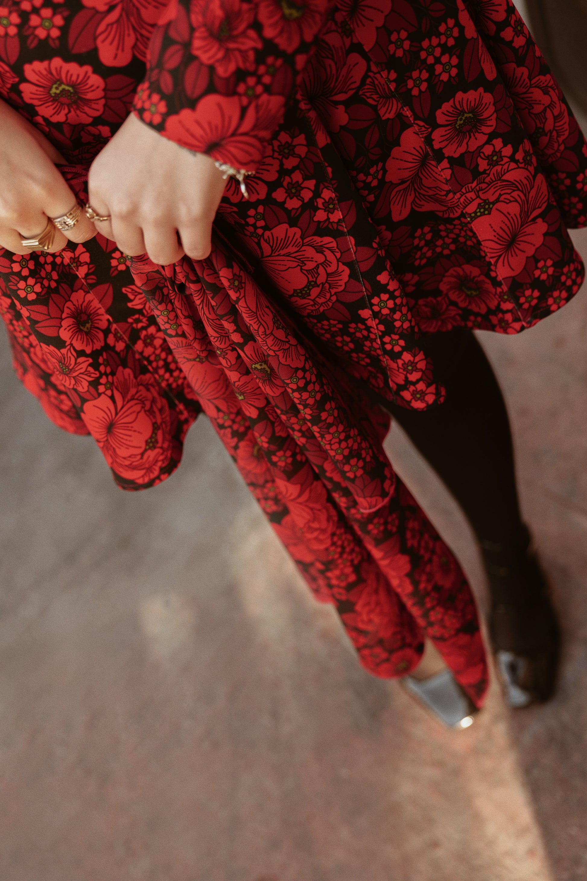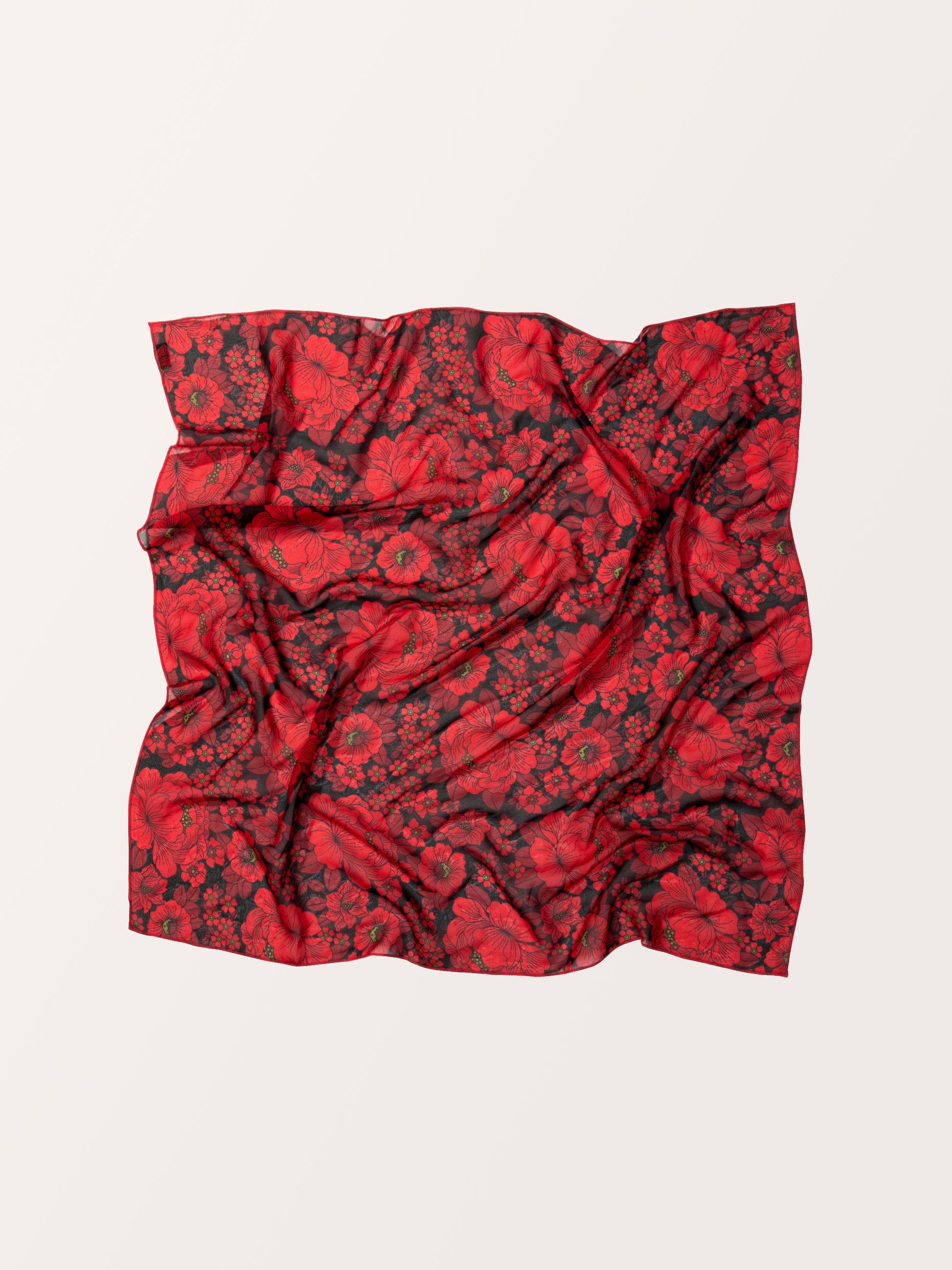 CHIFFON SQUARE SCARF FLOWERS RED