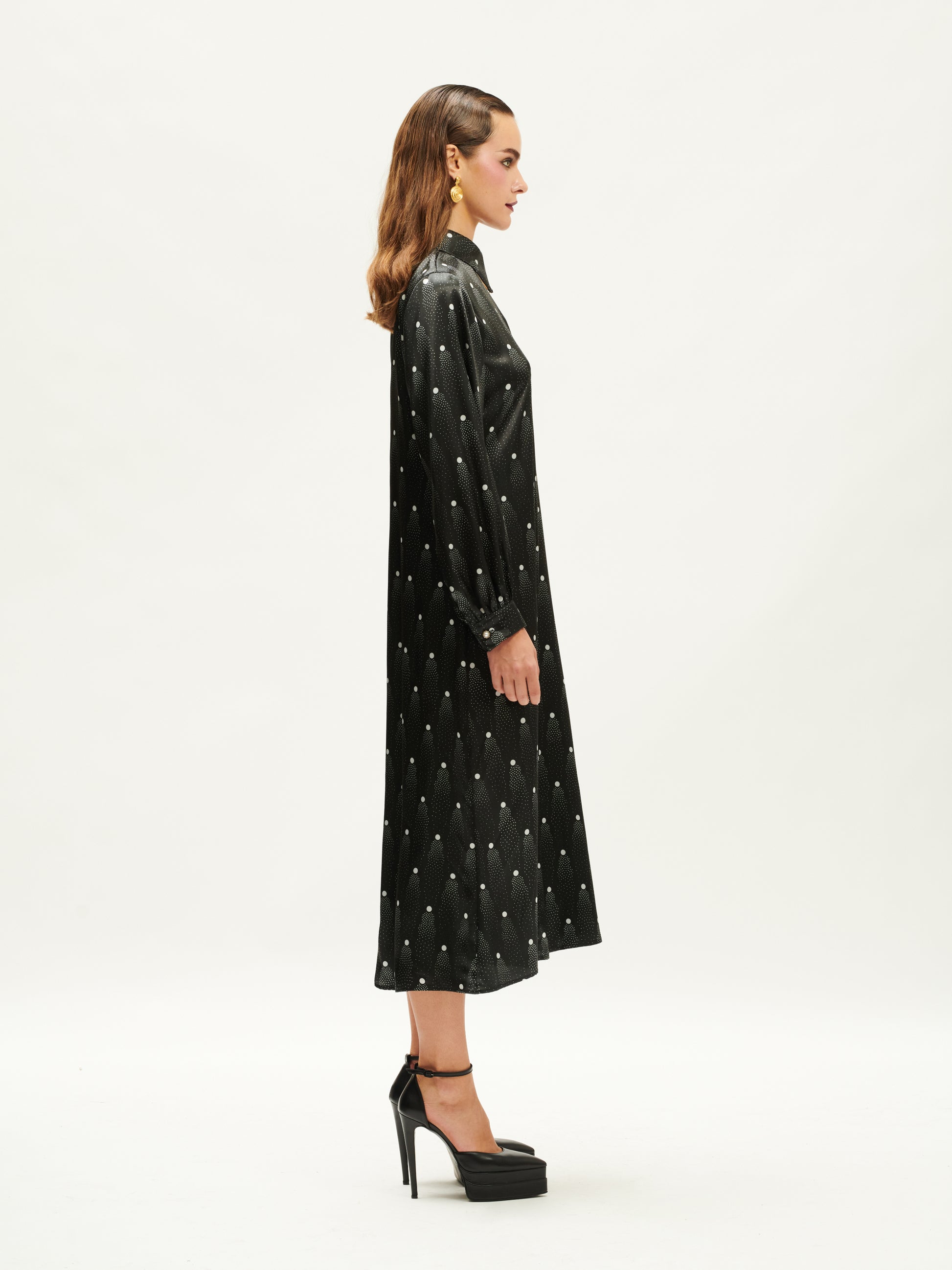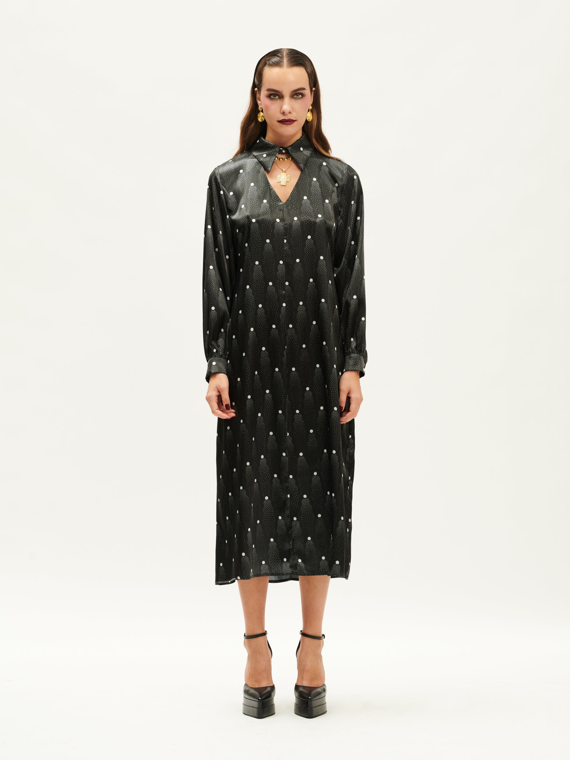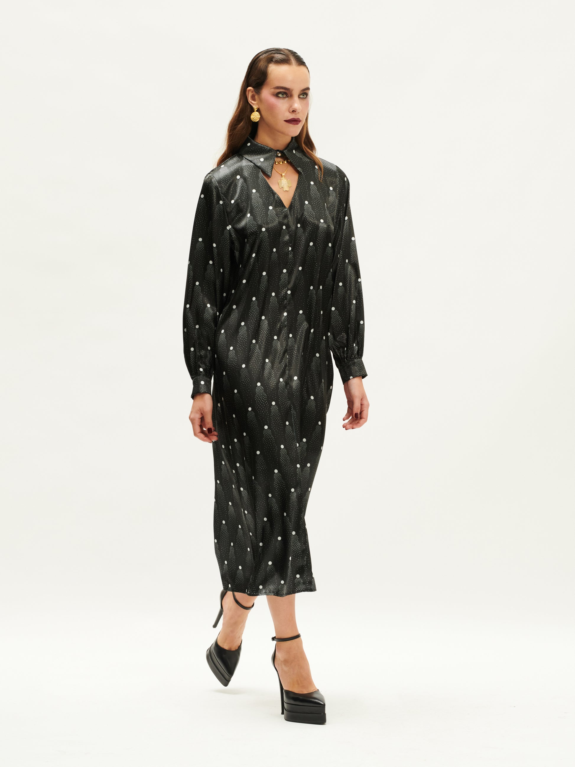 COLLAR-NECK MIDI DRESS COMET BLACK