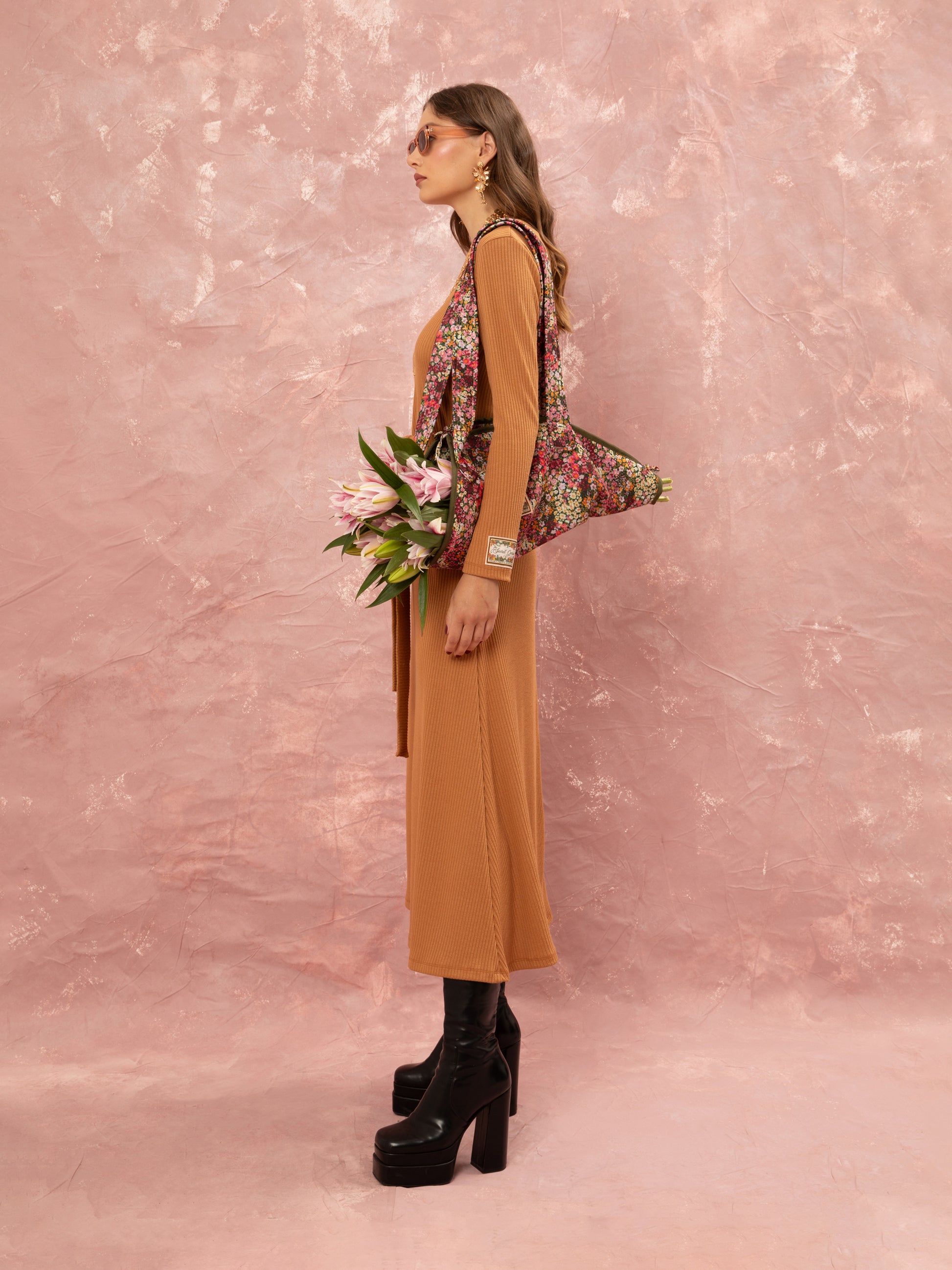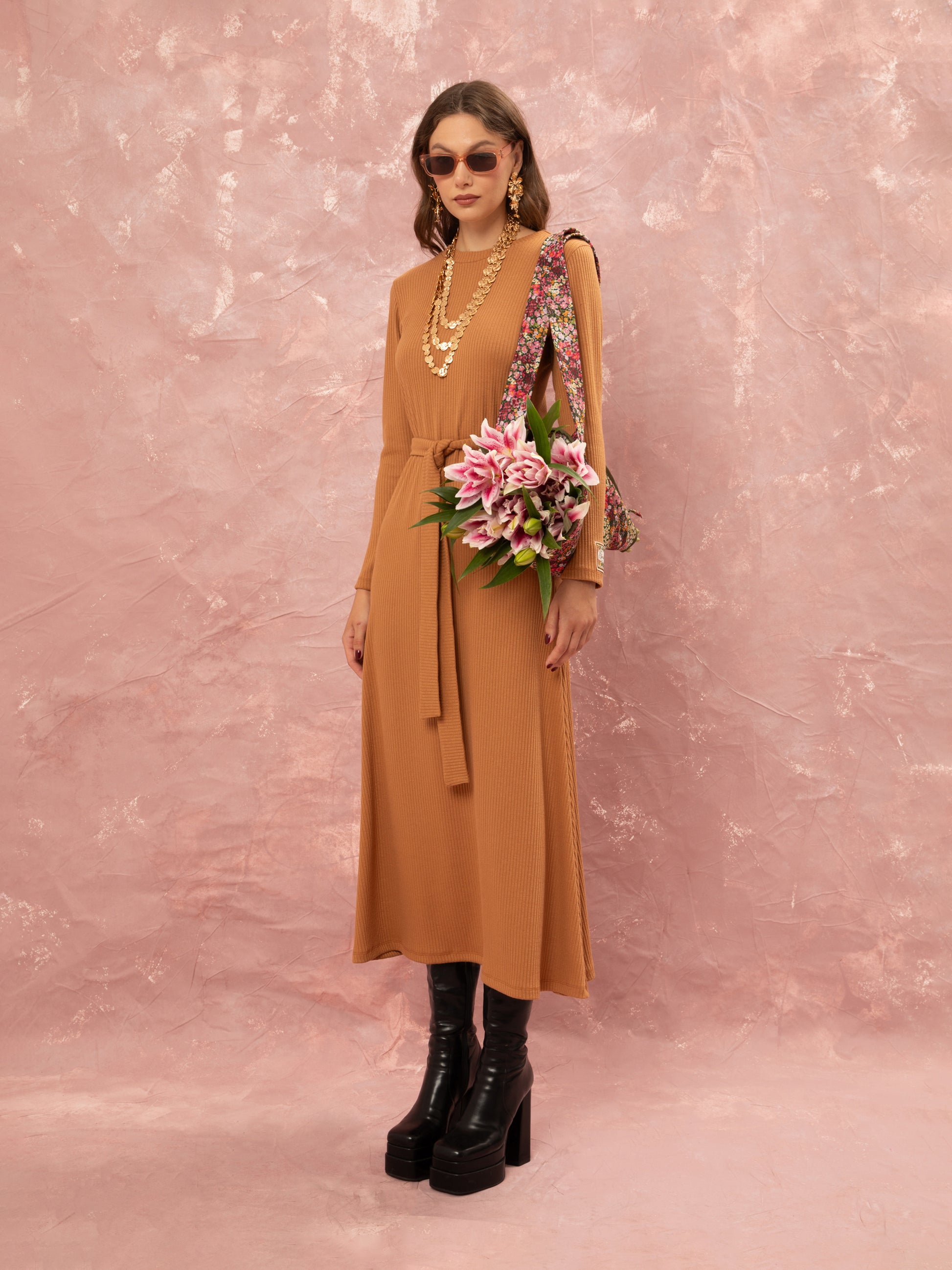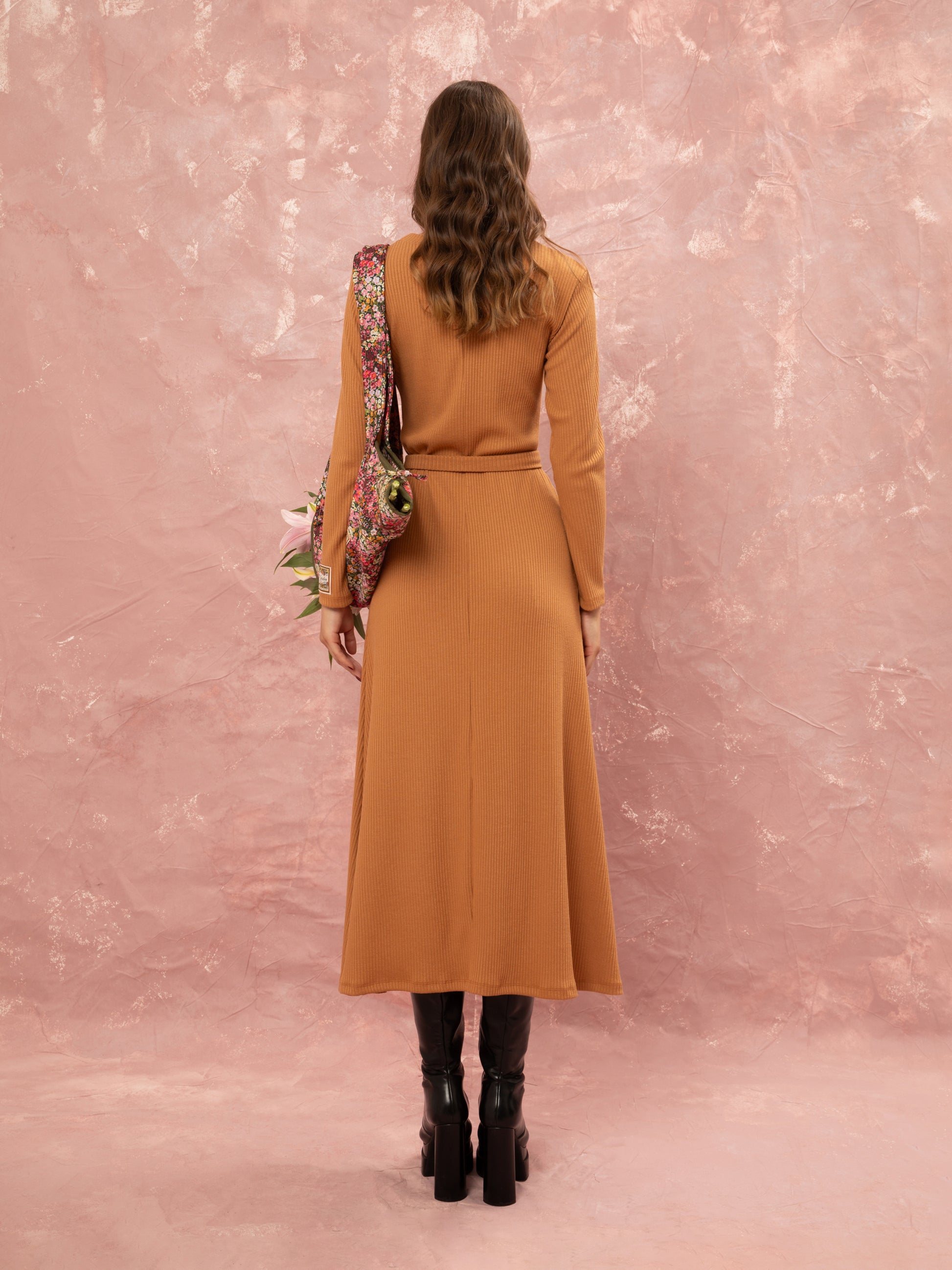 KNITTED RIBBED DRESS - BEIGE