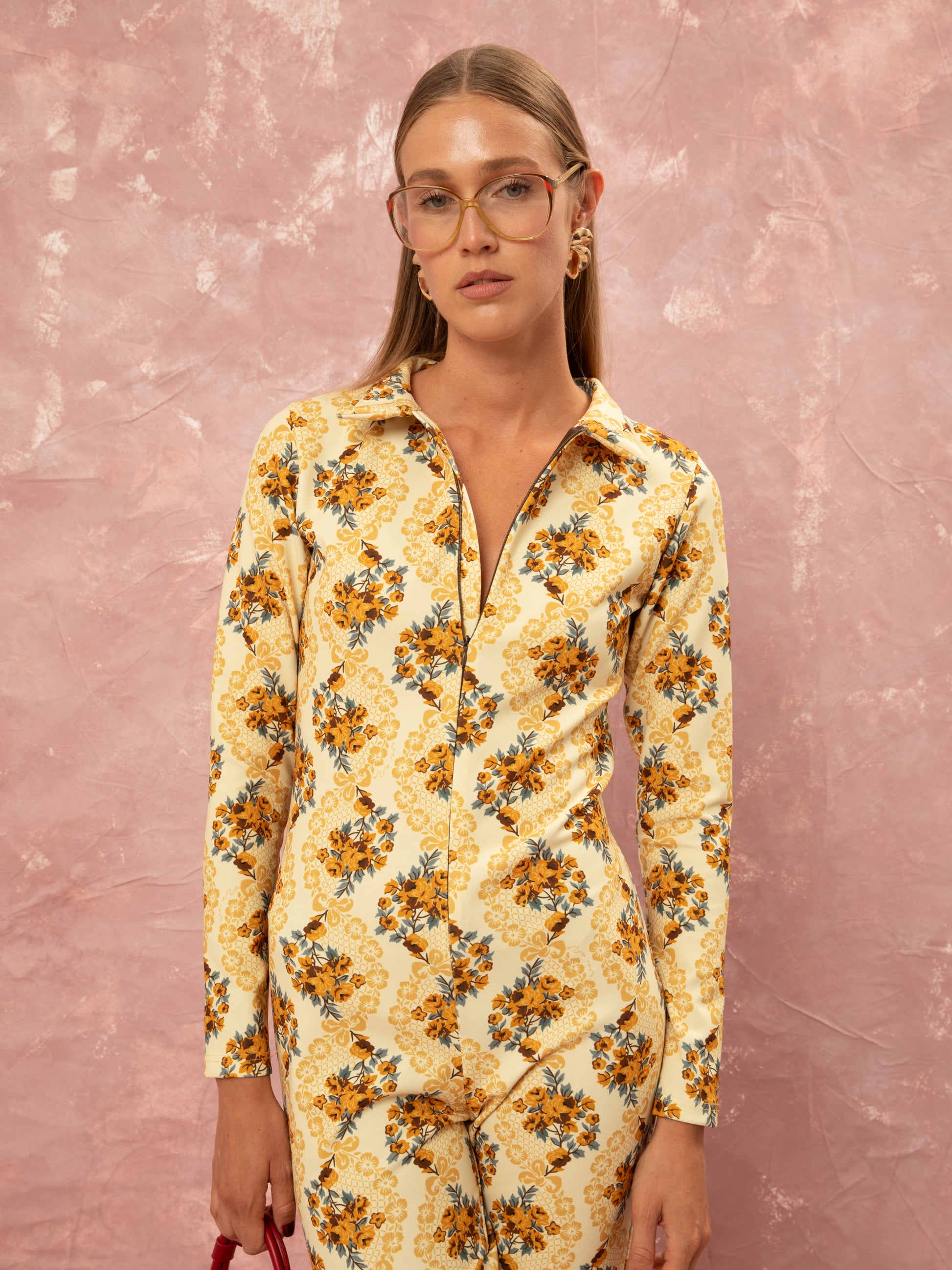FLARED JUMPSUIT - LACE BOUQUET CREAM