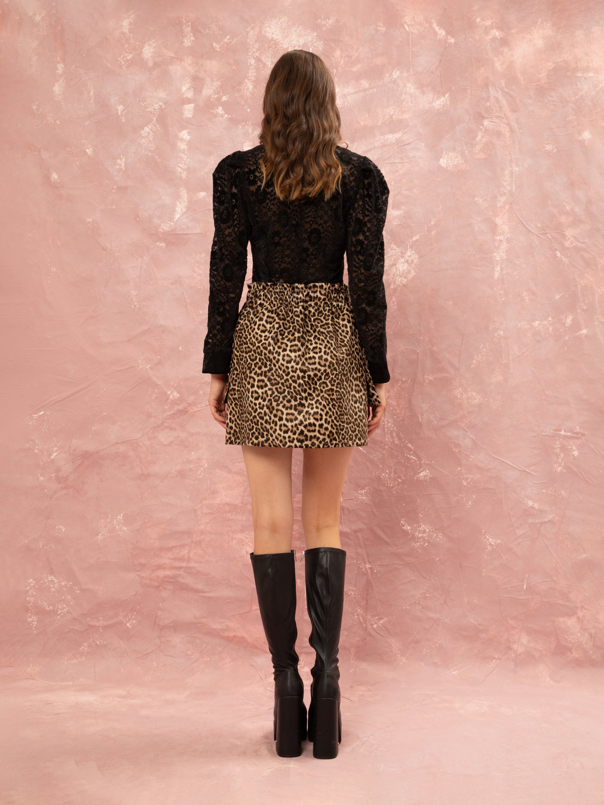 LEOPARD VEGAN-LEATHER MINI SKIRT - BEIGE