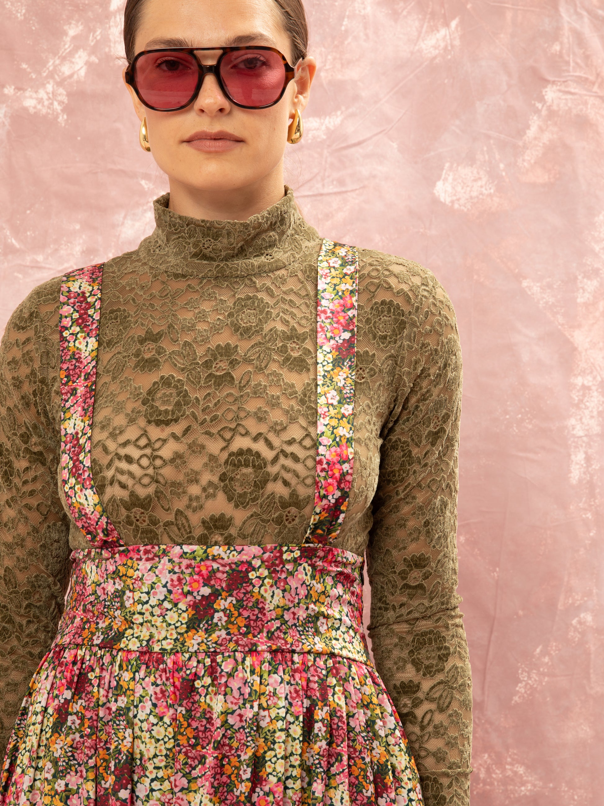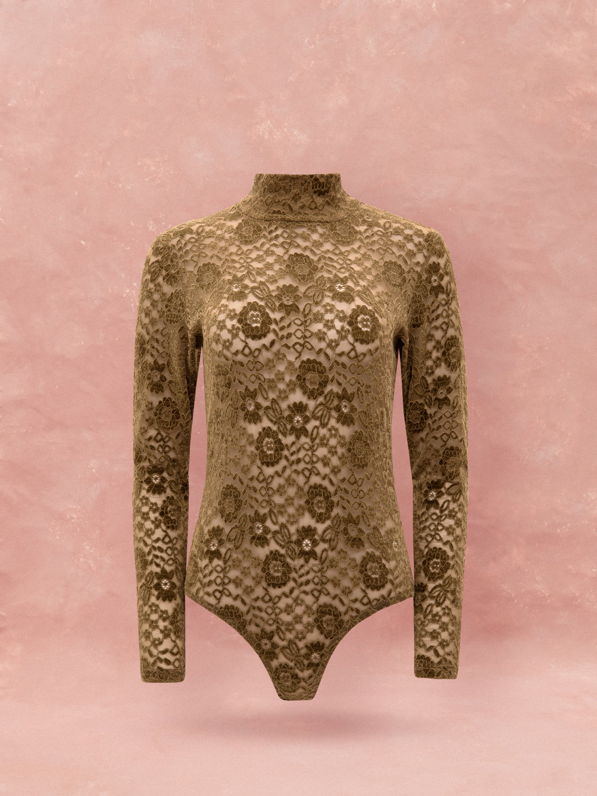 Mακρυμάνικο ζιβάγκο κορμάκι από δαντέλα