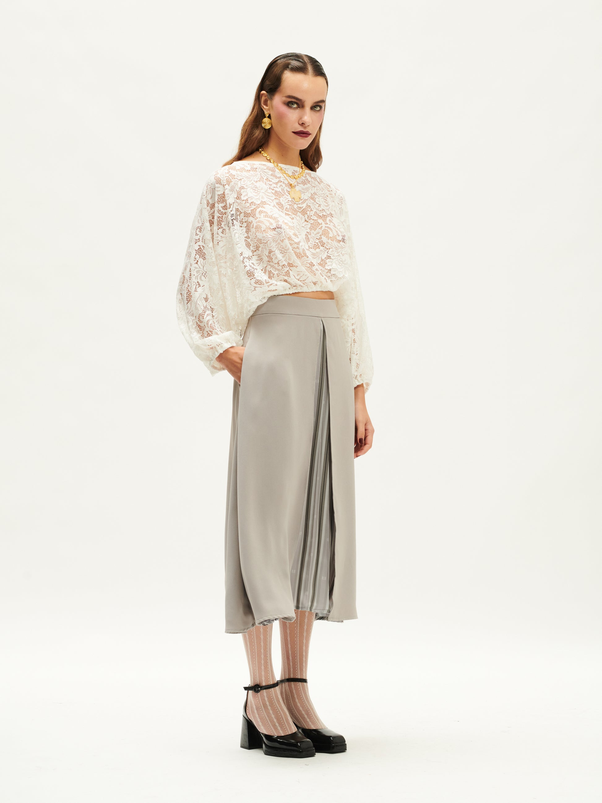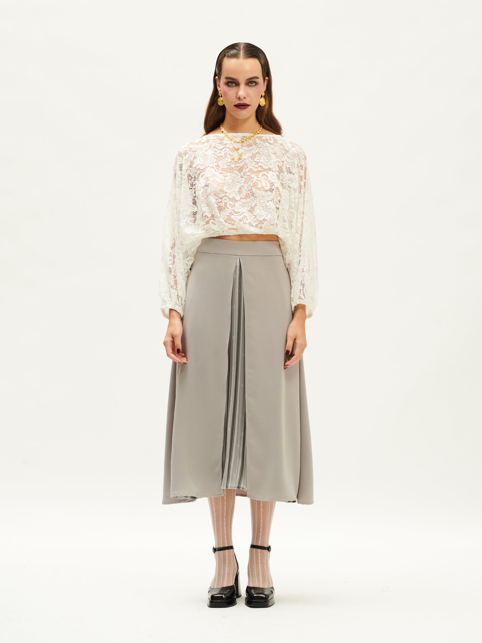 A-LINE PLEAT-DETAILED SKIRT GRAY/STRIPES