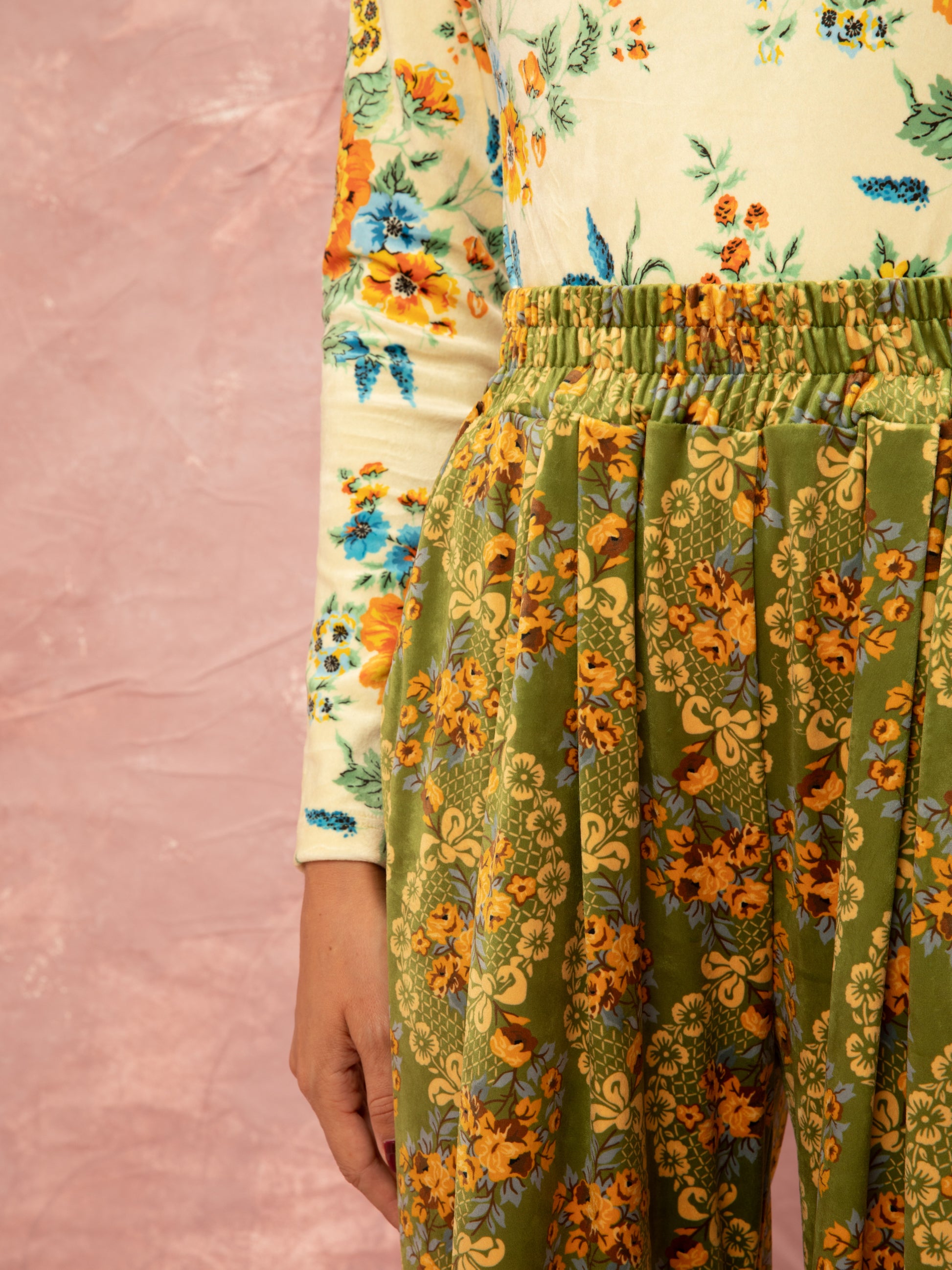 FLUFFY ELASTICATED-WAIST PANTS - LACE BOUQUET LIME