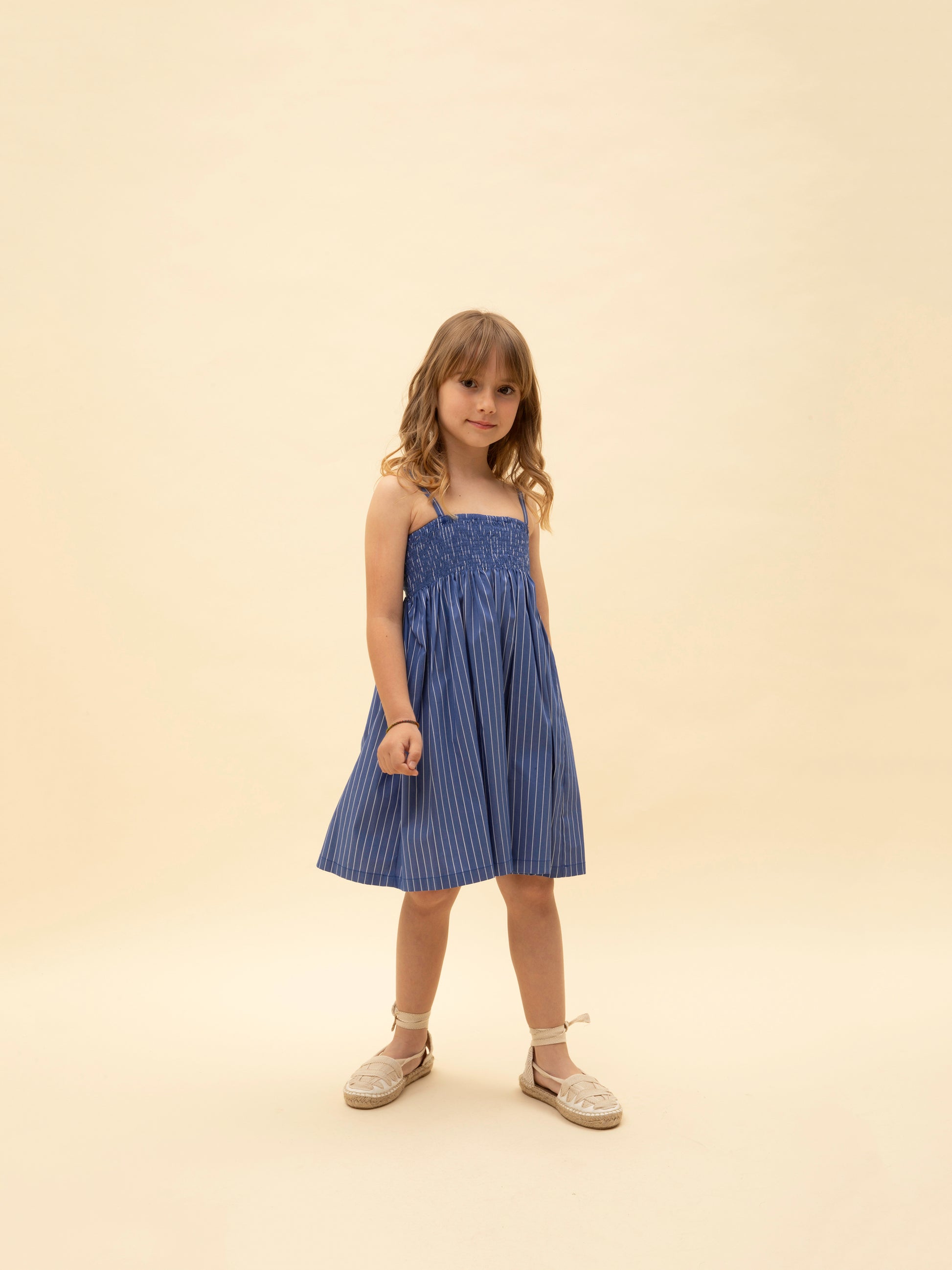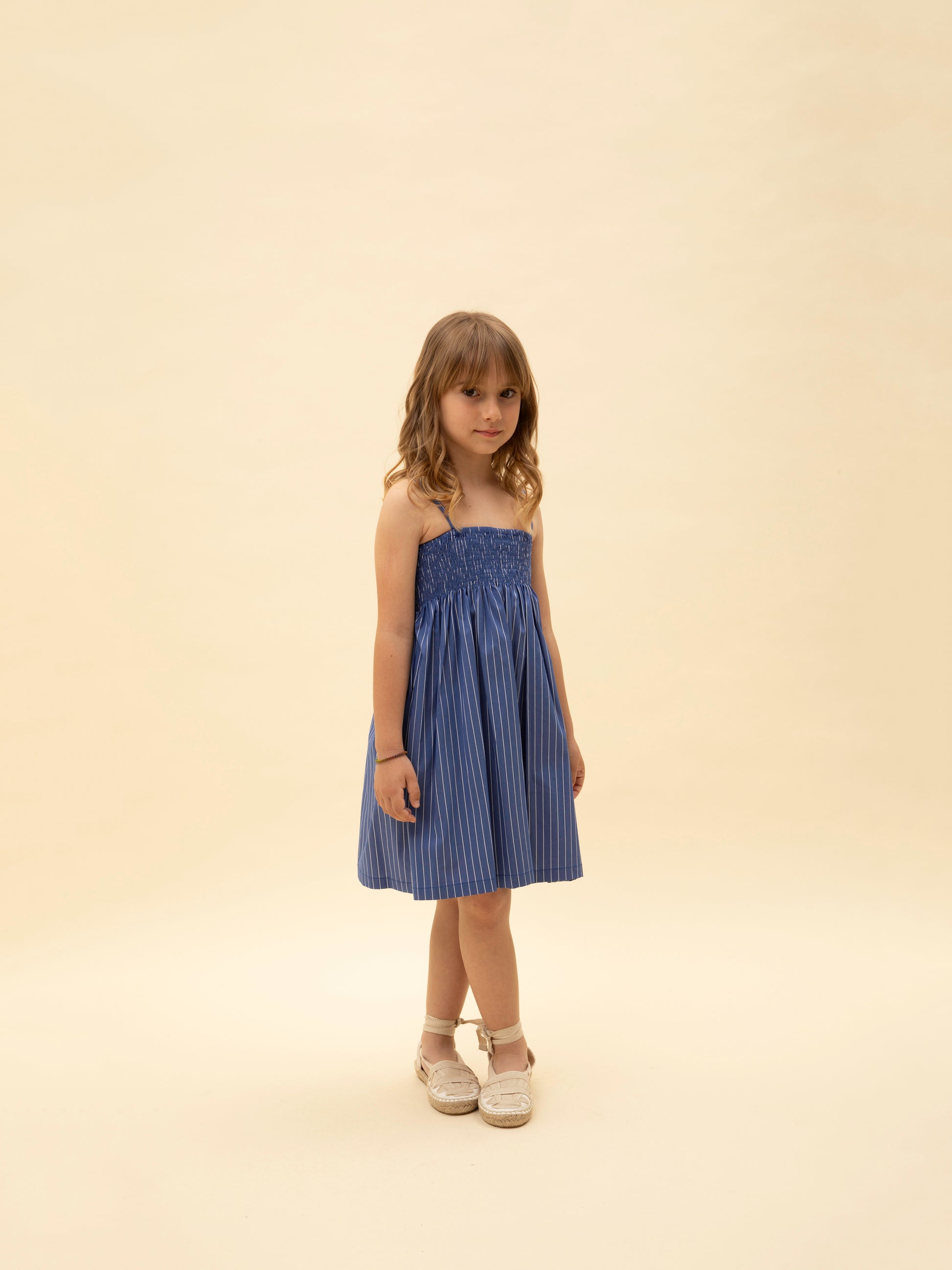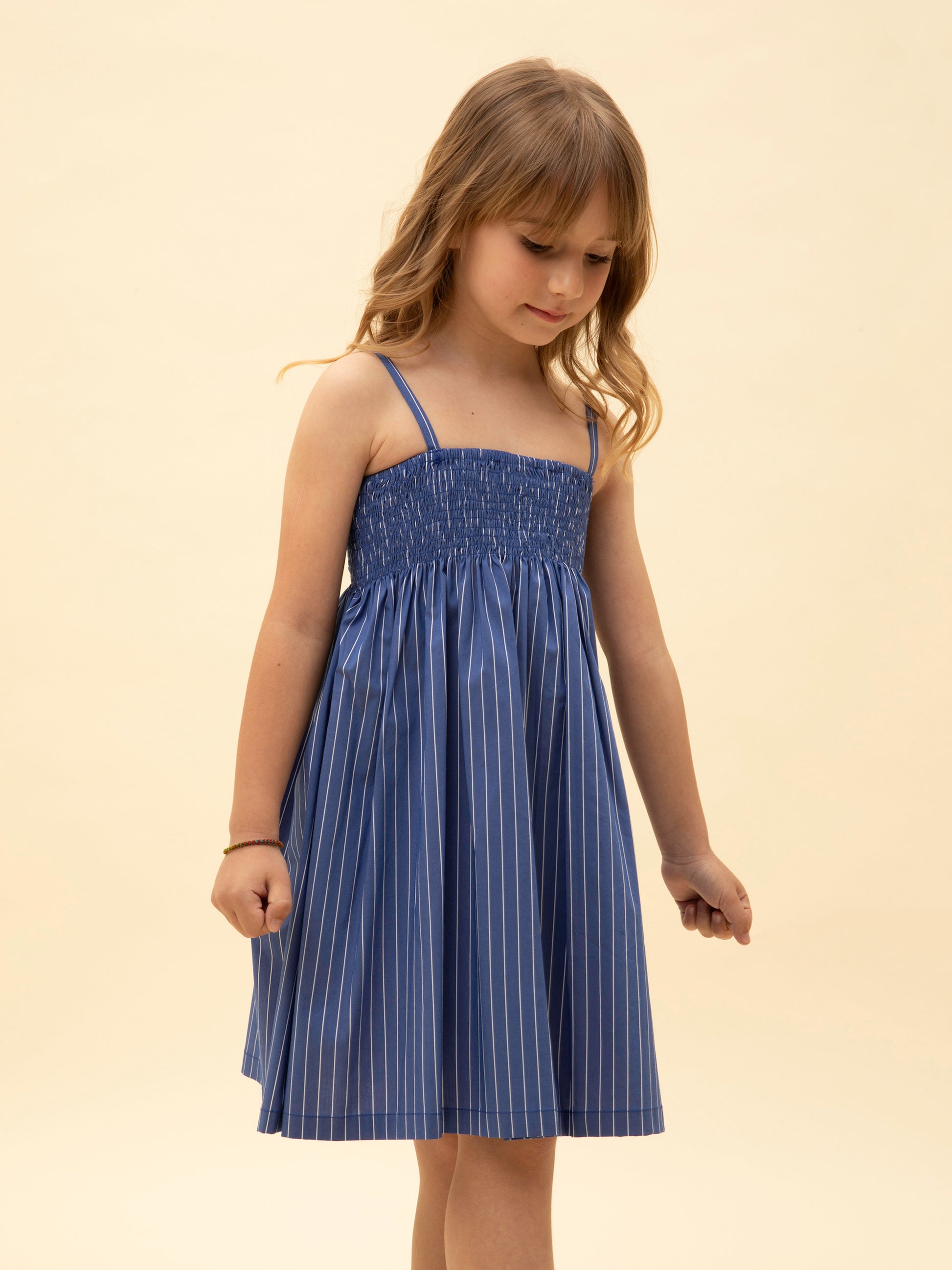 STRAPLESS SHIRRED STRIPED DRESS