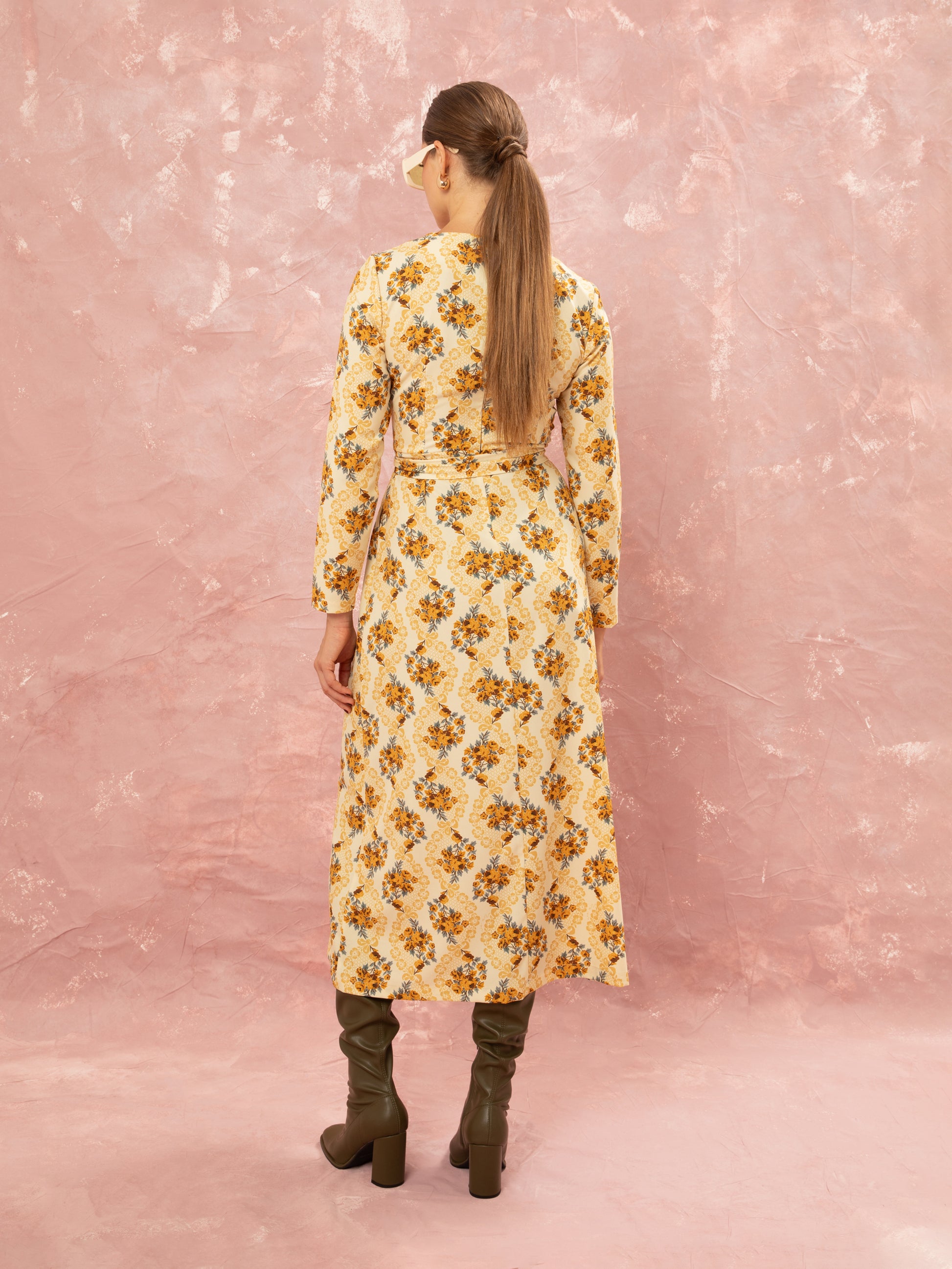 STRAIGHT LINE MIDI DRESS - LACE BOUQUET CREAM