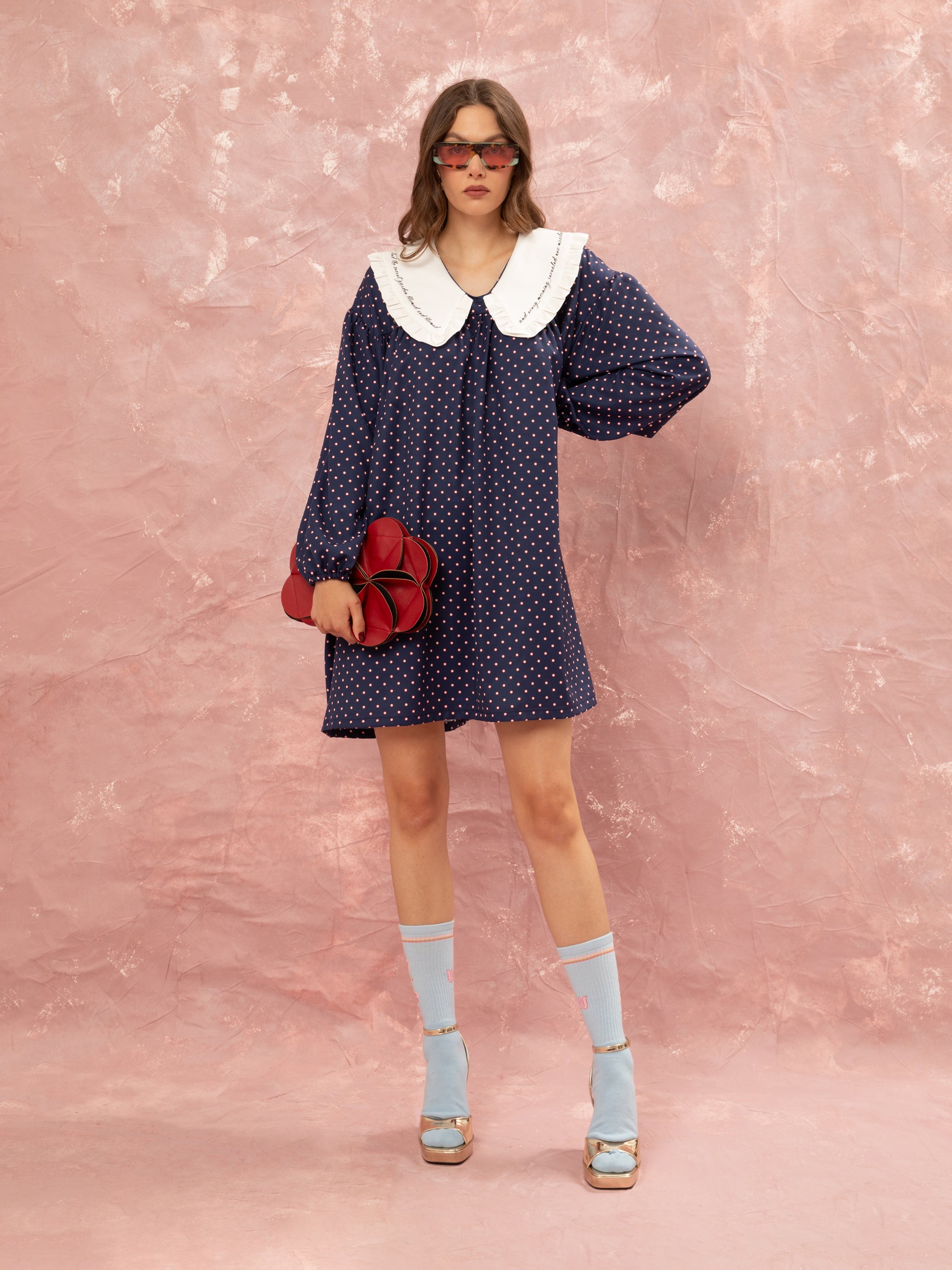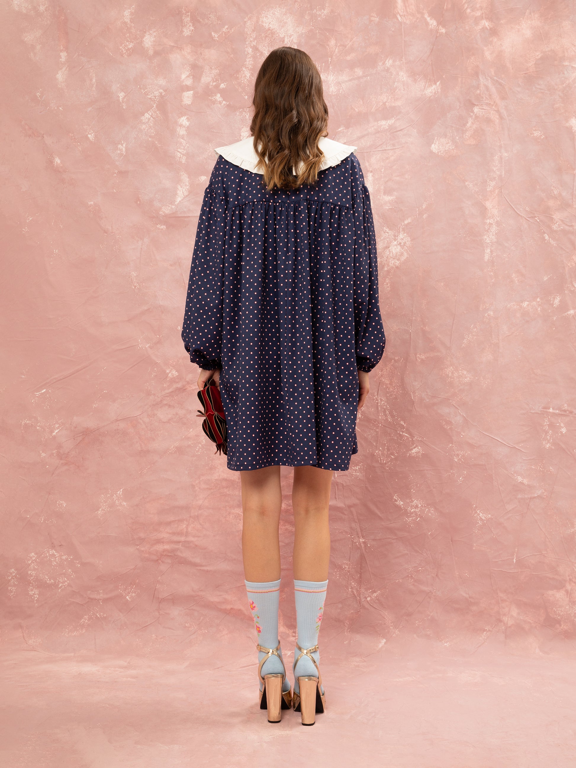BIG COLLAR MINI DRESS - FLORAL DOT BLUE