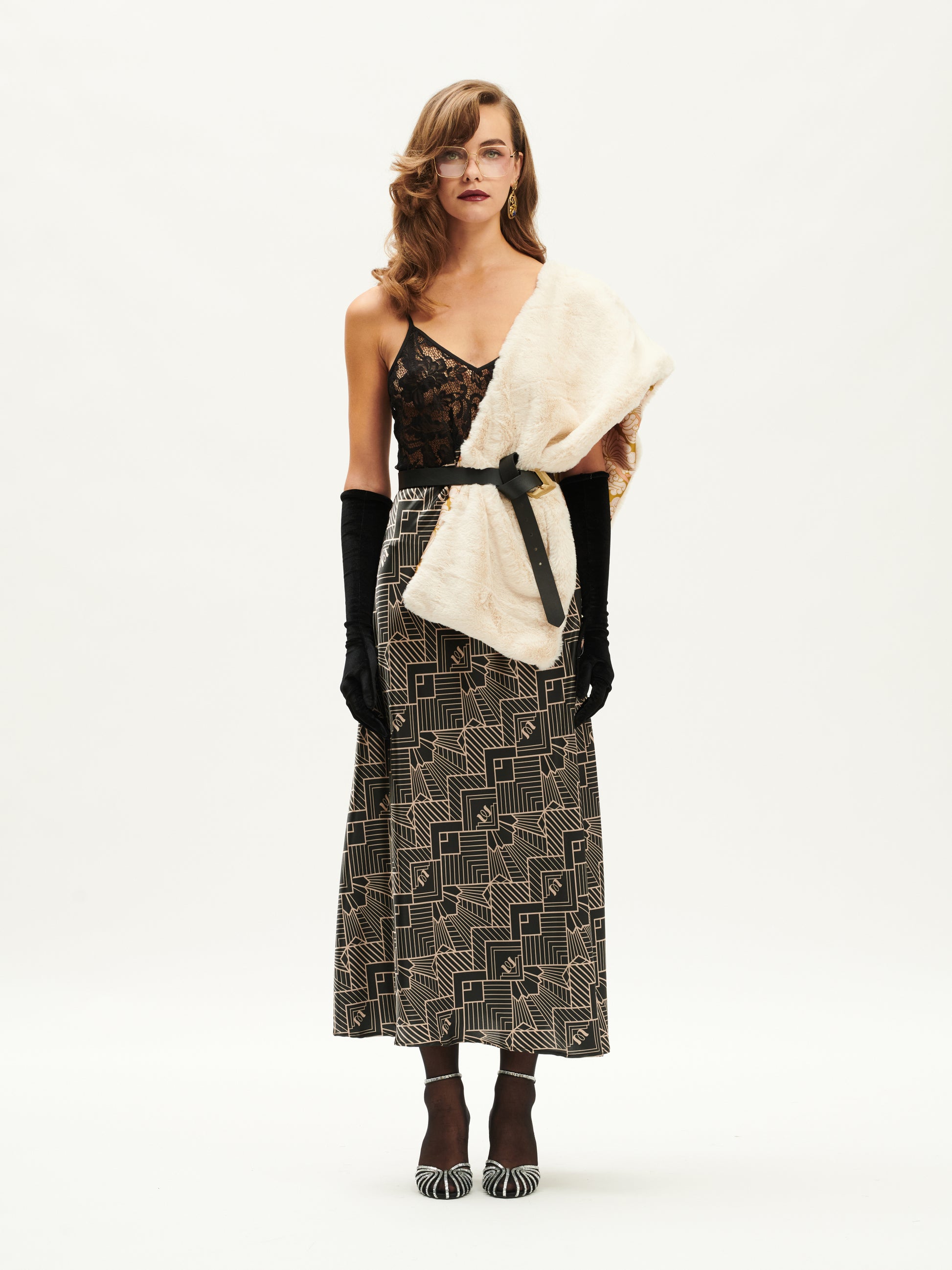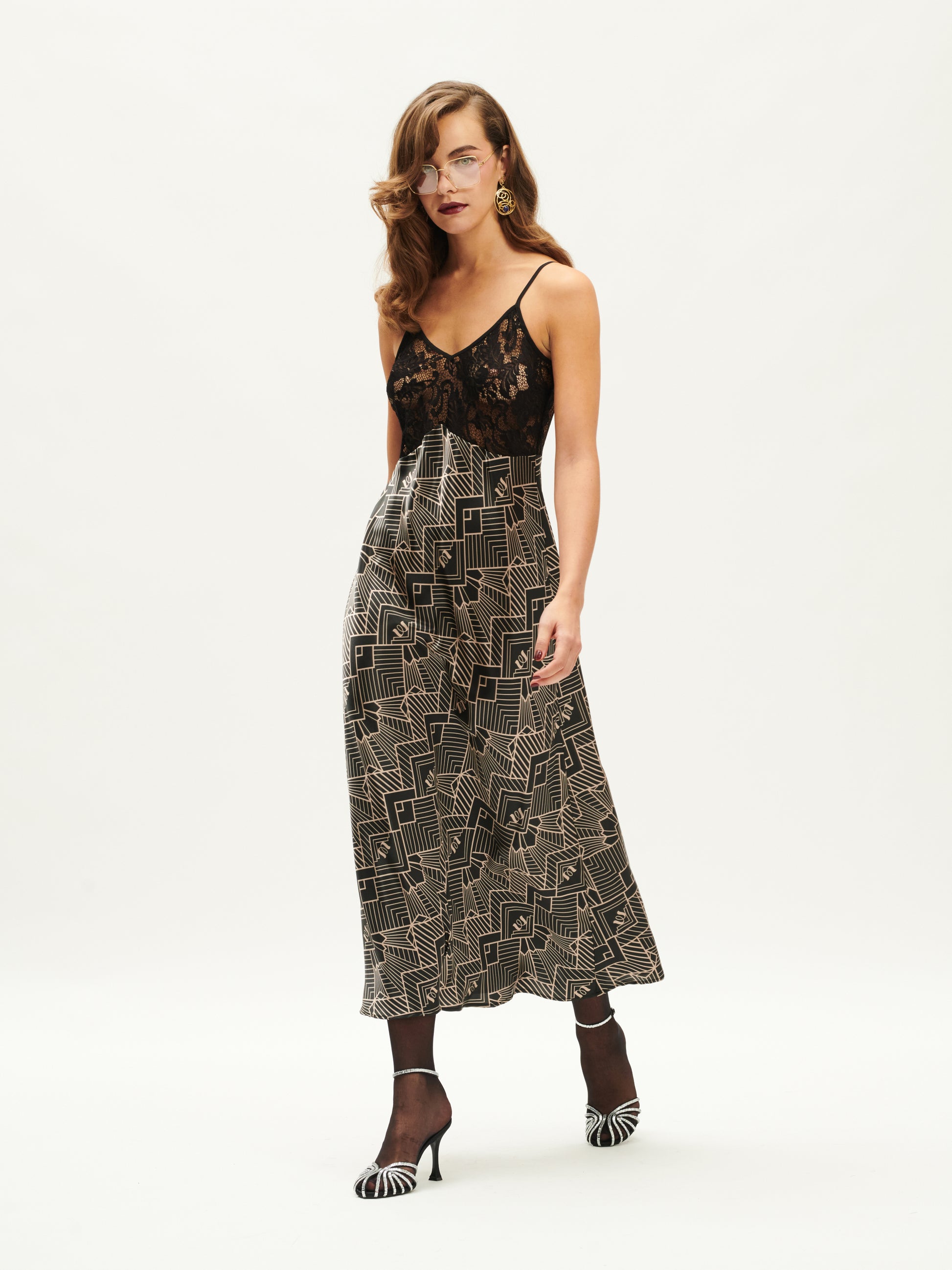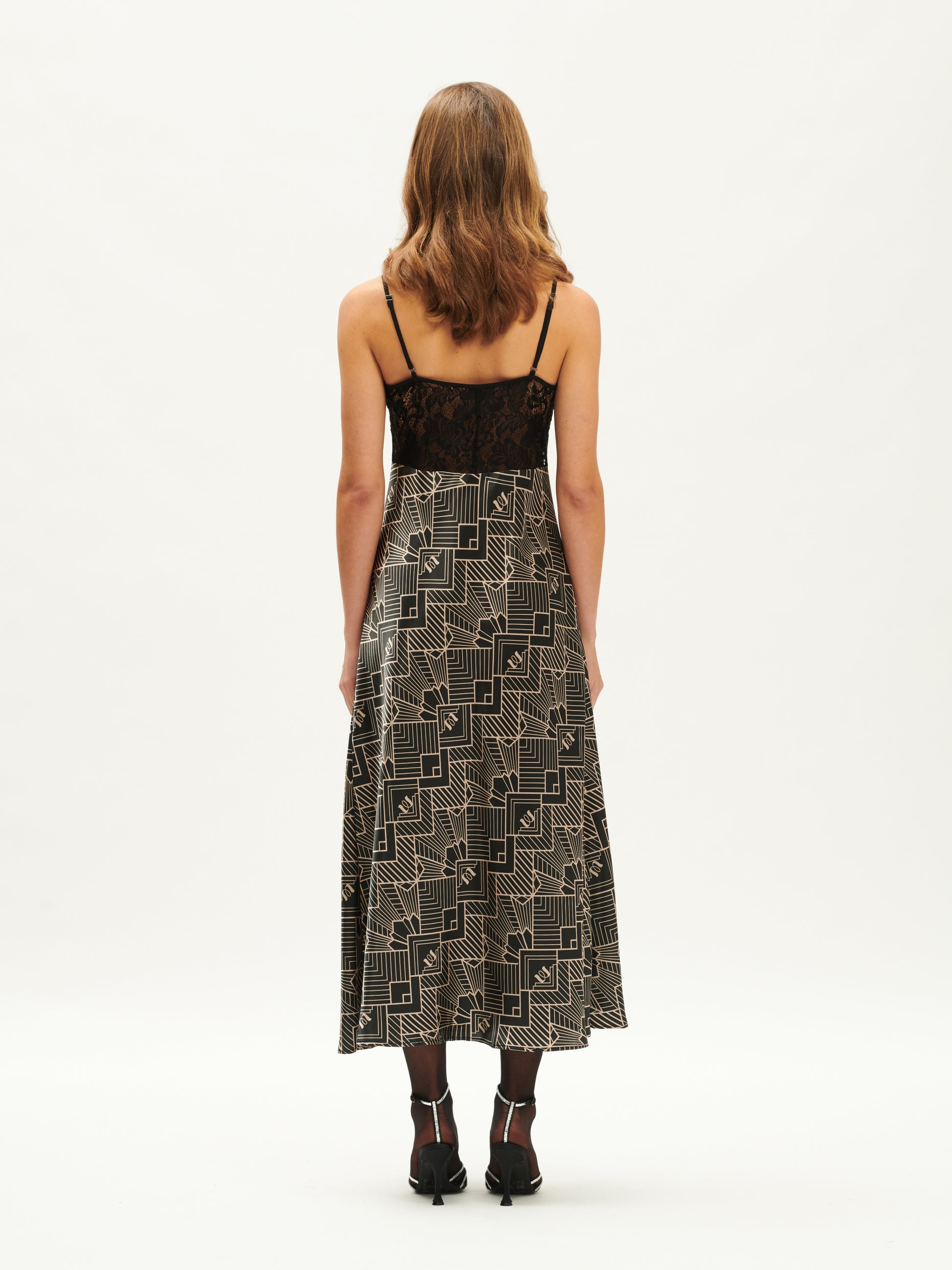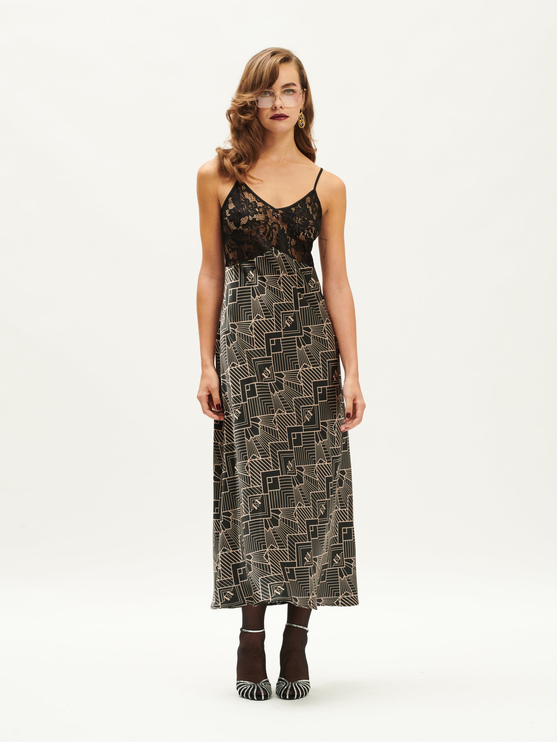 LACE-BUST SATIN MAXI SLIP DRESS GATSBY BLACK