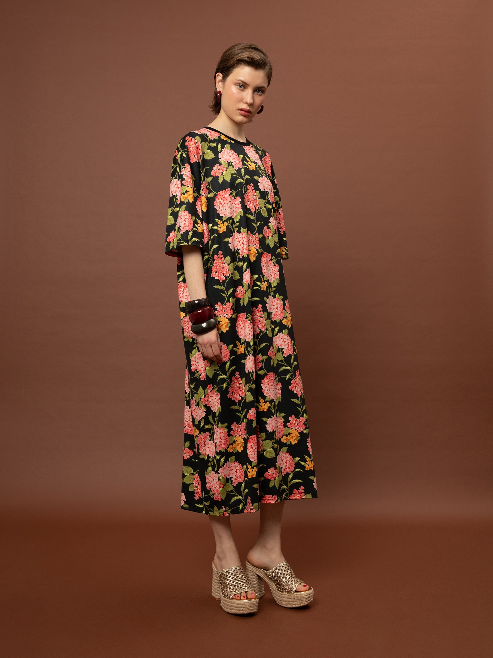 OVERSIZED MAXI T-SHIRT-DRESS - ORTANSIES BLACK