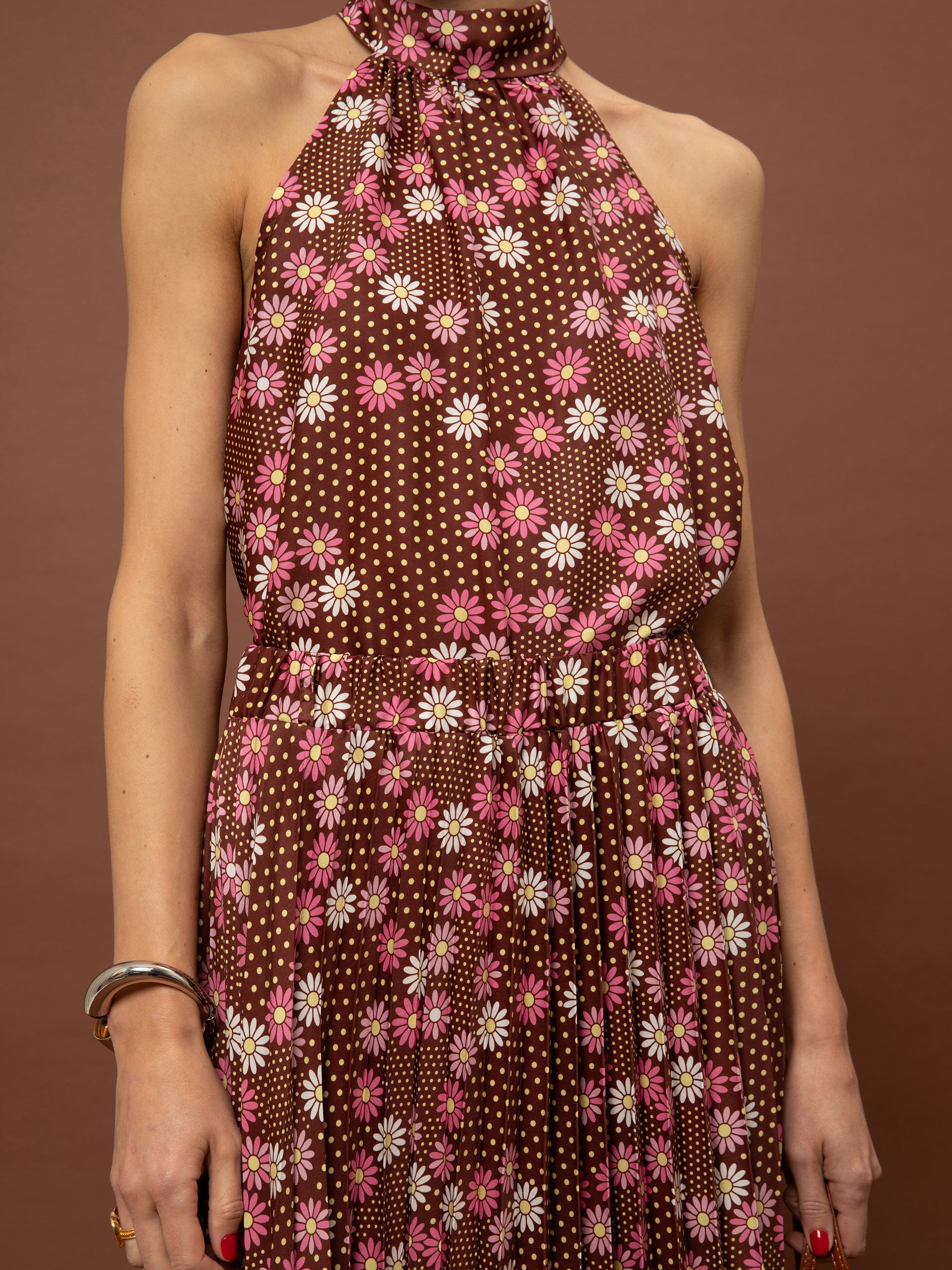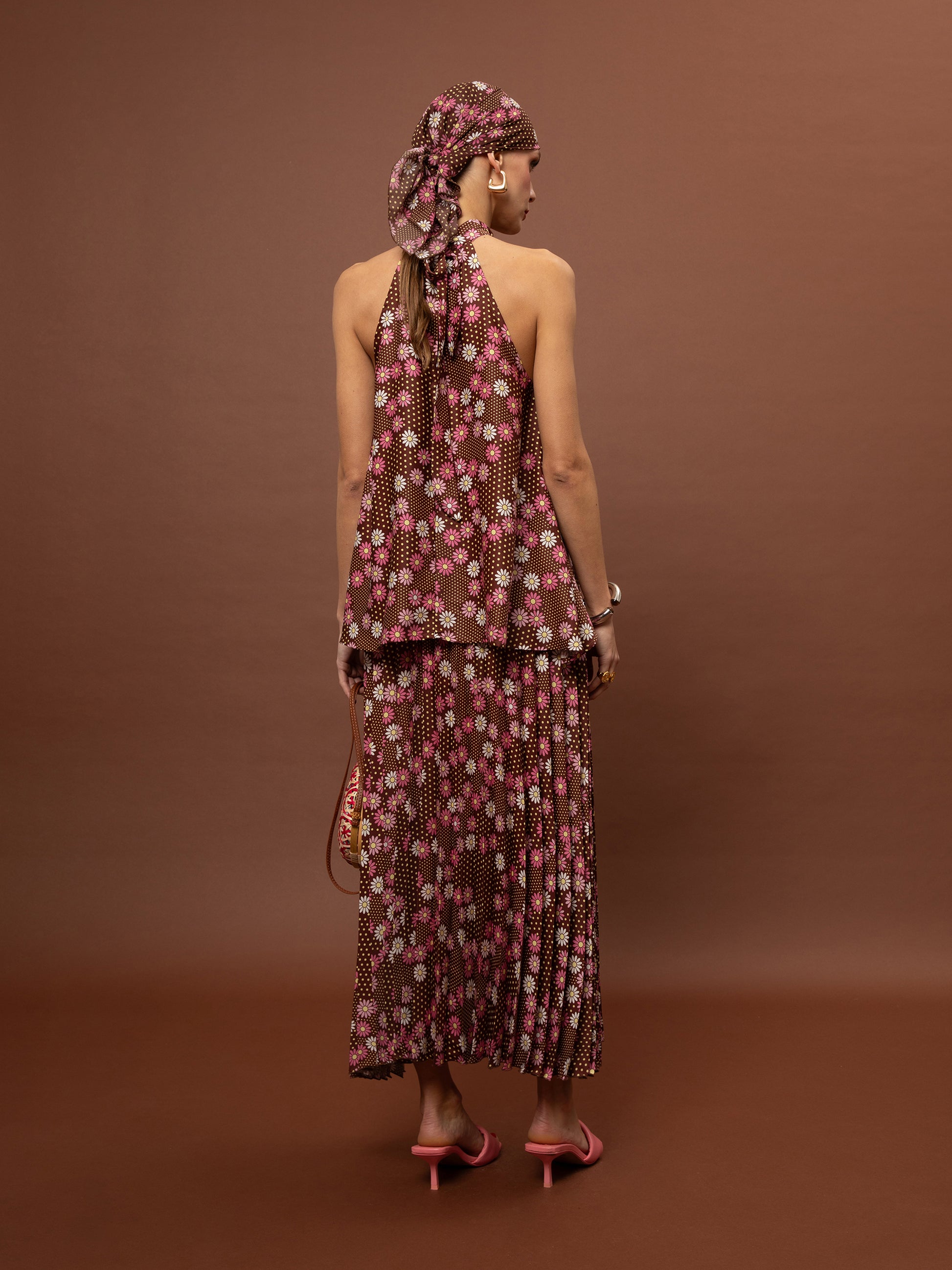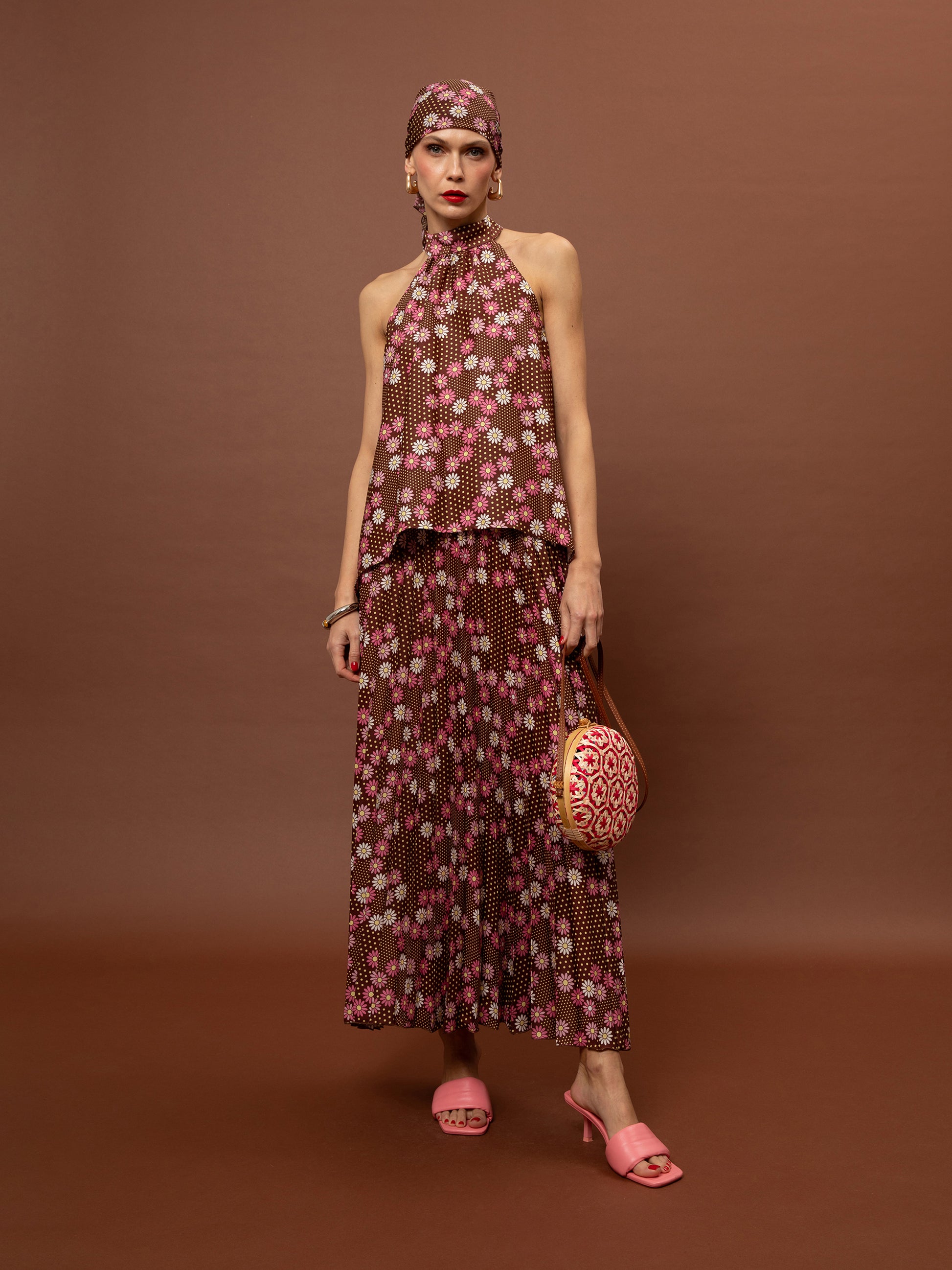 PLEATED MAXI SKIRT - DAISIES CHOCO